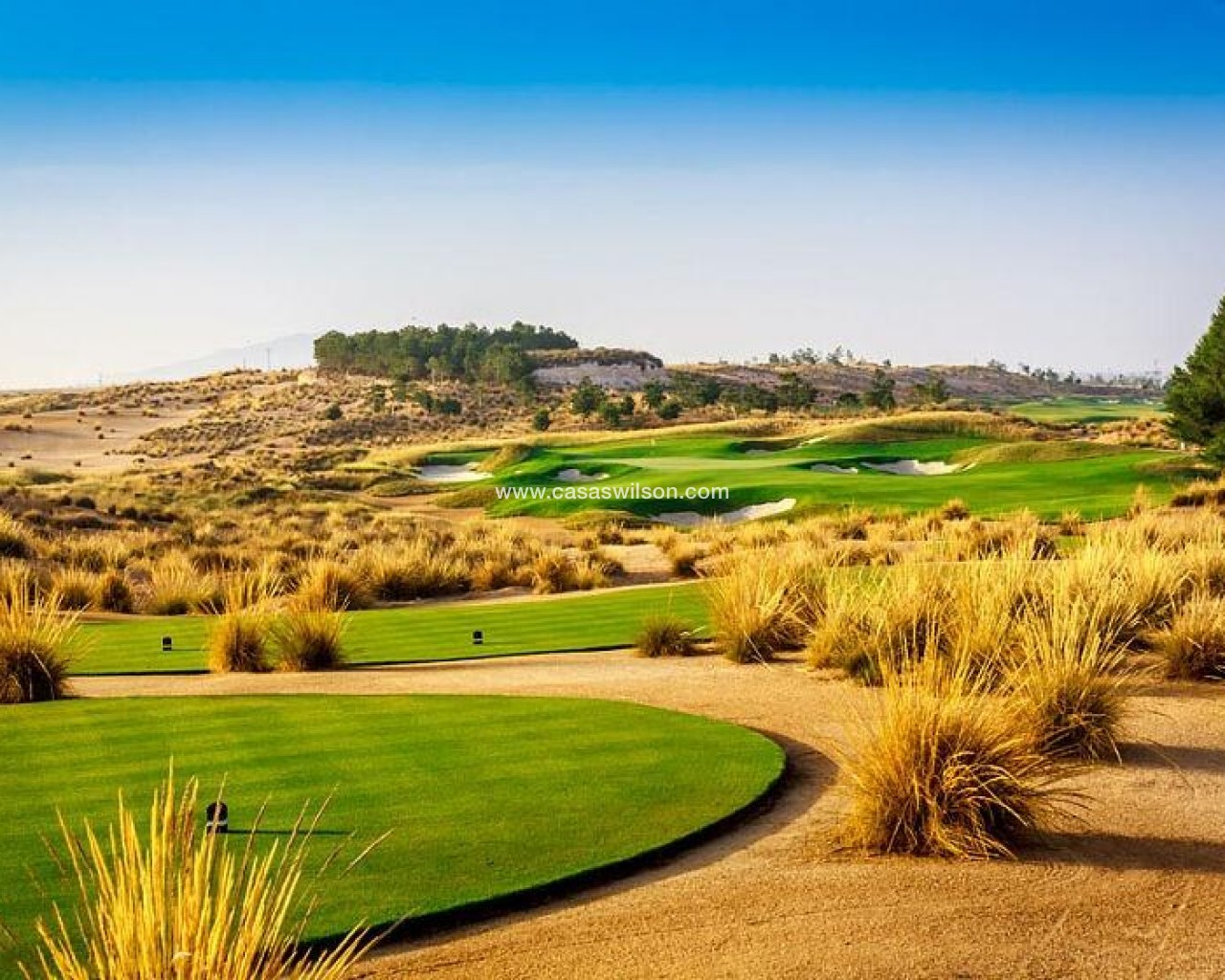 VILLAS DE OBRA NUEVA EN CONDADO DE ALHAMA CAMPO DE GOLF Complejo residencial de obra nueva de villas en Condado de Alhama Golf Resort. Villas con 3 dormitorios, 2 baños, cocina americana con salón, armarios empotrados, terraza, solárium privado y plaza de aparcamiento en el jardín. Todas las villas incluyen piscina privada de 21 m2. INCLUIDO en el precio: - PLAZA DE APARCAMIENTO ASIGNADA en el jardín privado. - SOLARIUM con escalera exterior. - BAÑOS: las mamparas de ducha, los lavabos, los espejos y la iluminación LED empotrada en el falso techo. - COCINA: la campana extractora, la iluminación LED empotrada en el techo. - Preinstalación de AIRE ACONDICIONADO. - ARMARIOS EMPOTRADOS forrados. - PERSIANAS ELÉCTRICAS. - Sistema de AEROTERMIA. - INSTALACIÓN DE SUAVIZADOR DE AGUA. - PUNTO DE CARGA para instalación de VEHÍCULOS ELÉCTRICOS E HÍBRIDOS. - PISCINA PRIVADA. Situado en el complejo privado y vigilado del Resort de golf de Condado de Alhama, entre Alhama de Murcia y Mazarrón. Condado de Alhama Golf Resort es un fantástico Resort de Golf con muchas instalaciones y servicios . Un centro comercial, un centro deportivo, una gran variedad de bares y restaurantes, supermercados y más de 25 piscinas y jardines comunitarios. Condado de Alhama Golf Resort tiene su propio campo de golf diseñado por Jack Nicklaus y está a sólo 15 minutos de las hermosas playas de Bolnuevo y Mazarrón. Mazarrón tiene más de 35 km de costa, gran parte de la cual es costa virgen. Numerosas playas de la Bahía de Mazarrón han sido galardonadas con la Bandera Azul por su calidad. Condado de Alhama Golf Resort está a sólo 20 minutos del nuevo Aeropuerto Internacional de Corvera.