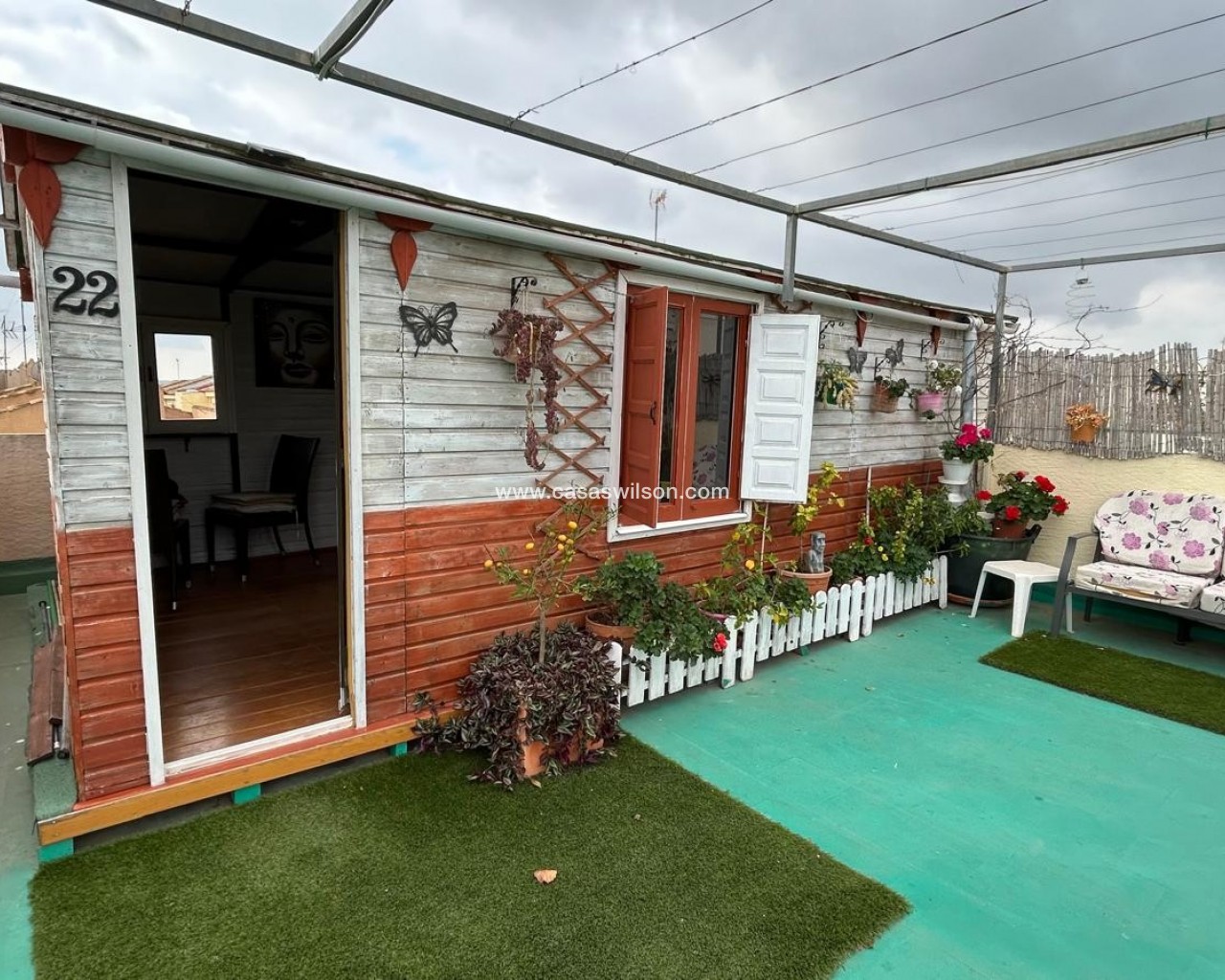 Esta encantadora casa adosada en Los Montesinos ofrece un espacio habitable cómodo y bien cuidado. Hay tres dormitorios espaciosos, dos baños y un aseo adicional. La cocina independiente, totalmente equipada con electrodomésticos modernos, es un espacio práctico y agradable para cocinar. La villa está en buenas condiciones y cada dormitorio tiene armarios empotrados que proporcionan mucho espacio de almacenamiento. El amplio y luminoso salón está equipado con aire acondicionado y calefacción, lo que garantiza un confort óptimo durante todo el año. Una chimenea acogedora añade calidez y carácter a una habitación. El espacio al aire libre es una característica importante de esta propiedad. El jardín privado, la amplia terraza y el solárium ofrecen mucho espacio para relajarse y disfrutar del sol. El balcón ofrece espacio adicional para relajarse y una hermosa vista. Para mayor comodidad, la villa también dispone de garaje privado y lavadero. También hay una cabaña de madera en el solarium que ofrece espacio adicional e incluso una habitación de invitados. La propiedad está situada en una zona bien comunicada, a solo 10 minutos en coche de la playa, 30 minutos del aeropuerto y 2 minutos de los servicios locales. Los amantes del golf apreciarán la proximidad al campo de golf, a solo 15 minutos. Esta villa parcialmente amueblada y lista para mudarse es una oportunidad fantástica para cualquiera que busque una casa cómoda en una excelente ubicación.