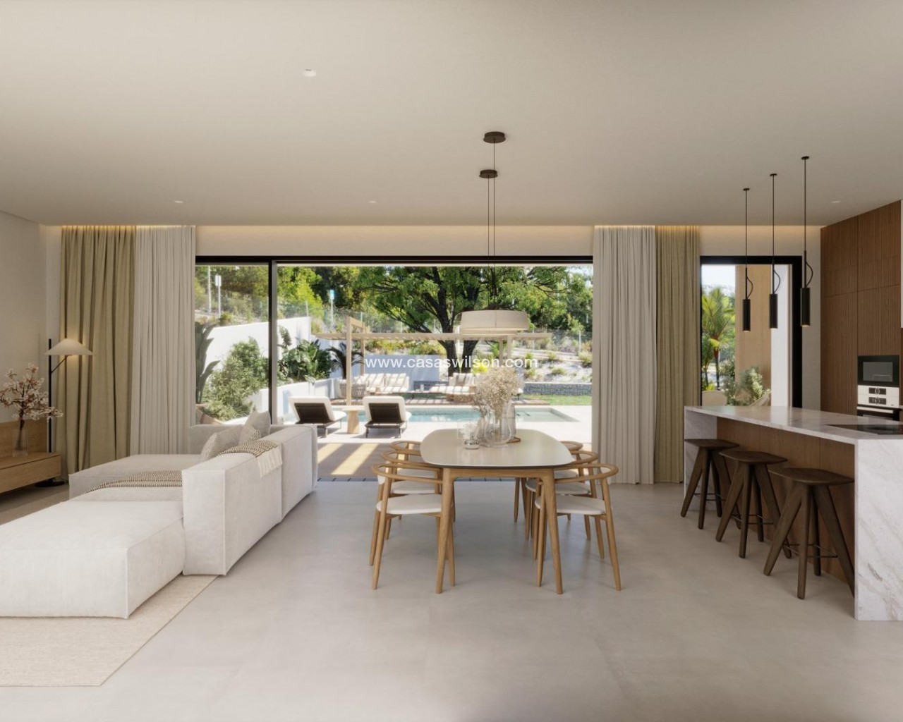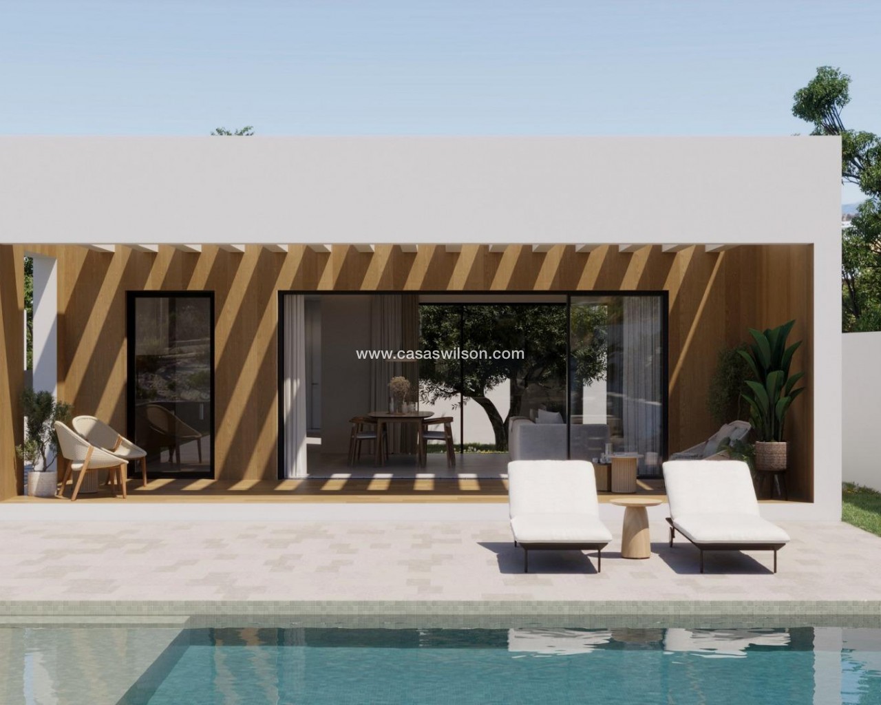 Modernas villas de una sola planta con piscina privada en Finestrat: la tranquilidad se une a la vida costera Exclusivas villas de nueva construcción en amplias parcelas Descubra una exclusiva colección de 7 villas de nueva construcción en Finestrat, cada una de ellas cuidadosamente diseñada en una sola planta con 3 dormitorios, 2 baños y 1 aseo para invitados. Situadas en generosas parcelas de más de 600 m², estas propiedades ofrecen una combinación ideal de espacio, privacidad y elegancia. Rodeadas de exuberantes jardines mediterráneos y vistas a la montaña, estas viviendas ofrecen un estilo de vida sereno a pocos minutos de la animada costa de Benidorm. Diseño elegante y espacios exteriores de primera calidad Cada villa está concebida como un oasis de paz, con una arquitectura moderna y elementos naturales. La entrada le da la bienvenida con un amplio y elegante camino de acceso y una cochera cubierta. Un jardín paisajístico lleno de plantas autóctonas y árboles en flor marca la pauta de un estilo de vida tranquilo. En el centro de la casa, un patio privado añade encanto y luz natural, mientras que el amplio jardín incluye una preciosa piscina privada rodeada de vegetación y zonas para tomar el sol. Este santuario al aire libre es perfecto para recibir invitados o simplemente relajarse bajo el sol del Mediterráneo. Acabados de alta calidad y confort Estas villas están construidas con altos estándares, con acabados de primera calidad y características bien pensadas, entre las que se incluyen: Ventanas de aluminio con doble acristalamiento y rotura de puente térmico para mayor eficiencia energética. Baños completamente equipados con muebles, espejos y duchas a ras de suelo con mamparas Preinstalación de aire acondicionado por conductos para controlar la temperatura durante todo el año Puerta de acceso motorizada para vehículos Piscina privada y jardín paisajístico Elegante cocina moderna y salón diáfano lleno de luz natural Ubicación privilegiada en Finestrat, cerca de Benidorm y de la costa Situadas en la pintoresca localidad de Finestrat, estas villas disfrutan de una excelente conectividad con los servicios y las comodidades: Playas de Benidorm: a menos de 3 km Centro comercial La Marina: a 1 km Puig Campana Golf: a 3 km Casco antiguo de Benidorm y zona de ocio: a 4 km Aeropuerto Internacional de Alicante: a 55 km (aprox. 40 minutos en coche) Fácil acceso a la autopista A7 para viajar rápidamente a Alicante, Valencia y más allá Esta ubicación ofrece la tranquilidad de un entorno natural con rápido acceso a tiendas, restaurantes, campos de golf y la costa mediterránea. Disfrute del lujo, el confort y la naturaleza en perfecta armonía. Póngase en contacto con nosotros ahora para concertar una visita o solicitar más información sobre estas exclusivas villas en Finestrat.