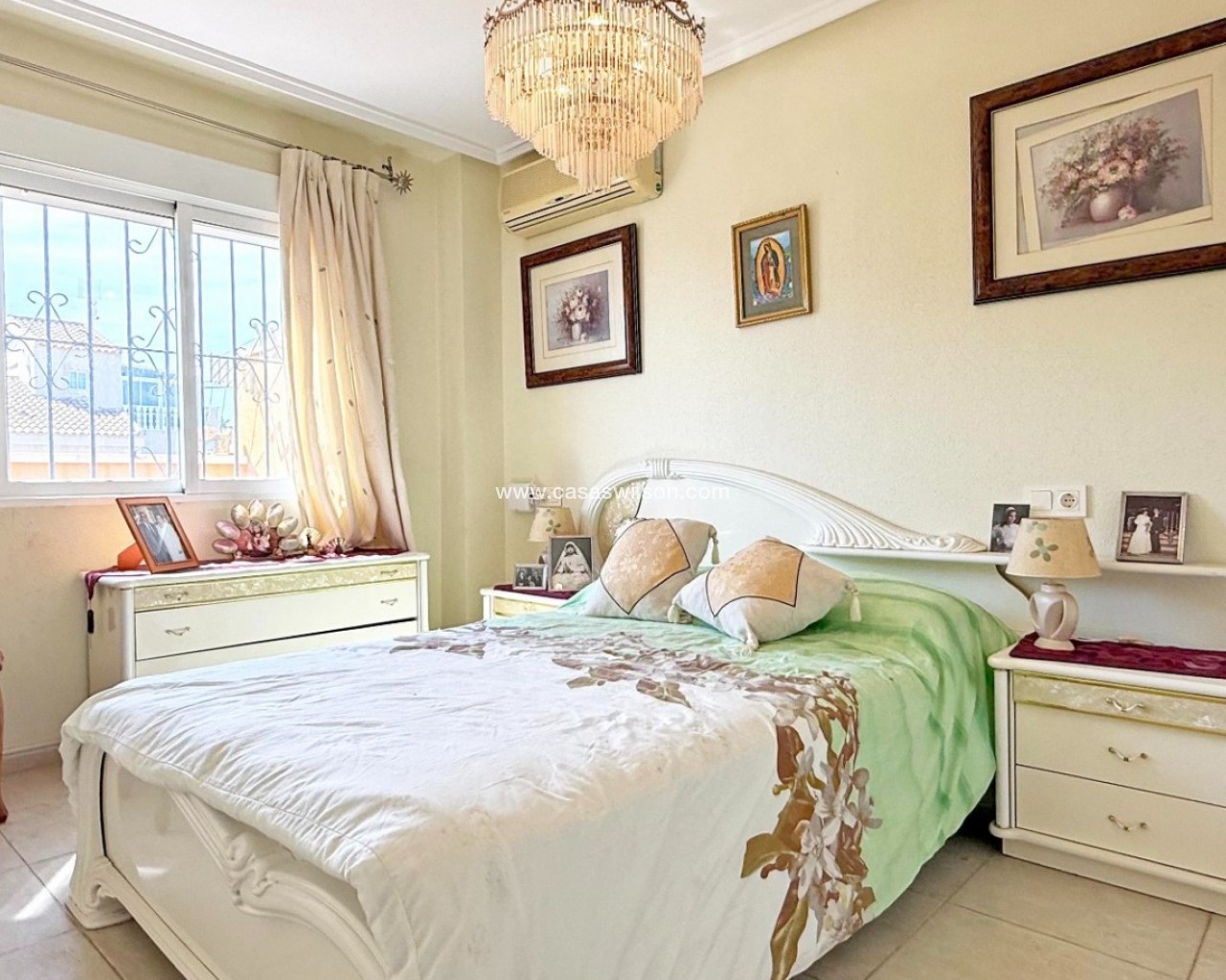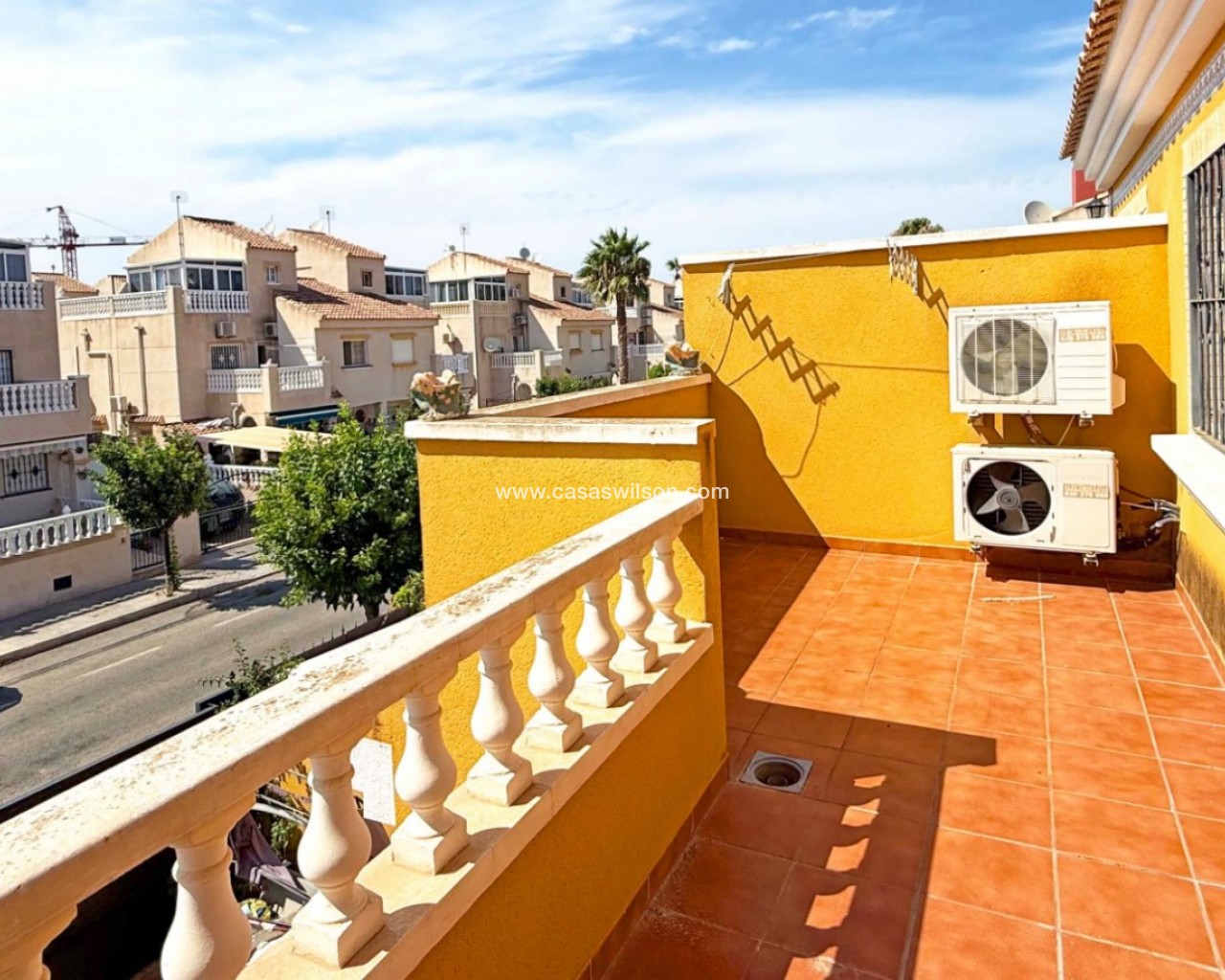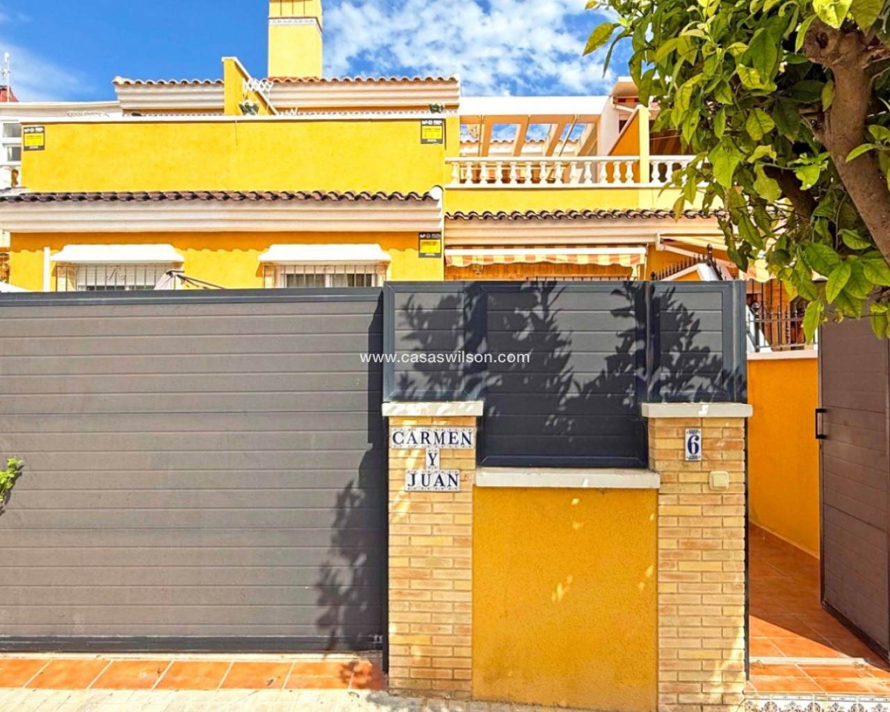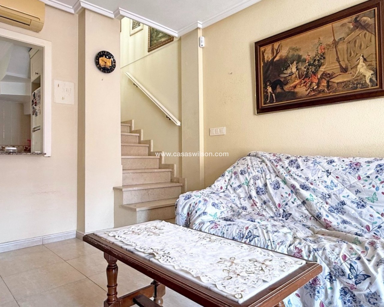 Descubre esta casa adosada bien cuidada con 3 dormitorios y 2 baños, ubicada en una tranquila zona residencial de Torrevieja. Ofrece comodidad y cercanía a todos los servicios, como el centro comercial Habaneras, supermercados, restaurantes y el centro de Torrevieja. La vivienda dispone de una terraza en planta baja ideal para comer al aire libre y un solárium privado en la azotea con vistas panorámicas a la famosa laguna rosa. Cuenta con aire acondicionado en toda la casa y acceso a una piscina comunitaria bien cuidada. Ideal como residencia permanente, casa de vacaciones o inversión con gran potencial de alquiler. Características principales: 3 dormitorios y 2 baños Solárium con vistas a la laguna rosa Terraza en planta baja Zona tranquila pero céntrica Cerca del centro comercial Habaneras y del centro de Torrevieja Piscina comunitaria Aire acondicionado en toda la vivienda