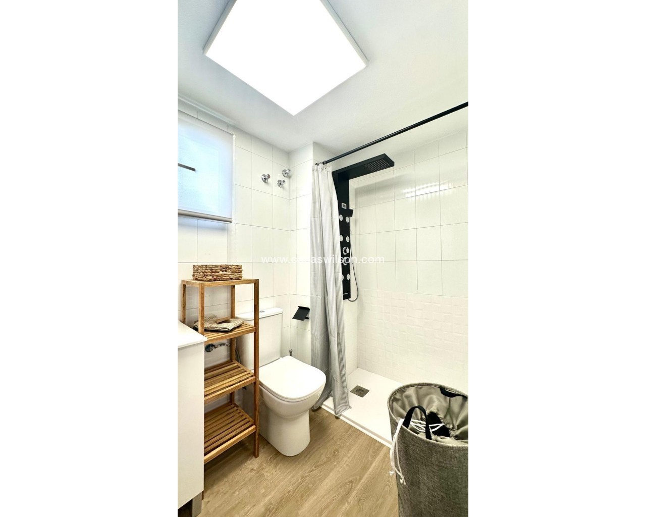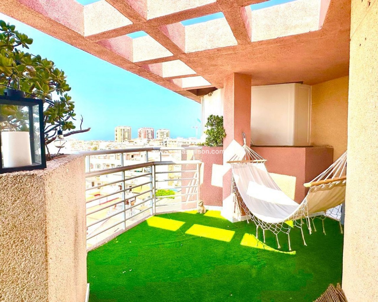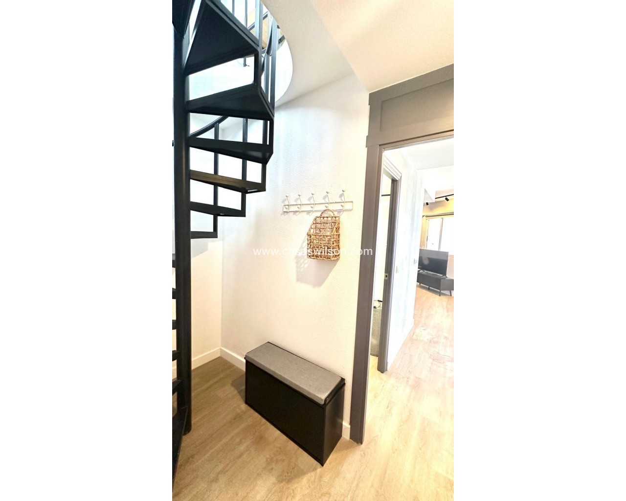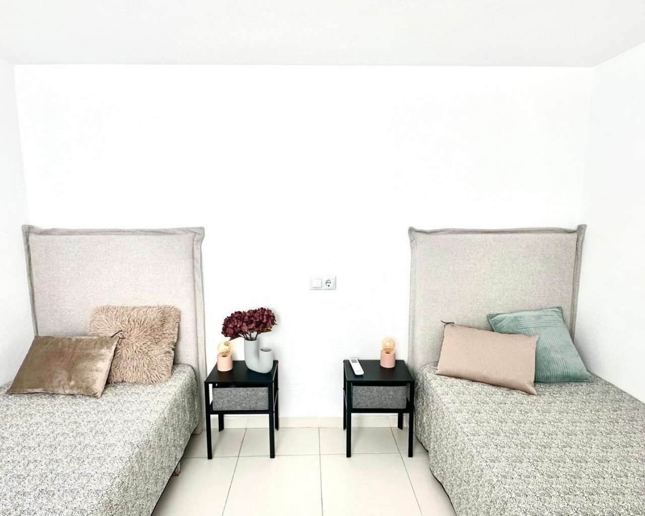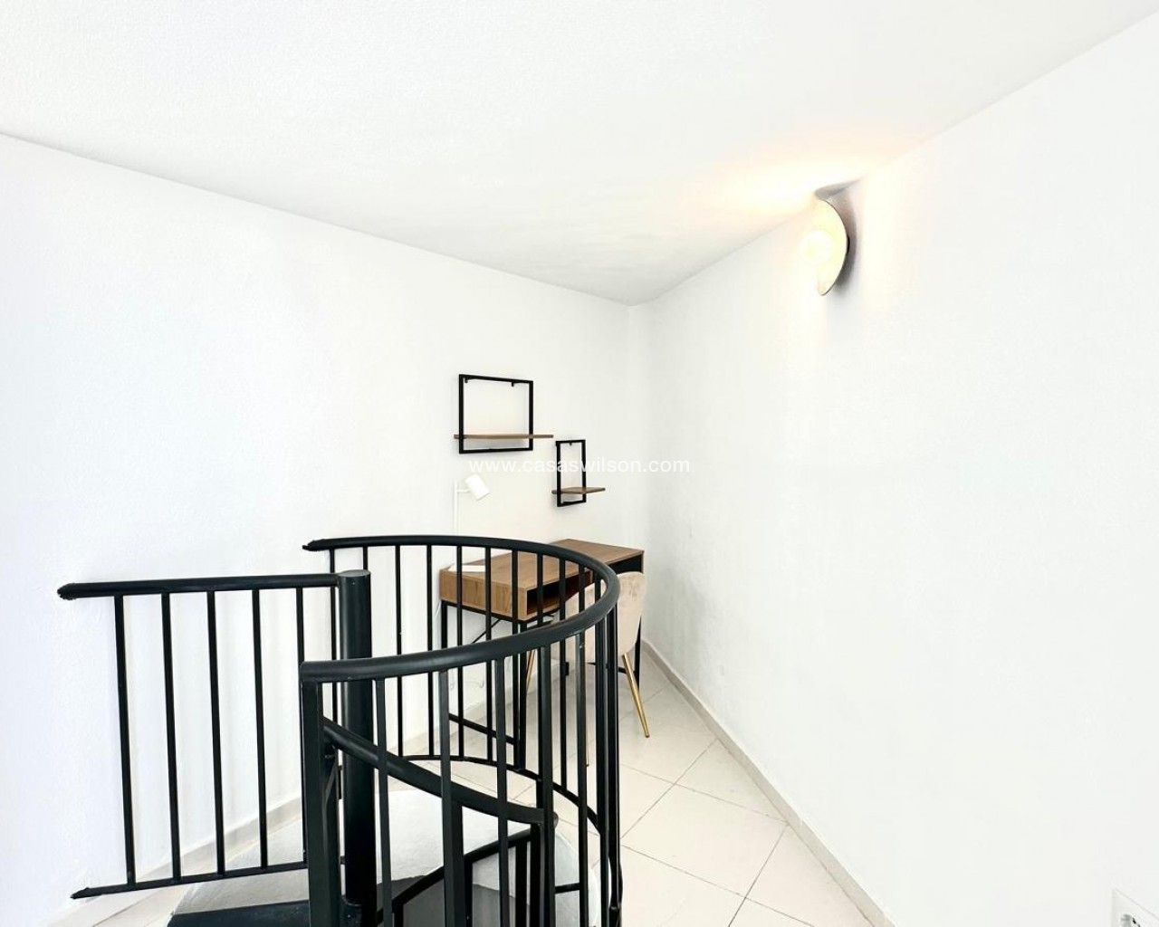 Espectacular Ático Dúplex a 400 metros de la playa – Estilo, comodidad y ubicación privilegiada Este impresionante ático dúplex se encuentra a tan solo 400 metros del mar, ofreciendo una oportunidad única para quienes buscan una vivienda amplia, moderna y cercana a la costa. Con una superficie construida de 120 m², esta propiedad ha sido diseñada para ofrecer confort, funcionalidad y una excelente distribución en dos niveles. Planta principal: amplitud, diseño y acceso exterior Al acceder a la vivienda, encontramos un recibidor que distribuye de forma eficiente las estancias, proporcionando privacidad y una transición natural hacia las zonas comunes. En esta planta se ubica un cuarto de baño completo con plato de ducha e hidromasaje, pensado para proporcionar comodidad y un espacio de relajación tras la rutina diaria o un día en la playa. El salón-comedor se integra con la cocina en un concepto abierto que aprovecha al máximo la luz natural y el espacio disponible. Esta distribución favorece la vida en familia o con amigos, permitiendo una conexión visual y funcional entre los ambientes. Desde el salón se accede a una terraza con orientación noroeste, ideal para disfrutar de las tardes al aire libre, crear una zona de descanso o realizar reuniones en un entorno tranquilo y agradable. Esta terraza también comunica con una de las habitaciones dobles de la vivienda, lo que aporta fluidez al diseño y un valor añadido en cuanto a confort. Planta superior: privacidad y versatilidad Subiendo a la planta superior, la vivienda ofrece un segundo cuarto de baño con plato de ducha, así como una práctica zona de estudio que puede adaptarse a múltiples usos: despacho, rincón de lectura, área de juegos o incluso un pequeño gimnasio doméstico. Completando esta planta encontramos otra habitación doble, amplia y luminosa, equipada con armario empotrado. Esta estancia también tiene acceso directo a una segunda terraza, ideal para disfrutar de mayor intimidad y tranquilidad, o para crear un espacio exterior privado. Resumen de características: 120 m² construidos, distribuidos en dos plantas Dos habitaciones dobles, cada una con acceso a terraza Dos baños completos, uno en cada planta, ambos con plato de ducha Salón-comedor y cocina integrados en espacio abierto Recibidor independiente en planta principal Dos terrazas privadas con orientación noroeste Zona de estudio en planta superior Armarios empotrados y buena distribución interior Ubicación y entorno: La vivienda se sitúa en una zona residencial muy cercana a la playa, con fácil acceso a servicios como supermercados, restaurantes, centros médicos, transporte público y zonas de ocio. Esta localización convierte al ático en una opción ideal tanto como residencia habitual como para uso vacacional, gracias a su cercanía al mar y su entorno tranquilo. Una propiedad que combina elegancia, amplitud y ubicación, perfecta para quienes valoran el estilo de vida mediterráneo sin renunciar al confort y la funcionalidad.