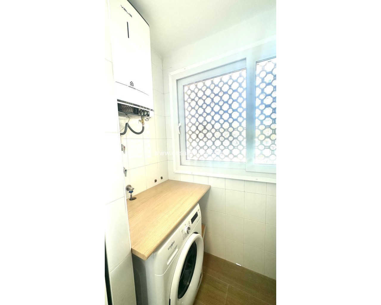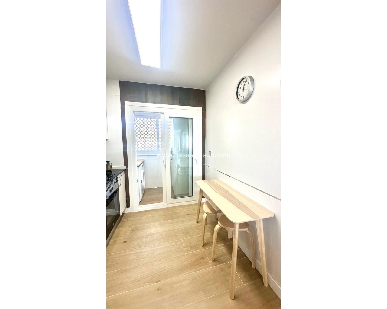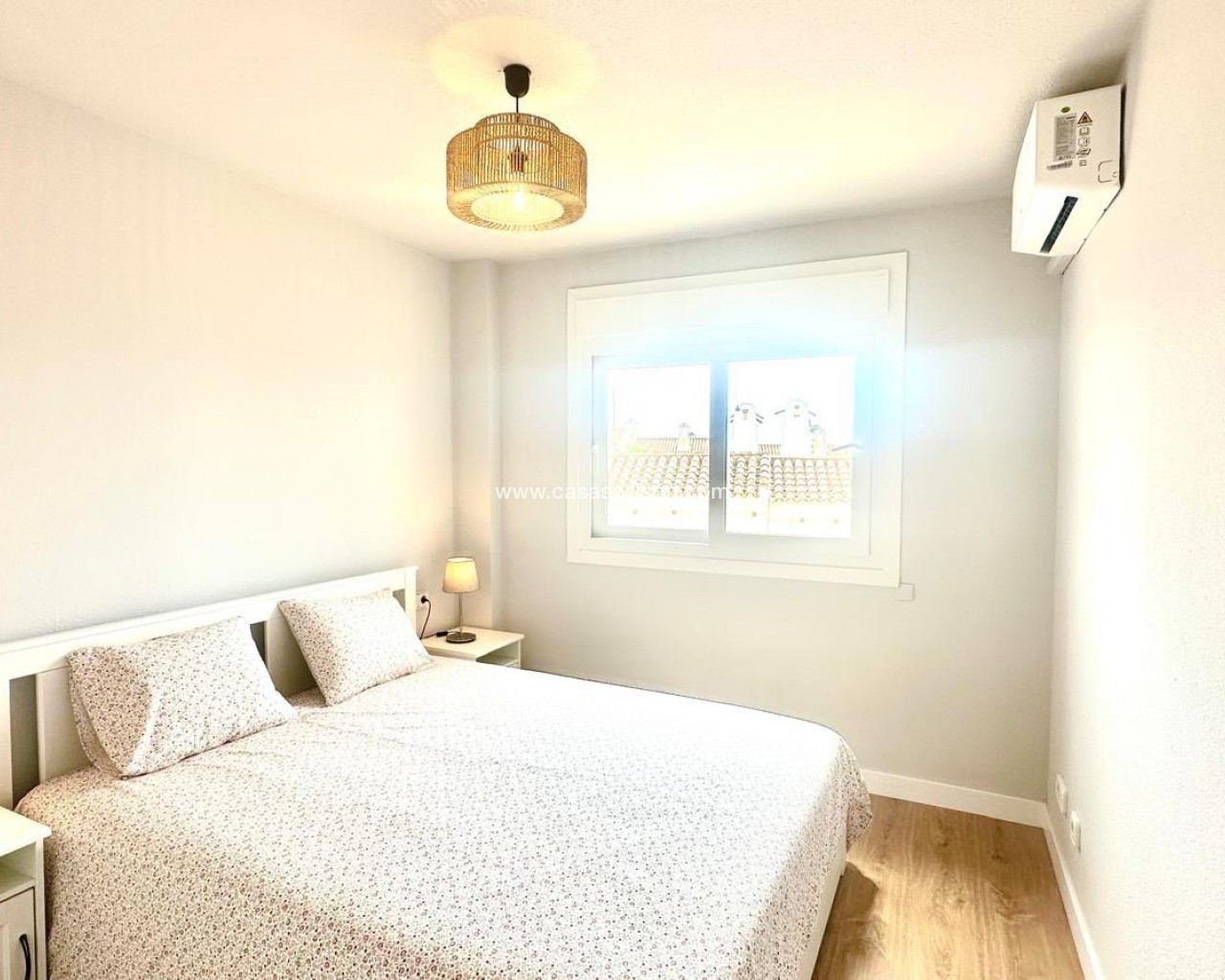 Apartamento Reformado en Cabo Roig a Solo 300 m de la Playa – Luminoso, Moderno y con Excelentes Zonas Comunes Ubicado en una de las zonas más valoradas de la costa alicantina, este precioso apartamento en Cabo Roig ofrece la combinación perfecta entre ubicación, confort y estilo. Recién reformado y listo para entrar a vivir, se encuentra a tan solo 300 metros del mar, lo que lo convierte en una excelente opción tanto como residencia habitual como inversión vacacional. Un entorno verde y cuidado La urbanización destaca por sus amplias zonas comunes ajardinadas, muy cuidadas y agradables para pasear, relajarse o disfrutar del clima mediterráneo. Además, cuenta con una estupenda piscina comunitaria, ideal para refrescarse durante los meses más cálidos y compartir momentos con familia y amigos sin salir de casa. Interior reformado con materiales de calidad Al acceder al apartamento, nos recibe un acogedor salón-comedor con suelos de parquet que aportan calidez y elegancia al espacio. Desde aquí se accede directamente a una terraza con orientación sur, perfecta para disfrutar del sol durante todo el día. Las ventanas insonorizadas y las persianas eléctricas aportan confort térmico y acústico, asegurando un ambiente tranquilo y eficiente energéticamente. La cocina es independiente, práctica y moderna, equipada con todos los elementos esenciales para el día a día, y se complementa con una galería que ofrece espacio adicional para almacenaje o lavandería. Distribución funcional y cómoda El apartamento cuenta con dos habitaciones dobles, amplias y luminosas, ideales tanto para uso familiar como para invitados. El cuarto de baño, completamente renovado, dispone de un moderno plato de ducha y acabados de calidad que aportan funcionalidad y estilo. Características principales: A tan solo 300 m de la playa Recién reformado 2 habitaciones dobles 1 baño con plato de ducha Salón-comedor con suelo de parquet Terraza orientada al sur Ventanas insonorizadas y persianas eléctricas Cocina independiente con galería Piscina comunitaria Urbanización con amplias zonas verdes Ubicación privilegiada Situado en una de las mejores zonas de Orihuela Costa, Cabo Roig ofrece todos los servicios a poca distancia: supermercados, restaurantes, centros comerciales, farmacias y, por supuesto, algunas de las mejores playas de la Costa Blanca. Una oportunidad única para vivir junto al mar con todas las comodidades.