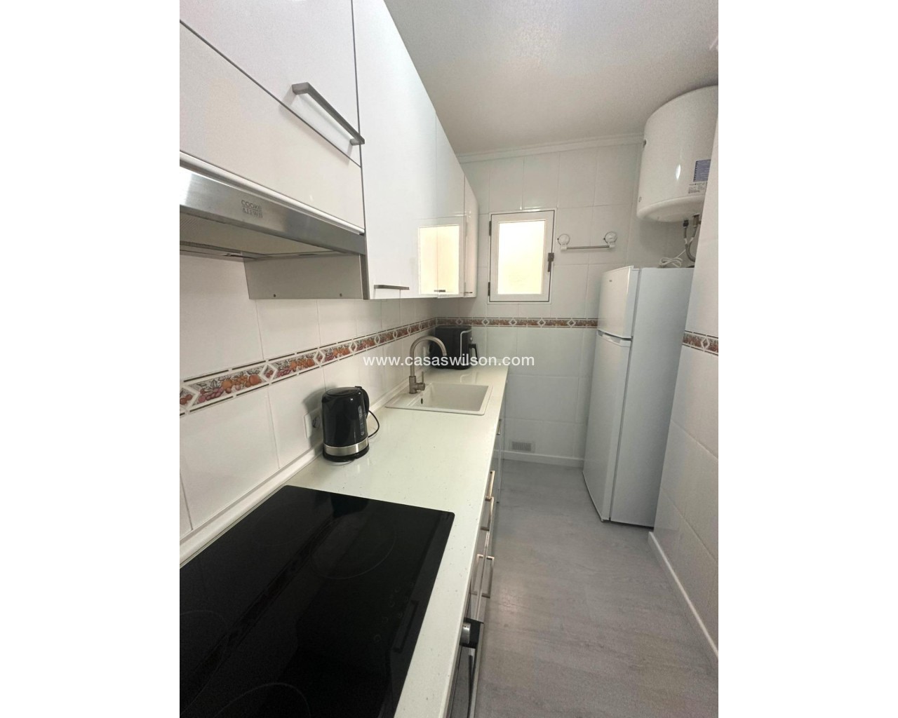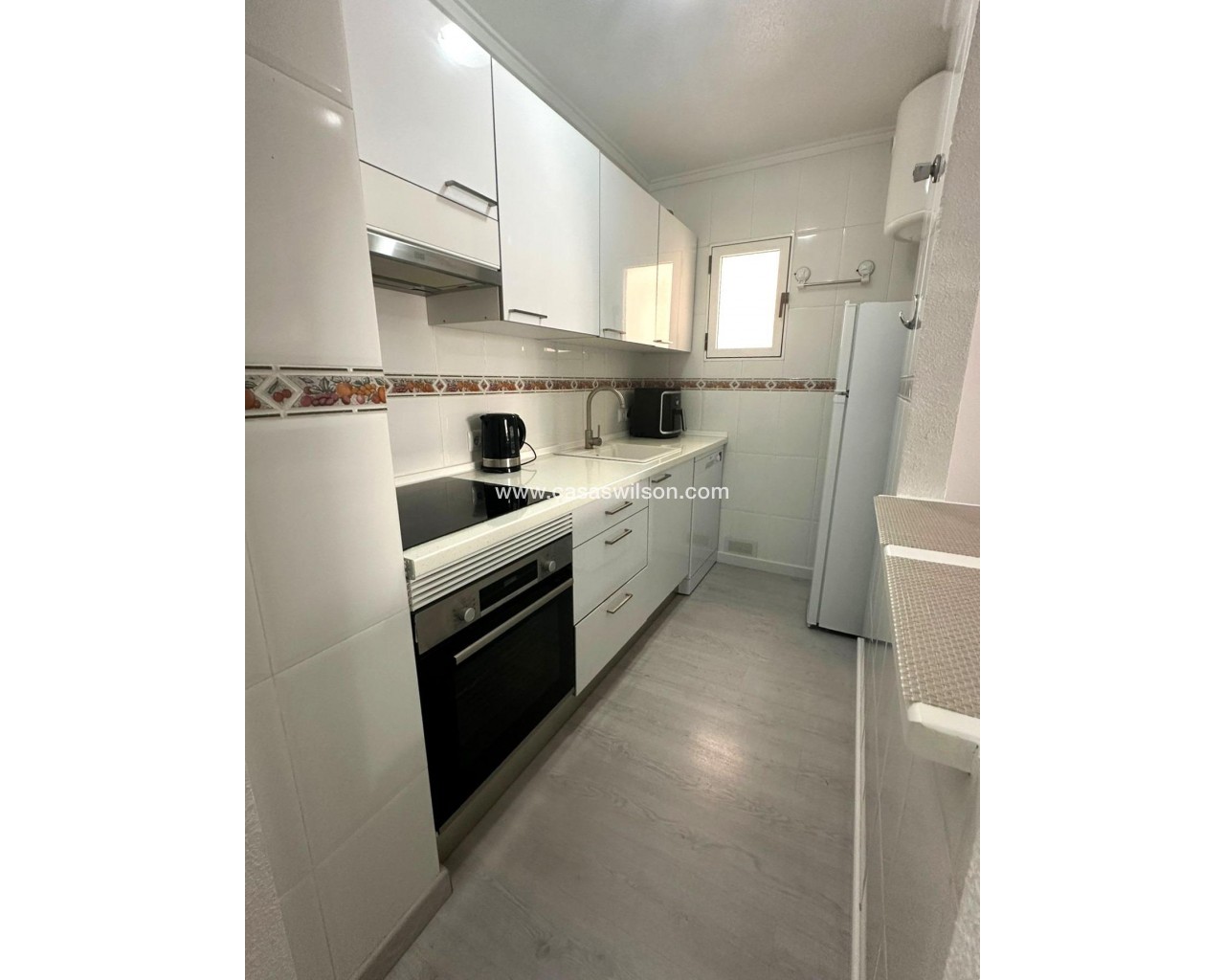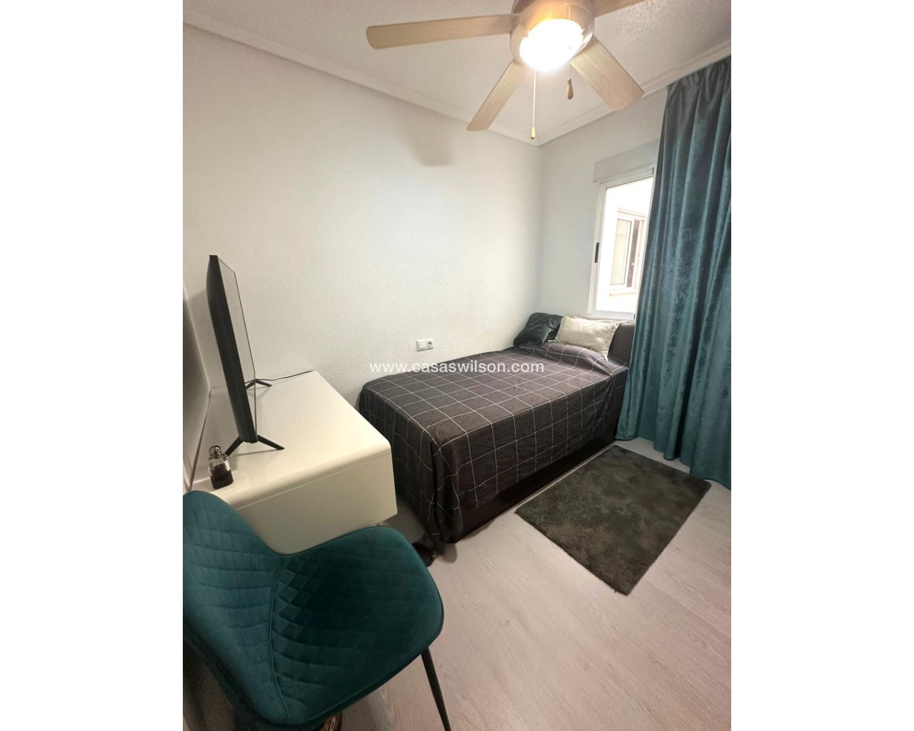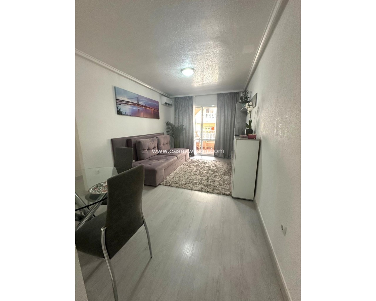 Moderno piso de 2 dormitorios con terraza privada, piscina y jardin en Torrevieja Al entrar en este moderno piso reformado, lo primero que llama la atención es la luz natural que inunda cada rincón. Su orientación sur convierte el salón en un espacio cálido y luminoso durante todo el día, ideal para disfrutar de momentos de relax o para compartir con amigos. Desde aquí, se accede directamente a una amplia terraza privada, perfecta para desayunar al sol, leer un buen libro o contemplar el atardecer con una copa de vino. La vivienda cuenta con dos dormitorios. El dormitorio principal ofrece un ambiente acogedor, con armario empotrado que aporta comodidad. El segundo dormitorio, igualmente luminoso, es ideal como habitación de invitados, despacho o cuarto infantil. La cocina, completamente equipada, se integra perfectamente con el estilo moderno del piso, ofreciendo un espacio práctico y estéticamente agradable. El baño ha sido renovado con materiales de alta calidad, combinando elegancia y confort. Pero sin duda, uno de los mayores atractivos de este piso es su entorno. Forma parte de una cuidada urbanización con piscina comunitaria y amplias zonas ajardinadas, donde se respira tranquilidad. Un rincón ideal para quienes buscan calidad de vida sin renunciar a las comodidades de un hogar moderno. UBICACIÓN: Torrevieja se encuentra en la provincia de Alicante (Costa Blanca). Es famosa por su clima mediterráneo y su costa. No podemos olvidar sus paseos marítimos donde podemos encontrar algunos restaurantes a lo largo de las playas de arena fina. Además, cuenta con excelentes playas como la Playa de los Náufragos, la Playa de los Locos y la Playa de la Mata. Por lo tanto, se considera una localidad turística destacable donde el medio ambiente ocupa un lugar importante como reclamo turístico. Además, podemos encontrar numerosos centros comerciales (Habaneras, La Zenia Boulevard), campos de golf, centros deportivos, hospitales (como el Hospital Universitario de Torrevieja) y aeropuertos como el Aeropuerto de Alicante (a 35 km) y el Aeropuerto Internacional de la Región de Murcia (a 43 km). DISTANCIA AL MAR: 600m COMUNIDAD: 360 € IBI: 220 € Si tiene alguna pregunta, no dude en ponerse en contacto con nosotros!