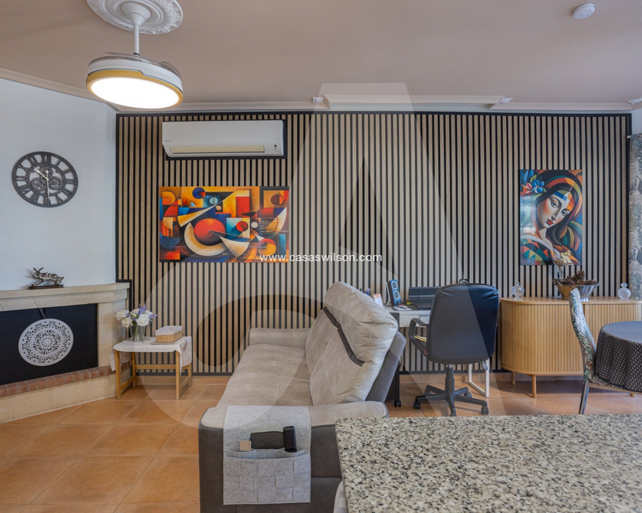 Acogedora villa en venta en la urbanización El Raso, Guardamar del SeguraDescubra esta encantadora villa en perfecto estado de conservación situada en la popular urbanización El Raso, en Guardamar del Segura. La propiedad ofrece una combinación ideal de comodidad, espacio y tranquilidad, a poca distancia de las hermosas playas de la Costa Blanca.Se accede a la villa a través del aparcamiento privado y una acogedora terraza, perfecta para disfrutar de la vida al aire libre en España.En el interior encontrará un luminoso salón, completamente amueblado con, entre otras cosas, una mesa de comedor, sillas, un sofá relax, un mueble de televisión y una chimenea. Tanto el aire acondicionado como los ventiladores garantizan un clima interior agradable durante todo el año.La cocina abierta, que conecta directamente con el salón, está equipada con todos los electrodomésticos necesarios.En la planta baja hay un dormitorio completamente equipado con cama doble, mesitas de noche, vestidor, aire acondicionado y ventilador. El cuarto de baño de esta planta fue renovado en 2025 y cuenta con una moderna ducha, inodoro y lavabo.La planta superior ofrece un segundo dormitorio con vestidor (sin cama) y un cuarto de baño también renovado con ducha, lavabo e inodoro. Desde el pasillo se accede a una amplia terraza soleada, donde se puede disfrutar del sol con total privacidad.Una gran ventaja es el sótano, dividido en tres habitaciones independientes. El sótano cuenta con aire acondicionado, suelo de baldosas, dos ventanas, armarios, nevera y congelador, y es accesible tanto desde el interior como desde el exterior, lo que lo hace ideal como espacio adicional, sala de ocio o trastero.La vivienda dispone de aire acondicionado en todas las habitaciones y ventiladores en el salón y los dormitorios. En la parte trasera de la vivienda (accesible a través de una puerta que da a la calle) hay una piscina comunitaria, donde podrá relajarse.Los gastos de comunidad son de solo 360 € al año, incluyendo el mantenimiento de la urbanización, la piscina, el agua y la electricidad de las zonas comunes.Esta vivienda está lista para entrar a vivir y es ideal como residencia permanente, casa de vacaciones o inversión en la Costa Blanca.