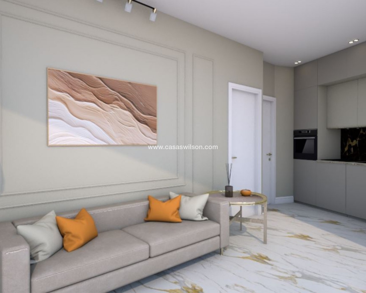 Moderno apartamento en el centro de Torrevieja con reforma de diseño. El apartamento de 36 m2 cuenta con un dormitorio, un baño y una terraza. Se vende con muebles y electrodomésticos.El apartamento ha sido completamente renovado.Posibilidad de reservas en línea, así como de compra a crédito a través de un banco con una tasa de interés del 4-6% anual.