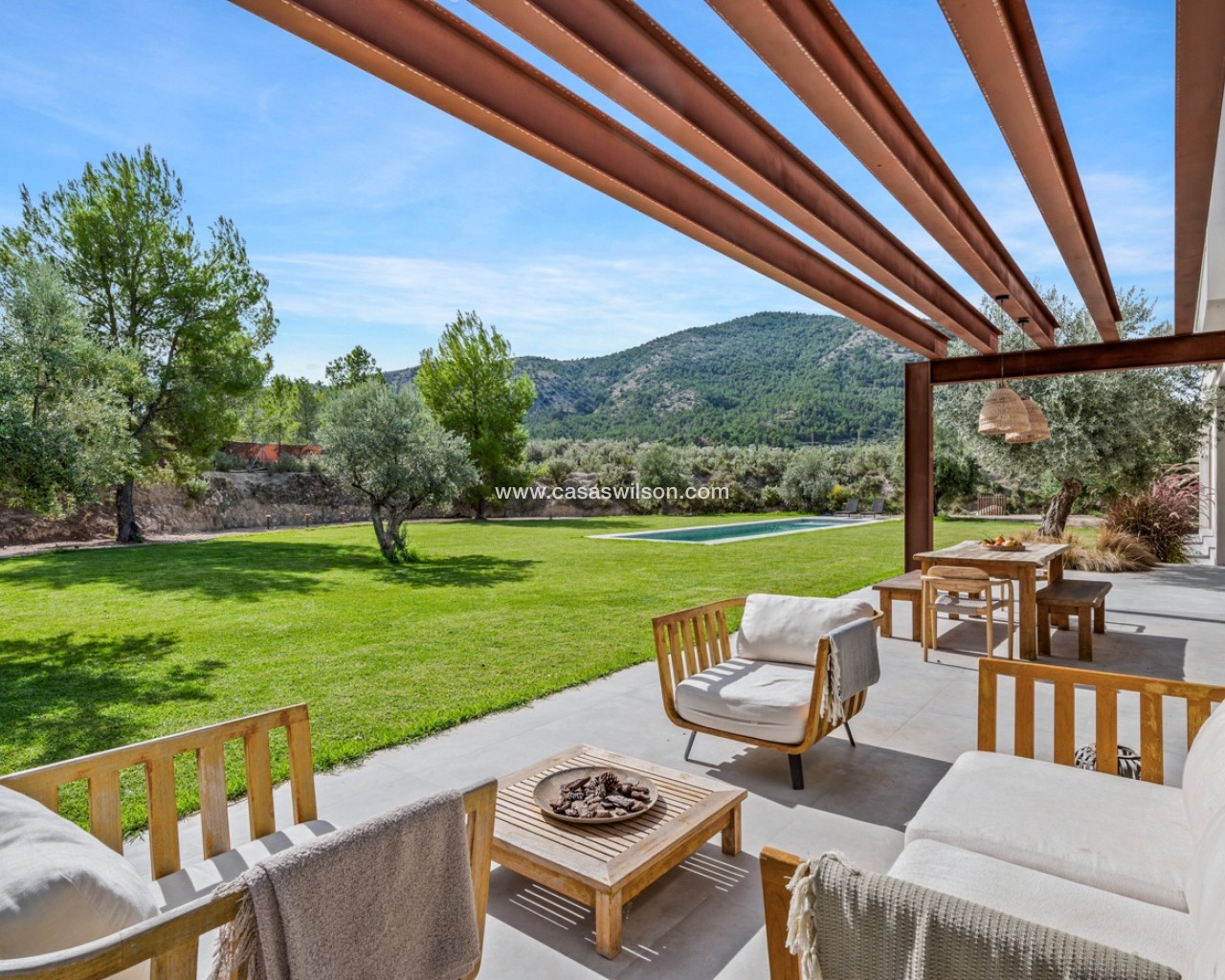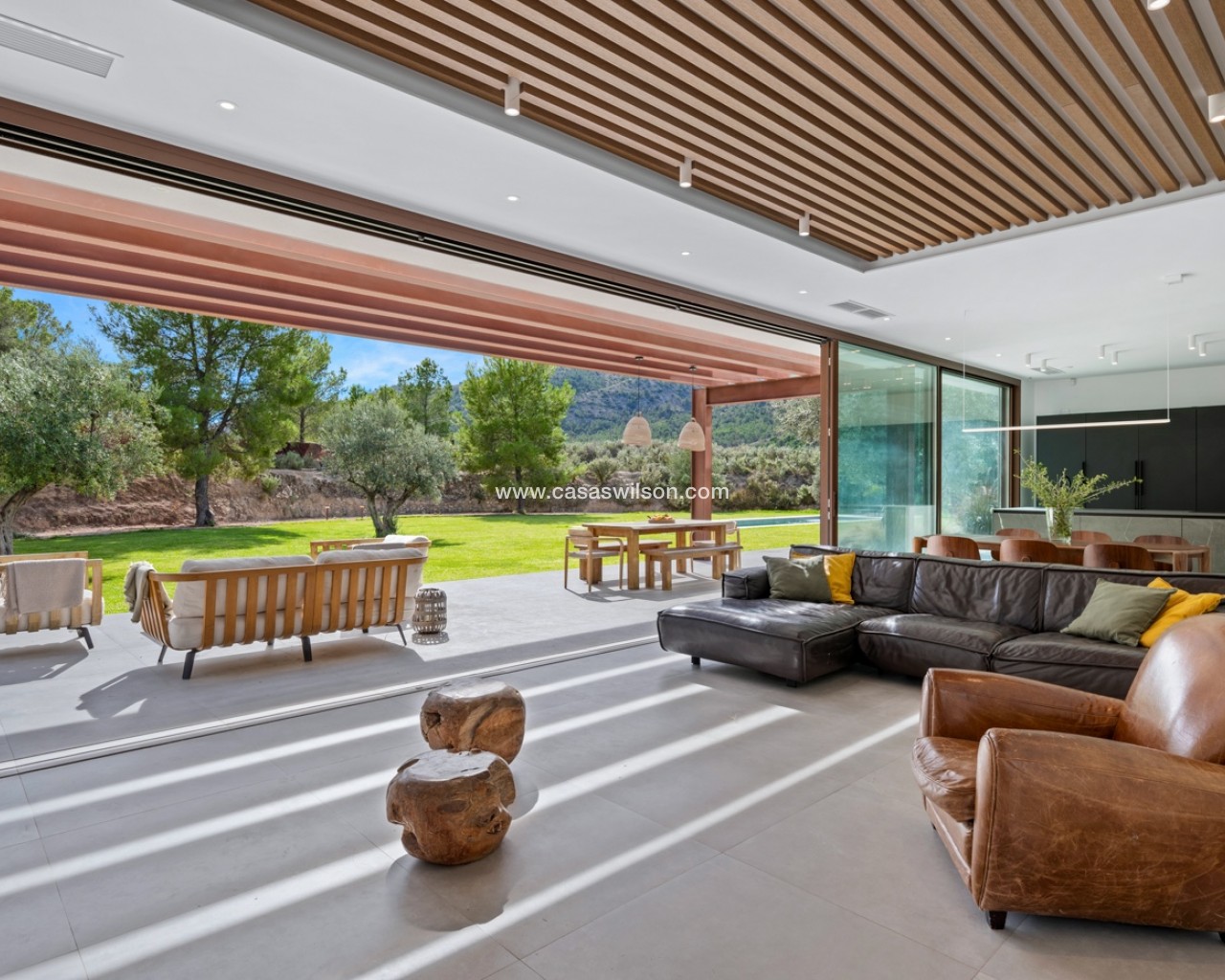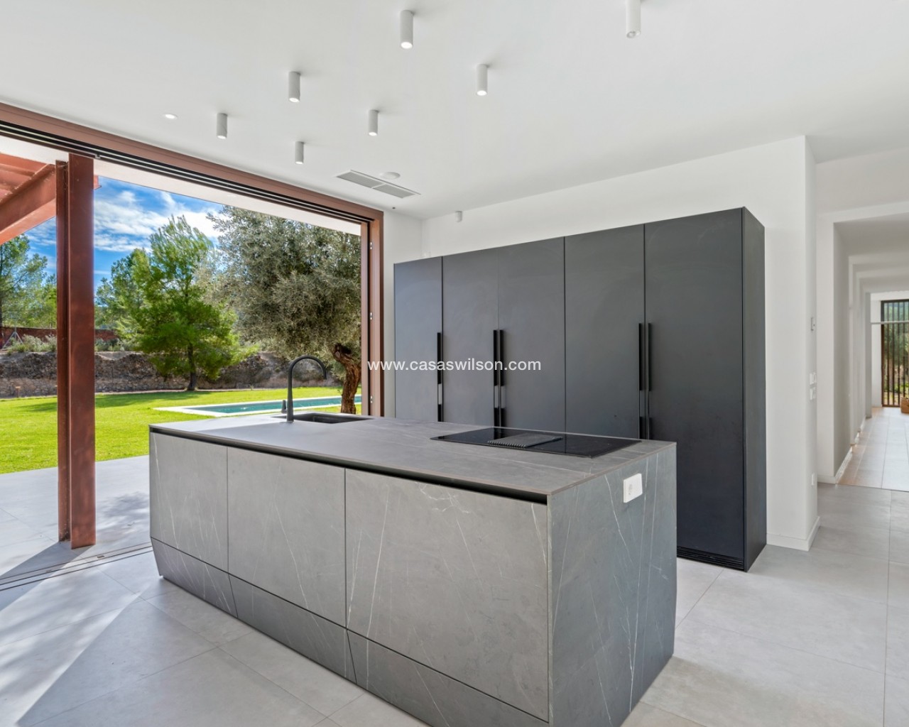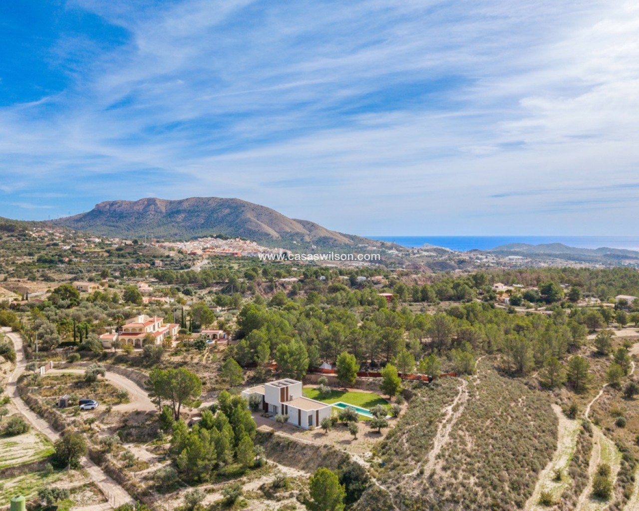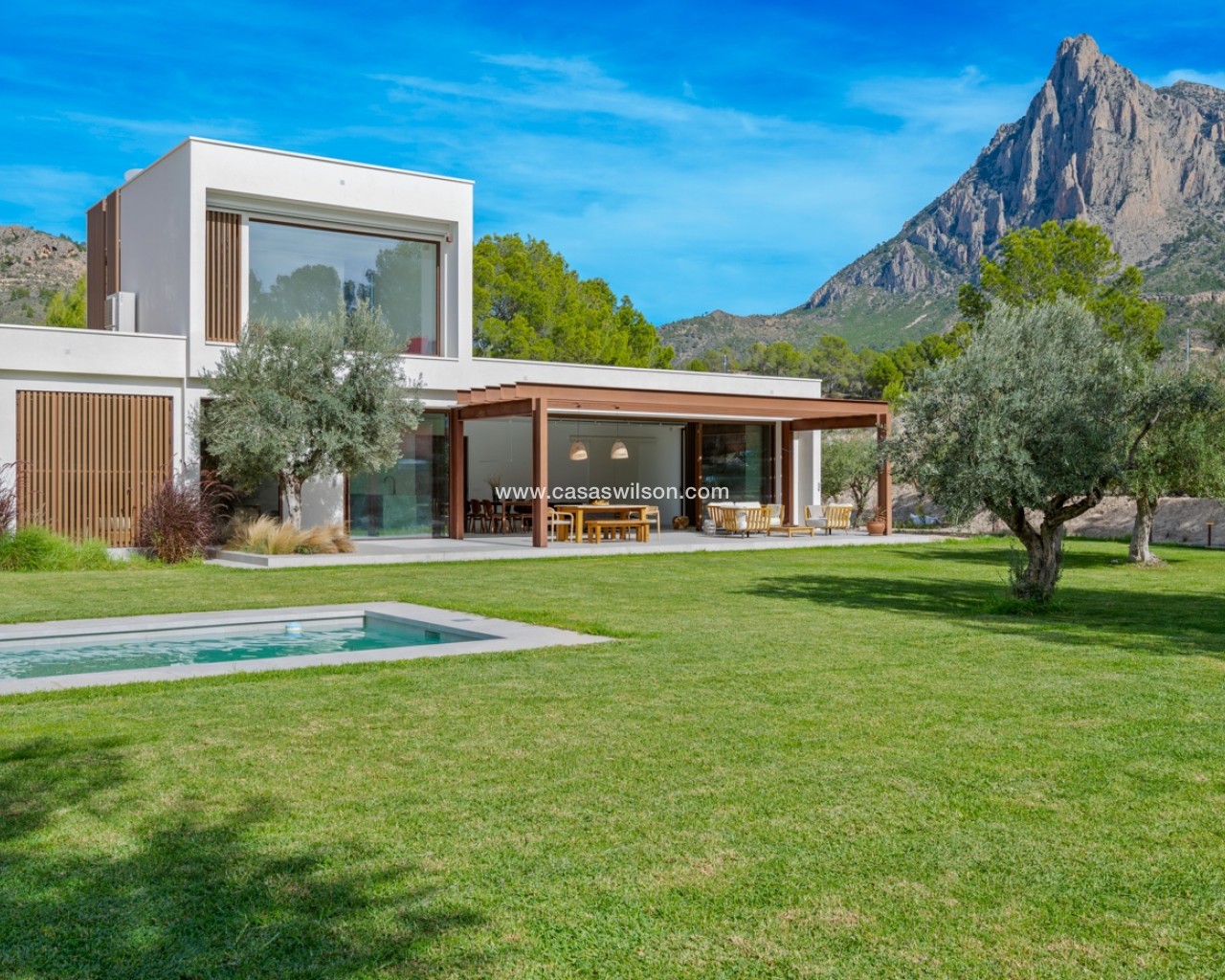 Hay lugares que no se buscan en Idealista. Se sueñan. Se respiran. Se sienten antes incluso de pisarlos. Esta Passive-House en Finestrat es uno de ellos, no es solo arquitectura moderna, sino es una forma de vivir un estilo de vida sostenible, vanguardista y en calma. 230m² de los más altos estándares biopasivos y de eficiencia, para aprovechar cada rayo de sol, cada brisa, cada gota de lluvia... Todo juega en sintonía con los 10.000m² de naturaleza, olivos y frutales que la rodean. Aquí, el exterior no empieza en la puerta de casa, empieza mucho antes. En la parte principal del exterior cuenta con un enorme jardín, piscina de diseño y una bonita terraza, donde sentir esa brisa de aire fresco mientras disfrutas de una cena con tus seres queridos. En el interior, la vida se vive lento. Un salón-comedor amplio, donde poder disfrutar de largas sobremesas con amigos, familiares o, simplemente disfrutar de un entorno único a través de sus amplios ventanales. Junto al televisor oculto y la chimenea esperando al invierno, tras las puertas de la pared lateral, puedes descubrir el espacio diseñado para ser tu nueva zona de relax, de trabajo, la biblioteca, o tu próximo refugio creativo. Donde crea sentido el corazón del interior de esta vivienda, se encuentra la cocina. Diseño de alta calidad donde enfocado en compartir momentos únicos, pero también para reunir, celebrar y reír con la familia y amigos. Moderna, funcional, con electrodomésticos Liebherr, que incita a quedarse un rato más. Tras ella, descubres el hall, donde da acceso a la zona más íntima de la vivienda: la suite principal. Una habitación donde el silencio y el relax manda. Un enorme ventanal donde contar estrellas por la noche o dejar entrar el amanecer cada mañana. Vestidor amplio junto al baño en suite, donde espera una bañera de diseño para dejar el día atrás con un baño de espuma… O una larga y tendida ducha mientras observas el imponente Puig Campana. Volviendo al otro ala de la planta inferior, encontramos tres habitaciones más, con armarios empotrados y acceso directo al jardín y piscina. Baño completo para invitados, otro baño principal, y zona de lavandería. Todo pensado al milímétro. Nada al azar. Este hogar no grita lujo, lo susurra. Porque aquí no se vive para impresionar a nadie, se vive para sentir, para oler la tierra mojada entre los olivos mientras saboreas el primer café de la mañana y recuerdas que la paz no está en tener más…La paz está en sentir donde quieres vivir.