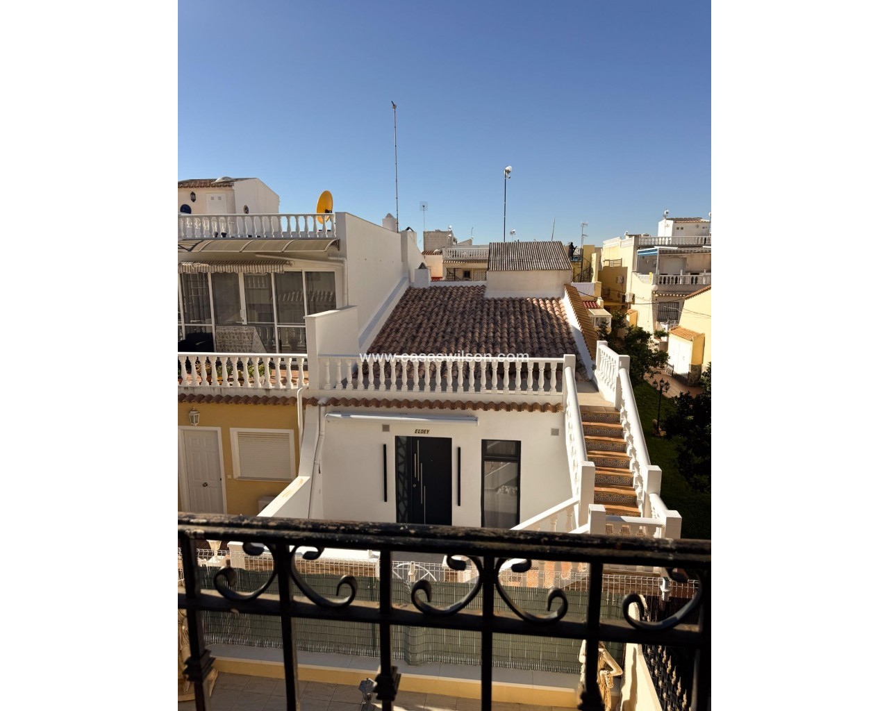 En la codiciada zona de Playa Flamenca, se presenta este atractivo adosado dúplex que fusiona comodidad y una ubicación inmejorable. La propiedad cuenta con dos acogedores dormitorios, un baño completo y un aseo adicional, distribuidos eficientemente para maximizar el espacio. Disfrute del aire libre en su jardín delantero de 25 m² ideal para estacionar vehículos o relajar bajo el sol, así como en su jardín trasero de 24 m² perfecto para reuniones familiares o momentos tranquilos al atardecer. Este hogar también ofrece una terraza descubierta junto a otras dos terrazas ideales para disfrutar del clima mediterráneo durante todo el año; además incluye un exclusivo solárium privado de 20 m² donde podrá tomar baños solares disfrutando vistas despejadas. El complejo residencial está equipado con atractivas instalaciones como una refrescante piscina comunitaria perfecta para los calurosos días veraniegos mientras que las orientaciones Este y Suroeste garantizan luminosidad natural desde primera hora hasta bien entrada la tarde. Los gastos anuales son accesibles: IBI por tan solo €240/año e cuota mensual comunidad €370/año hacen más fácil mantener esta maravillosa vivienda cerca del mar Mediterráneo por sólo €182,000 - ¡una oportunidad imperdible dentro de uno de los destinos más solicitados a lo largo dela Costa Blanca! Con todas las comodidades necesarias tantodiariascomo recreativas,y listapara ser habitadade inmediato.