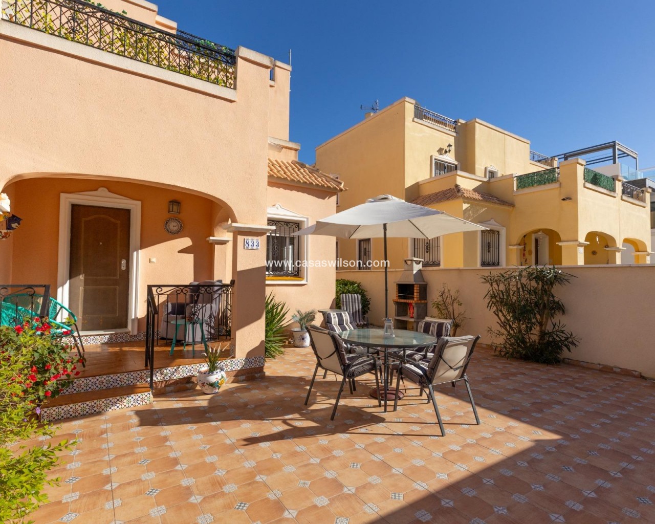 Tu nuevo hogar al sol te espera ☀️ Ubicada en PAU 26 (Orihuela Costa), este quad está listo para que llegues con tus cosas y empieces a disfrutar desde el primer día. Tiene muchísimo espacio exterior: una amplia parcela pavimentada con zona de barbacoa, terraza privada en el dormitorio principal y un solárium perfecto para esas tardes de sol interminables. Orientación oeste, así que ya sabes: mucha luz y atardeceres garantizados. 🌴 Dentro encontrarás tres dormitorios cómodos, dos baños y un ambiente acogedor en toda la vivienda. Ideal tanto para vivir todo el año como para escapadas junto al mar. A tan solo unos minutos en coche tienes buenas playas para elegir o la cosmopolita Torrevieja, y hacia el otro lado la vibrante Villamartin plaza, La Zenia Boulevard o varios de los mejores campos de golf. Un hogar que combina comodidad, sol y buena energía en una de las zonas más demandadas de Orihuela Costa