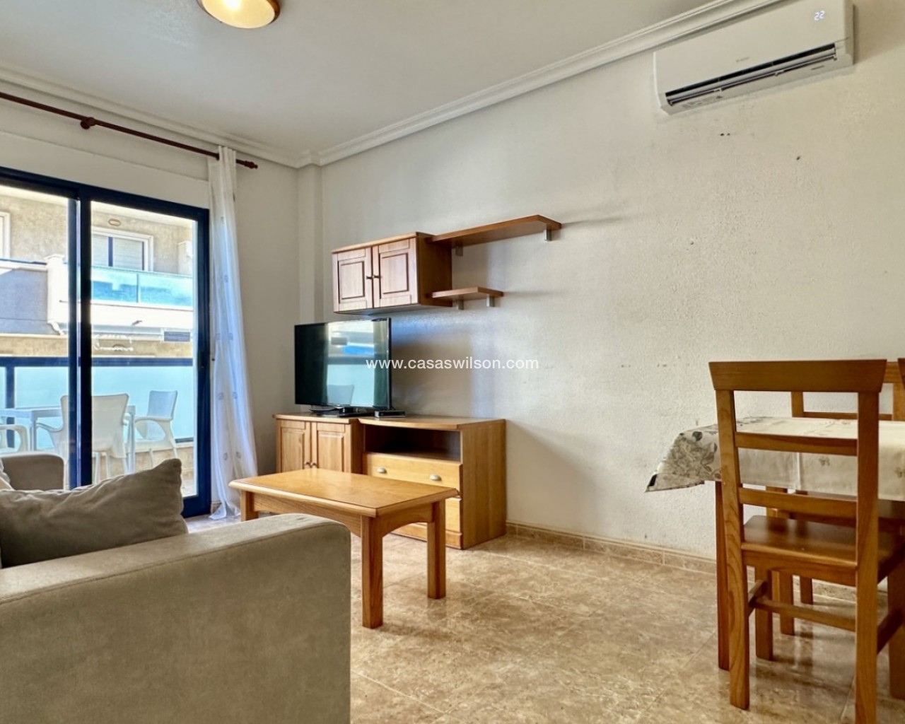 Luminoso y amplio apartamento en primera planta ubicado en la prestigiosa zona de Aguamarina, Orihuela Costa. Cuenta con 97 m² distribuidos en dos dormitorios, un cómodo salón-comedor y una amplia terraza con abundante luz natural. Se vende completamente amueblado y equipado, incluyendo dos nuevos aires acondicionados silenciosos, eficientes y conectados a internet. Incluye plaza de garaje subterránea con acceso mediante ascensor. La urbanización ofrece dos piscinas —una para adultos y otra para niños— además de jacuzzi. La cuota comunitaria incluye internet y servicio de conserjería. Registrado como apartamento turístico, es ideal como vivienda habitual, residencia vacacional o inversión rentable.