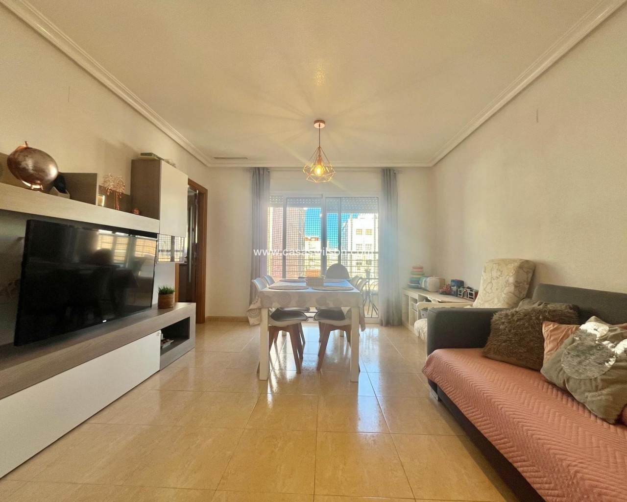 Se vende apartamento en cuarta planta en una de las zonas más cómodas y demandadas de Torrevieja. Está ubicado a solo 300 metros de las piscinas naturales del Paseo Juan Aparicio, un entorno ideal para disfrutar del mar en un espacio tranquilo y protegido. También se encuentra muy cerca de la Playa del Cura, con su paseo marítimo repleto de vida durante todo el año, y a poca distancia de la Ermita del Sagrado Corazón de Jesús, un punto emblemático del centro urbano. La vivienda cuenta con tres habitaciones, una de ellas muy amplia con baño en suite, y un segundo baño para el resto de dormitorios. Dispone de un salón amplio y luminoso con un pequeño balcón, además de cocina independiente bien distribuida. El apartamento está equipado con aire acondicionado central. No se incluyen el frigorífico, la lavadora, la secadora ni la cama de la habitación no principal. Un piso ideal tanto para vivir todo el año como para inversión por su cercanía al mar, su comodidad y su excelente ubicación. ¡No dejes escapar esta oportunidad de estar a un paso de todo en pleno corazón de Torrevieja!