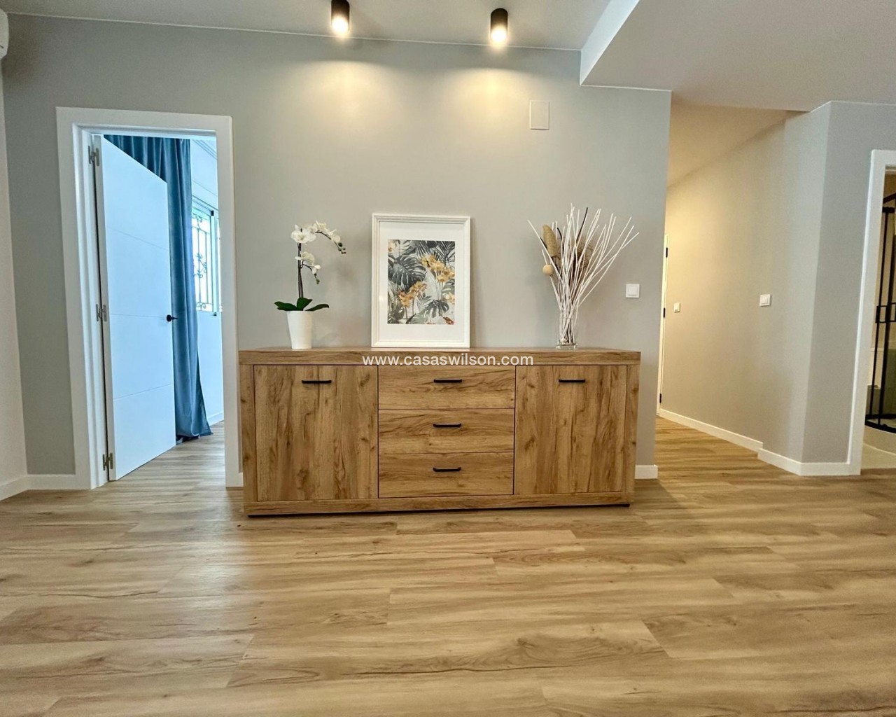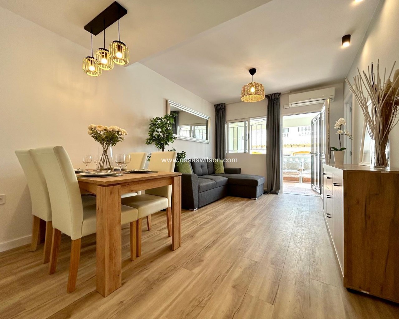 Completamente reformada casa adosada ubicada en la tranquila comunidad de Los Naranjos, en Los Altos. La vivienda ha sido completamente renovada y se encuentra en estado impecable, lista para entrar a vivir. Con la superficie construida de 83m2, consta de tres dormitorios y dos baños completos, salón -comedor, cocina independiente, porche delantero cubierto. La cocina equipada con todos los electrodomésticos modernos, con la zona de lavadero. La vivienda se distribuye en dos plantas y tiene un diseño funcional y moderno. Acceso a la vivienda a través de un jardín privado. En la planta superior se encuentran dos amplios dormitorios dobles, ambos con armarios, y un segundo baño completo con bañera. El dormitorio principal orientado al sur, lo que le proporciona una luz natural durante todo el día. Aire acondicionado instalado en cada estancia. Se vende completamente amueblada, con muebles de calidad y todo lo necesario para entrar a vivir (excepto efectos personales y elementos decorativos). Residencial ofrece una preciosa piscina comunitaria, y la vivienda se sitúa en una calle muy tranquila, con fácil aparcamiento y entorno agradable. A solo 400 metros esta el supermercado Consum, varios restaurantes, a 15 minutos andando del centro comercial Punta Marina. La Playa de Punta Prima esta a 2 km.