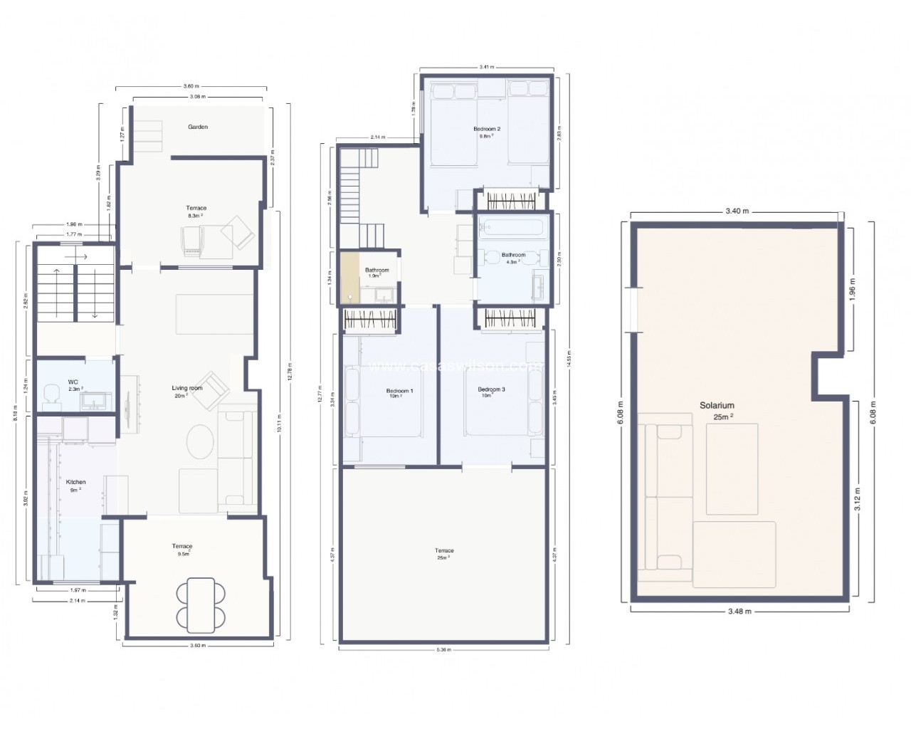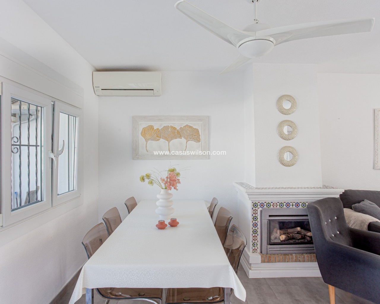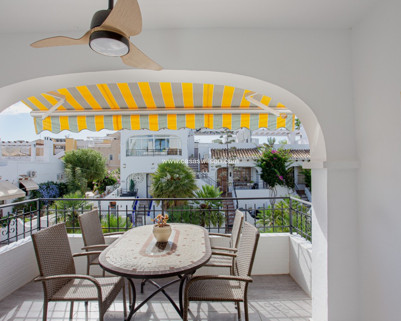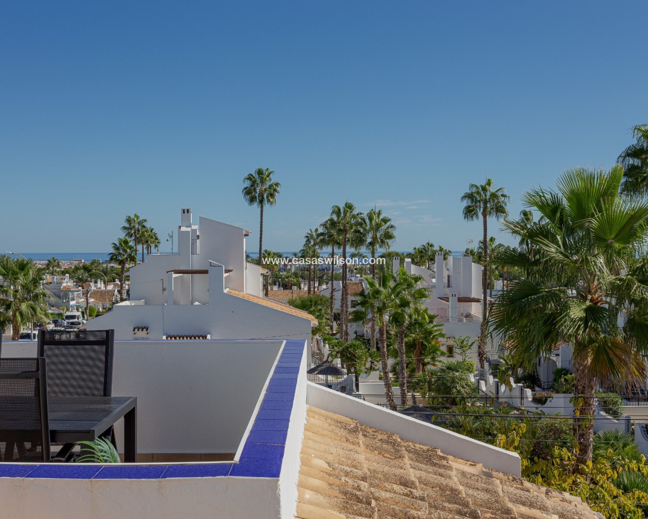 Esta encantadora casa adosada se encuentra en la conocida urbanización Verdemar, en Villamartín (Orihuela Costa). La vivienda ha sido reformada y cuenta con 3 dormitorios, 2 baños y un aseo, ofreciendo un ambiente cómodo y funcional.En la planta principal encontramos un amplio salón, una cocina completamente equipada y un aseo. Desde esta planta se accede a dos terrazas: una en la parte delantera con sol de mañana, y otra con orientación sur, perfecta para disfrutar del sol durante todo el día.La planta superior, destinada al descanso, dispone de 3 dormitorios y 2 baños (uno con ducha y otro con bañera). En la planta inferior, encontramos una gran terraza de unos 45 m² con orientación sur, ideal para relajarse o disfrutar del clima mediterráneo.En la última planta, la vivienda ofrece un amplio solárium de 22 m², con ducha exterior y espacio de almacenamiento, creando un lugar perfecto para tomar el sol o montar una zona chill out.Ubicada cerca de todos los servicios, campos de golf y a pocos minutos de las playas de Campoamor y Cabo Roig, esta propiedad combina comodidad, espacio exterior y una excelente ubicación.