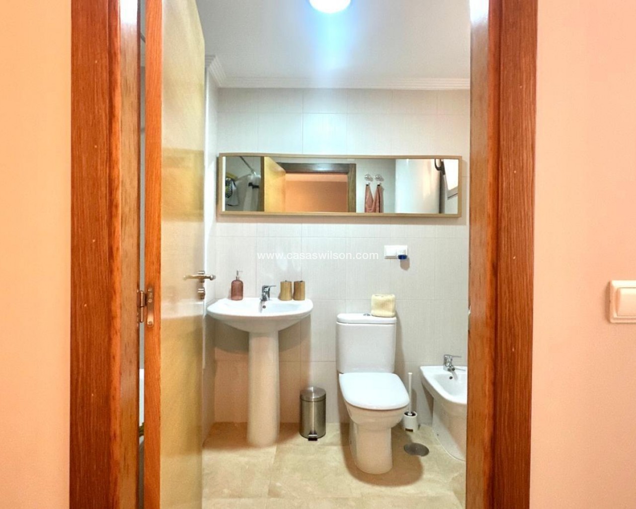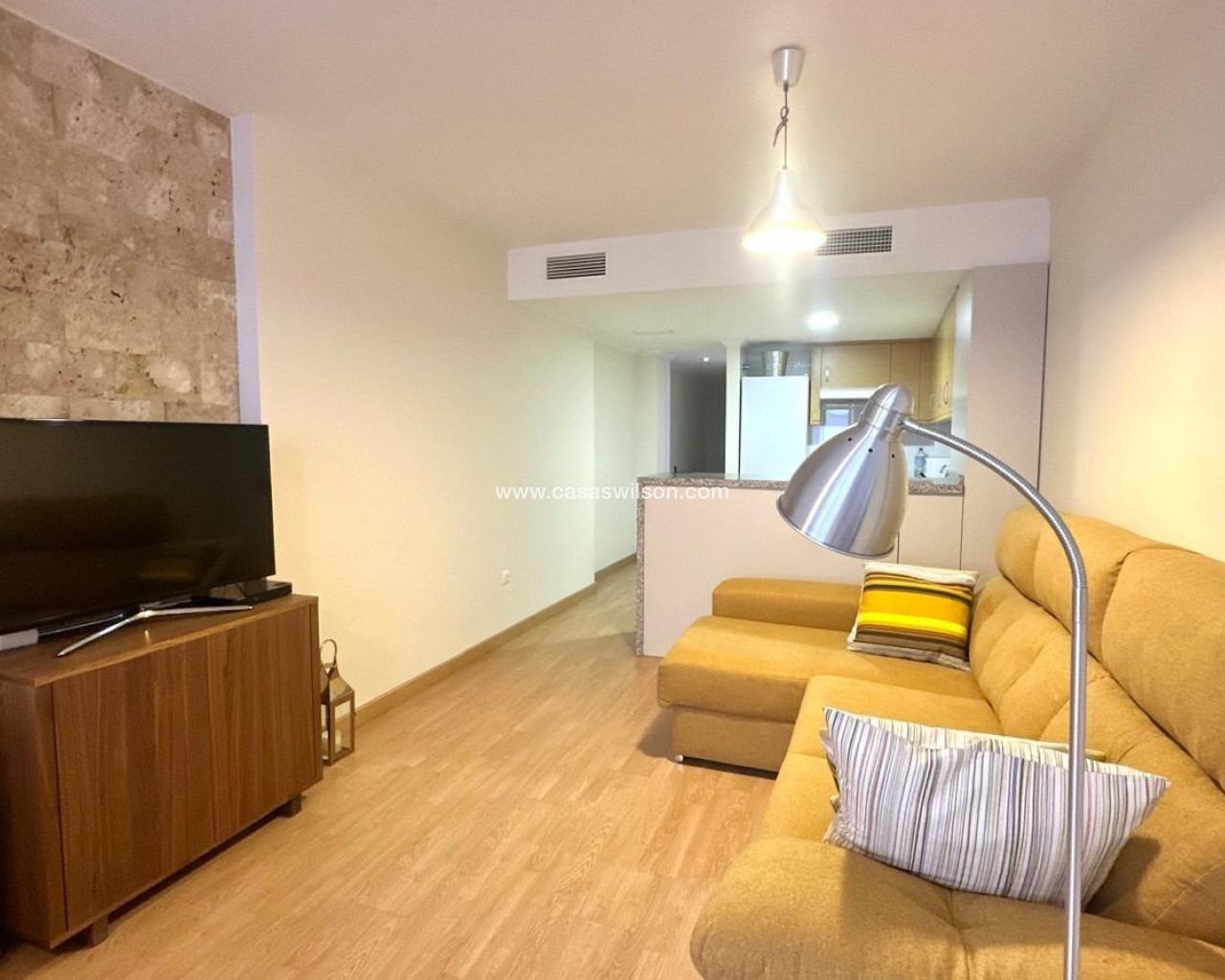 Apartamento moderno a 200 metros de la playa de La Mata Presentamos este magnífico apartamento en primera planta, situado en una de las zonas más demandadas de la costa alicantina: La Mata, conocida por su ambiente mediterráneo, sus amplias playas de arena fina y su excelente oferta de servicios durante todo el año. La vivienda combina comodidad, diseño y ubicación privilegiada, a tan solo 200 metros del mar y rodeada de todos los servicios esenciales. Al acceder al apartamento, nos encontramos con una entrada moderna equipada con videoportero, que aporta un plus de seguridad y confort. La vivienda cuenta con sistema de aire acondicionado centralizado, garantizando una temperatura agradable en cualquier época del año. El corazón del hogar lo constituye un luminoso salón-comedor con orientación sur, lo que asegura una magnífica iluminación natural durante todo el día. Este espacio se integra con una cocina de estilo americano, moderna y funcional, equipada con electrodomésticos y diseñada para aprovechar al máximo el espacio, permitiendo disfrutar de un ambiente abierto y comunicativo ideal para la vida cotidiana. La zona de descanso se compone de dos dormitorios bien distribuidos. El dormitorio principal, de tipo doble, cuenta con baño en suite y armarios empotrados, ofreciendo amplitud, privacidad y orden. El segundo dormitorio, de tamaño individual, es perfecto como habitación de invitados, despacho o espacio infantil. Además, la vivienda dispone de un segundo cuarto de baño completo, equipado con plato de ducha y acabados actuales. El conjunto destaca no solo por su diseño funcional, sino también por su ubicación estratégica. Se encuentra a escasos pasos de la playa de La Mata, lo que permite disfrutar del mar sin necesidad de utilizar vehículo. Asimismo, en las inmediaciones se encuentran todos los servicios necesarios: supermercados, restaurantes, farmacias, transporte público, zonas verdes y espacios de ocio. Este apartamento es una opción ideal tanto para residir todo el año como para invertir en una segunda vivienda o alquiler vacacional, gracias a su cercanía a la playa, su excelente conservación y sus comodidades modernas. En definitiva, se trata de una propiedad que reúne ubicación, calidad y funcionalidad, lista para entrar a vivir y disfrutar del auténtico estilo de vida mediterráneo en una de las mejores zonas de La Mata