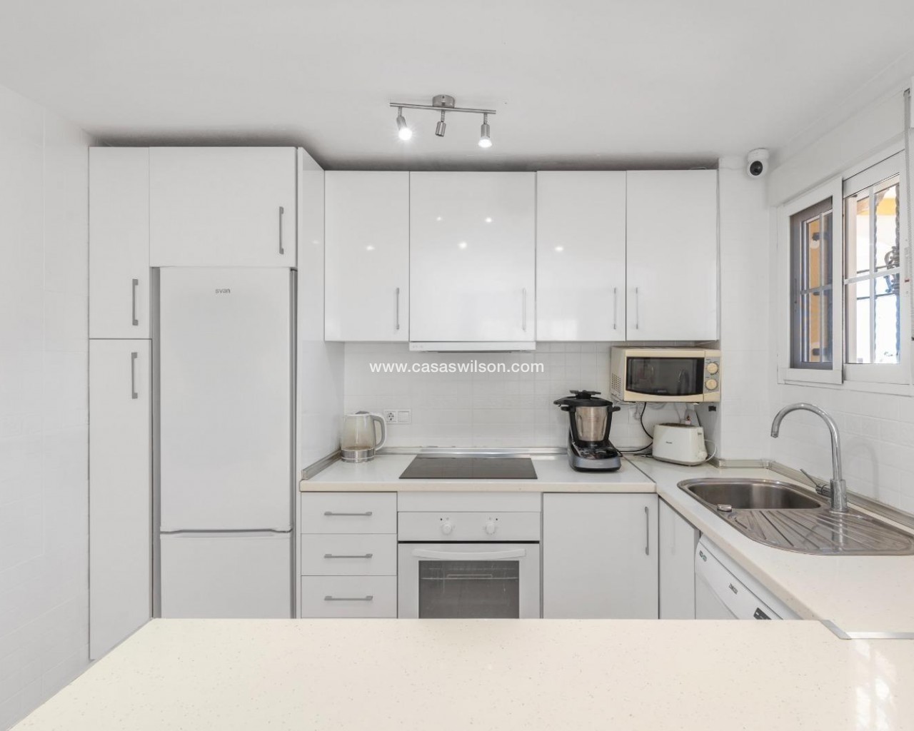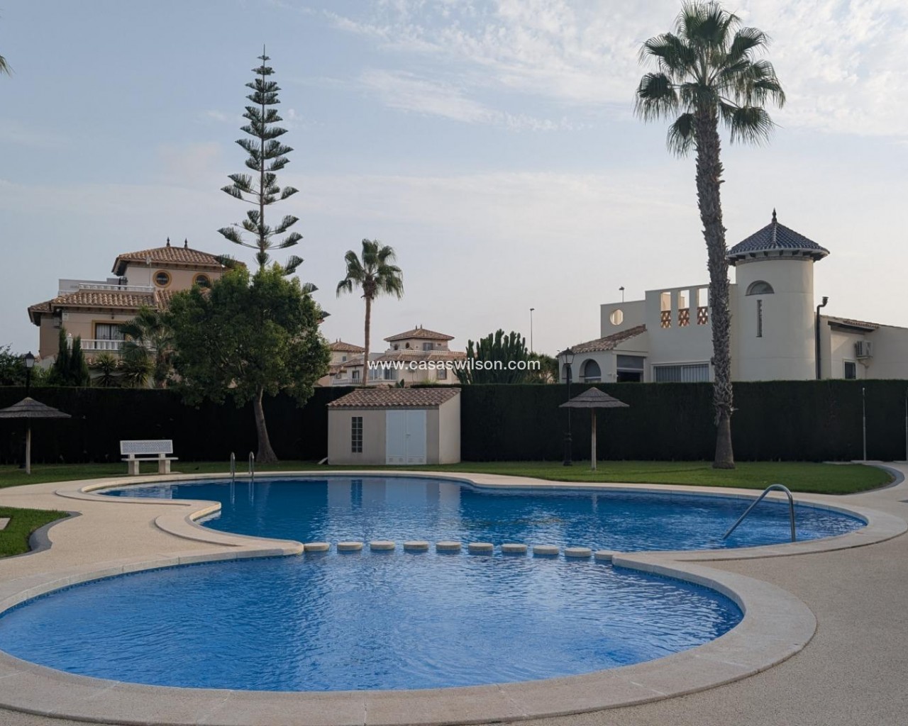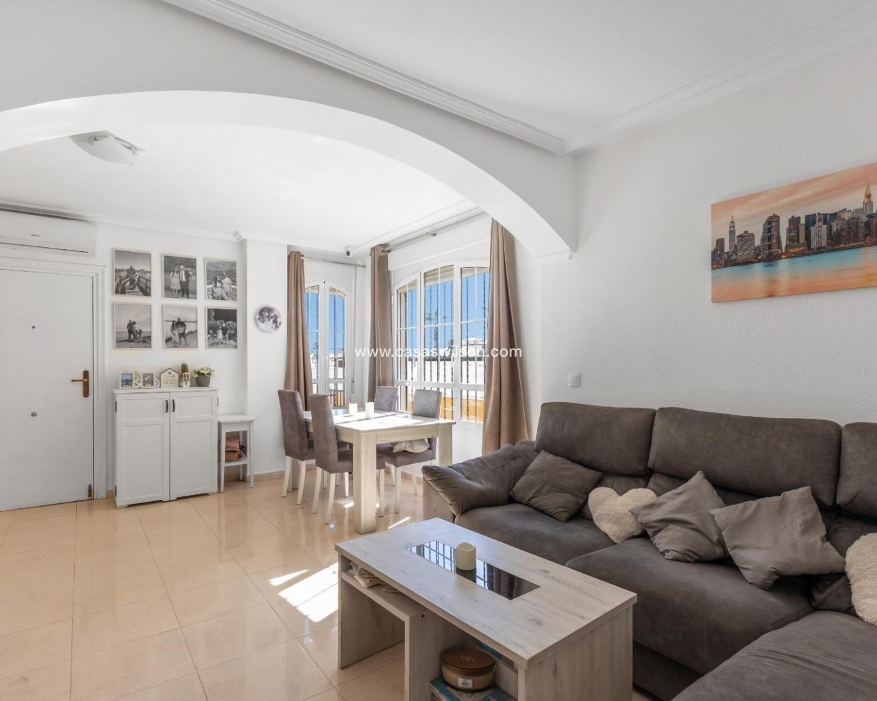 Preciosa casa adosada de 2 dormitorios y 2 baños. Esta casa es luminosa y moderna. La planta baja es diáfana, lo que crea una sensación de amplitud. Disfrute de la zona exterior con jardín privado, balcón, terraza y solárium. La propiedad cuenta con amplio espacio de almacenamiento. Ideal para vivir todo el año o disfrutar de las vacaciones. Cabo Roig se encuentra en Orihuela Costa, en la Costa Blanca Sur, una zona conocida por sus elegantes villas, playas de arena dorada y un encantador paseo marítimo. La zona está bien comunicada, a solo 45 minutos del aeropuerto de Alicante y con fácil acceso al aeropuerto de Murcia. La franja de Cabo Roig se extiende a lo largo de la N-332 y es el epicentro de la vida social. Está repleta de bares, cafeterías, restaurantes, tiendas, un centro de salud, supermercados y mucho más, a lo largo de una amplia franja peatonal de unos 650 metros de longitud. La zona es multicultural, con numerosos negocios que atienden a visitantes internacionales, combinando influencias españolas y europeas en la gastronomía y la vida social. Cabo Roig disfruta de un microclima mediterráneo con inviernos suaves, veranos calurosos, alrededor de 325 días de sol al año y una temperatura media anual de 19,3 °C. Las playas de La Cala Capitán y La Caleta están cerca y son ideales para familias, con arena fina, chiringuitos, senderos y opciones de accesibilidad como pasarelas de madera.