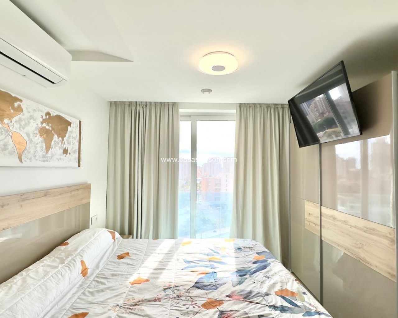 Este apartamento ofrece un estilo de vida mediterráneo cuidado al detalle, combinando tranquilidad, confort y un toque de lujo pensado para quienes quieren disfrutar de Benidorm con un nivel superior de calidad. La distribución está diseñada para que cada estancia resulte práctica y cómoda, aprovechando al máximo la luz natural y creando una sensación de amplitud desde el primer momento. La vivienda transmite una mezcla perfecta entre hogar acogedor y refugio de vacaciones, adaptable tanto a parejas como a familias pequeñas o compradores que buscan un producto atractivo para alquilar. Zona de día y sensación de espacio La zona de día se organiza alrededor de un salón amplio conectado con la cocina, formando un espacio social muy cómodo donde se desarrolla la mayor parte de la vida diaria. Es un lugar que invita a relajarse, recibir visitas y disfrutar de comidas en un ambiente agradable y luminoso. Desde aquí se tiene acceso directo a la parte exterior de la vivienda o a las vistas de la urbanización, lo que refuerza la sensación de continuidad entre interior y exterior. La disposición del mobiliario permite separar visualmente el área de descanso, el comedor y la parte de cocina sin perder la sensación de espacio abierto. Zona de noche y privacidad Las 2 habitaciones están claramente diferenciadas de la zona de día, lo que aporta intimidad y descanso incluso cuando hay actividad en el resto de la casa. El dormitorio principal está pensado como un espacio cómodo y recogido, donde es fácil crear un ambiente relajante para el final del día. La segunda habitación ofrece mucha versatilidad: puede funcionar como dormitorio para invitados, cuarto para niños, despacho o una mezcla de todo según las necesidades del propietario. Esta separación funcional permite que el apartamento se adapte a diferentes etapas de la vida y a distintos perfiles de comprador. Comodidad de los 2 baños Contar con 2 baños aumenta enormemente la comodidad, sobre todo cuando se comparte vivienda o se recibe familia y amigos con frecuencia. El baño vinculado al dormitorio principal aporta un extra de privacidad, muy valorado en propiedades de este nivel. El segundo baño resulta perfecto para dar servicio al resto de la casa y a los invitados, evitando esperas y facilitando el día a día. Esta configuración convierte la vivienda en una opción muy práctica para estancias largas, alquiler vacacional o uso compartido. Piscina: ocio y estilo de vida La piscina de la urbanización es uno de los grandes puntos fuertes, ya que añade un componente de ocio y bienestar que muchos compradores buscan cuando eligen Benidorm. Es el lugar perfecto para refrescarse en los meses de calor, relajarse después de la playa o disfrutar en familia sin necesidad de salir del residencial. Además, funciona como punto de encuentro entre vecinos, lo que genera un ambiente agradable y seguro en la comunidad. Para quien busca un apartamento cerca del mar con extra de disfrute, tener piscina marca una clara diferencia. Sauna: bienestar y valor añadido La sauna supone un plus que eleva la vivienda a un nivel superior dentro del mercado. Es un espacio pensado para desconectar, cuidar la salud y disfrutar de momentos de relajación sin salir de la urbanización. Este tipo de servicio se asocia con un estilo de vida más exclusivo y es muy atractivo tanto para uso propio como para destacar el anuncio frente a otras viviendas cuando se destina al alquiler. Para compradores exigentes o inversores, disponer de sauna es un argumento muy potente a la hora de elegir esta propiedad frente a otras alternativas. Vivienda ideal para vivir o invertir Gracias a su combinación de 2 habitaciones, 2 baños y zonas comunes de alto nivel con piscina y sauna, este apartamento encaja tanto como hogar principal como segunda residencia o producto de inversión. Benidorm es un destino con alta demanda turística y residencial, por lo que una vivienda con estas características resulta muy fácil de alquilar y mantener ocu