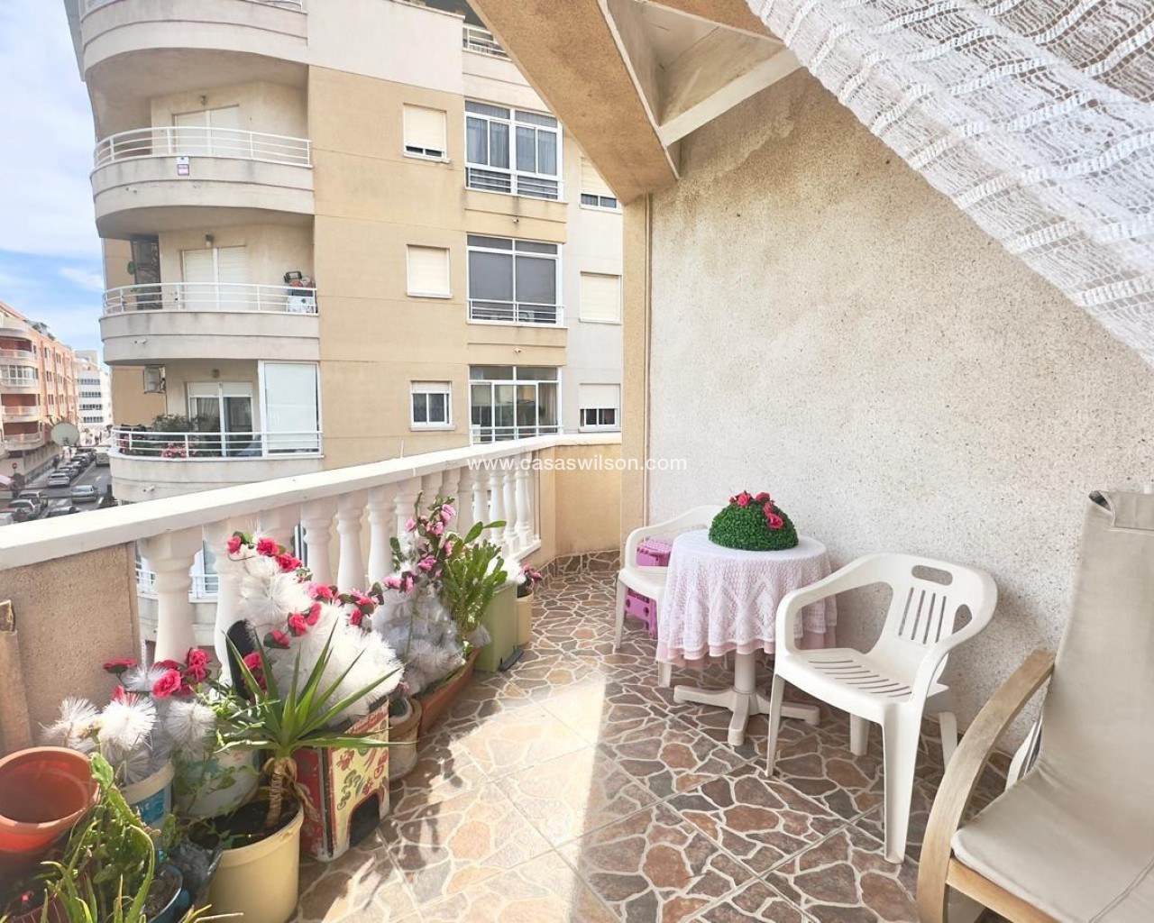 En pleno corazón de Torrevieja, en una de las zonas más cotizadas y con mayor demanda de la ciudad, se encuentra esta exclusiva propiedad tipo Planta Superior / Barra Ático, que destaca no solo por su privilegiada ubicación, sino también por la amplitud y el carácter único de sus espacios. Situada en la confluencia de dos arterias emblemáticas —Patricio Samper y Diego Ramírez Pastor—, esta vivienda representa una oportunidad excepcional tanto para quienes buscan un hogar con encanto urbano como para aquellos que desean invertir en una zona de alto interés residencial. Uno de los elementos más sobresalientes de esta propiedad es su terraza en esquina, un espacio amplio, luminoso y verdaderamente espectacular, que se convierte en el auténtico corazón de la vivienda. Su posición privilegiada permite disfrutar de vistas abiertas hacia las calles principales, aportando una sensación de amplitud y conexión con el entorno urbano difícil de igualar. Es un lugar ideal para relajarse, disfrutar del clima mediterráneo, organizar reuniones o simplemente contemplar la vida de la ciudad desde una perspectiva privilegiada. La vivienda cuenta con dos dormitorios, a los que se suman otros dos adicionales opcionales, lo que amplía enormemente las posibilidades de uso y adaptación según las necesidades del propietario. Esta flexibilidad convierte la propiedad en una opción ideal tanto para familias como para quienes buscan espacio extra para oficina, invitados o zonas de ocio. Dispone de un cuarto de baño, funcional y bien distribuido, así como de una cocina independiente, diseñada para ofrecer comodidad y practicidad en el día a día. Su separación respecto al resto de las estancias garantiza un uso más eficiente y ordenado del espacio. El salón comedor, amplio y luminoso, se presenta como una estancia versátil, perfecta para la convivencia, el descanso y el entretenimiento. Su amplitud permite múltiples opciones de distribución y decoración, adaptándose con facilidad a estilos modernos o tradicionales. A la entrada nos encontramos con un hall de bienvenida, que aporta un toque de elegancia y estructura al conjunto de la vivienda, generando una transición natural entre el exterior y las áreas interiores. La propiedad forma parte de una comunidad que ofrece una piscina comunitaria y amplias zonas comunes, elementos que añaden valor y comodidad, y que contribuyen a disfrutar de un estilo de vida más completo sin necesidad de desplazarse. En definitiva, esta Planta Superior / Barra Ático en pleno centro de Torrevieja es una oportunidad única: una vivienda con una ubicación inmejorable, una terraza en esquina difícil de encontrar, gran amplitud interior y todas las comodidades necesarias para disfrutar plenamente de la vida urbana y del clima mediterráneo. Ideal tanto como residencia habitual como inversión estratégica, ofrece un equilibrio perfecto entre confort, funcionalidad y exclusividad.