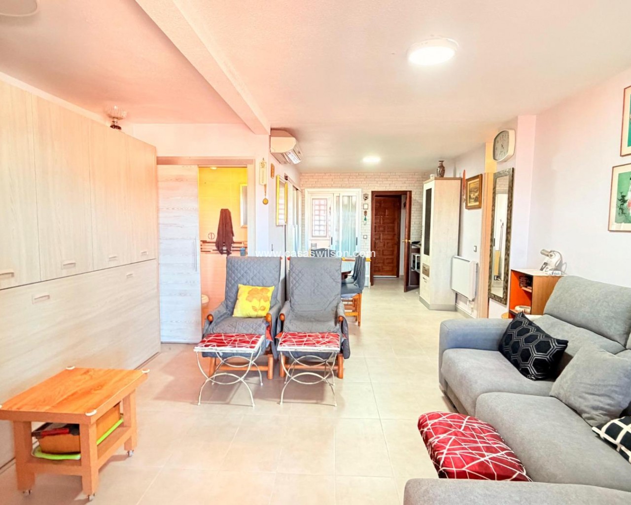 Precioso piso con vistas al mar a tan solo 150 de la playa de los Naufragos. Consta de 2 dormitorios amplios con armarios empotrados, dos baños - uno completo con plato de ducha y otro aseo, salon-comedor con salida a la terraza acristalada con preciosas vistas despejadas y al mar, cocina independente recien reformada y equipada con electrodomesticos y galeria. El piso esta recien pintado y con suelo nuevo, puertas interiores nuevas tambien, baños y cocina nuevos. En el salon hay dos muebles que se convierten en dos camas dobles de matrimonio. Esta preparado para las visitas de toda la familia.Se vende amueblado. Esta situado en la cuarta planta y esta muy luminoso. Hay aire-acondicionado frio-calor y radiadores de calefaccion. La comunidad dispone de piscina comunitaria . La playa esta a tan solo 150m. Cerca estan varios supermercados, paradas de autobus, centro medico, parques infantiles, bares y restaurantes. El aeropuerto de Alicante esta a tan solo 40 min. Si quieres vivir en un piso amplio y luminoso muy cerda de la playa o invertir y alquilar, esta es tu oportunidad. Llamenos sin compromiso!