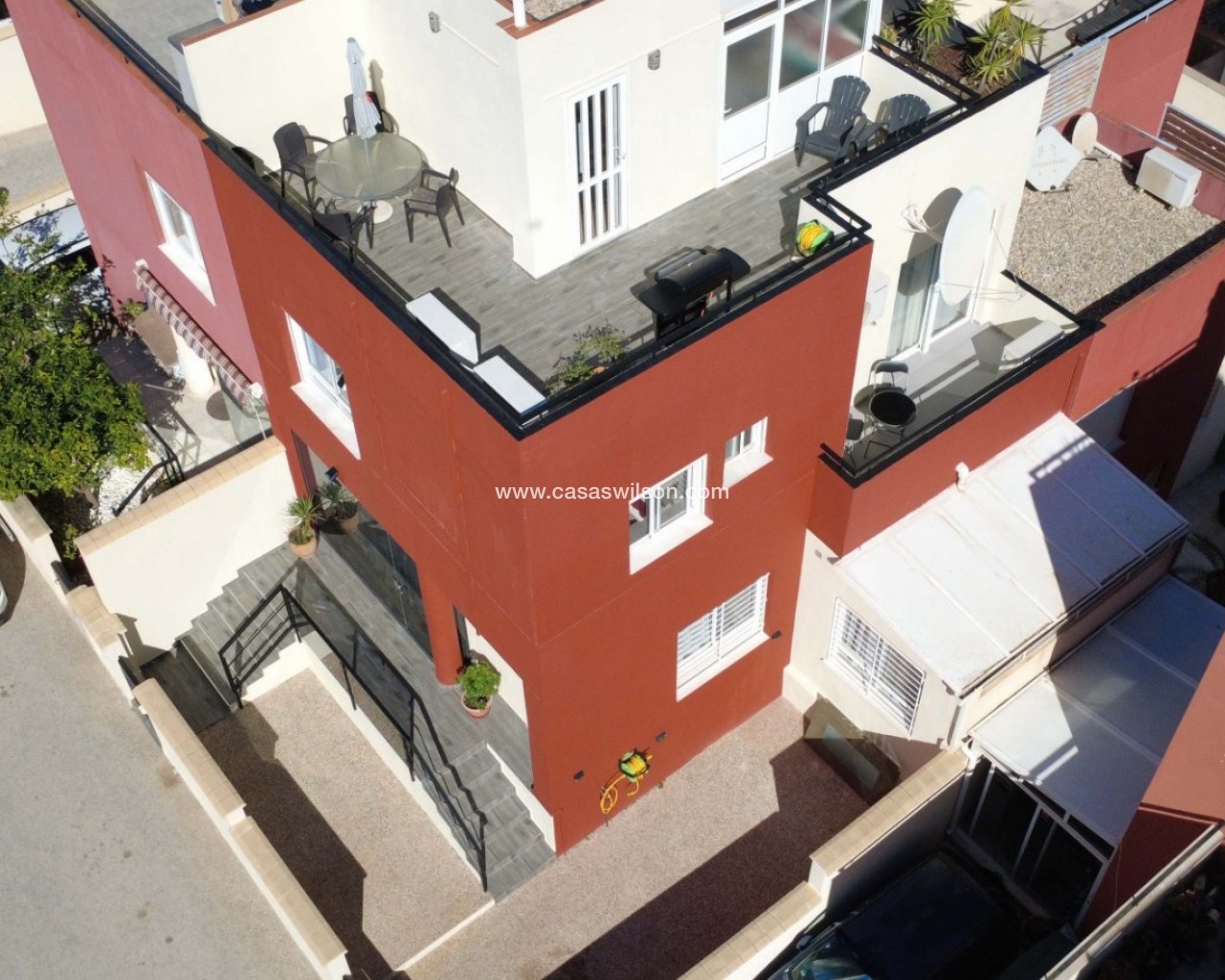 Le presentamos este encantador adosado de 3 dormitorios y 2 baños situado en la codiciada zona de Villamartín, en la hermosa Costa Blanca. Esta vivienda ofrece la combinación perfecta de confort, espacios exteriores y preciosas vistas — ideal como residencia habitual, casa de vacaciones o inversión. En la planta baja encontramos un luminoso salón-comedor, cocina totalmente equipada, un baño completo y acceso directo a una amplia terraza privada, perfecta para comer al aire libre, relajarse o disfrutar del clima mediterráneo durante todo el año. En la planta superior se encuentran los tres dormitorios y un segundo baño. Desde aquí se accede a un balcón privado, mientras que el gran atractivo de la vivienda es su impresionante solárium con espectaculares vistas al mar, ideal para tomar el sol o disfrutar con familiares y amigos. La propiedad está parcialmente reformada, aportando un estilo más moderno y fresco, y se vende totalmente amueblada, lista para entrar a vivir o alquilar de inmediato. Los residentes disfrutan además de una bonita piscina comunitaria, perfecta para refrescarse durante los meses más cálidos. Ubicada cerca de campos de golf, restaurantes, comercios y a pocos minutos en coche de las playas de Orihuela Costa, esta vivienda representa una excelente oportunidad en una de las zonas más demandadas de la Costa Blanca.