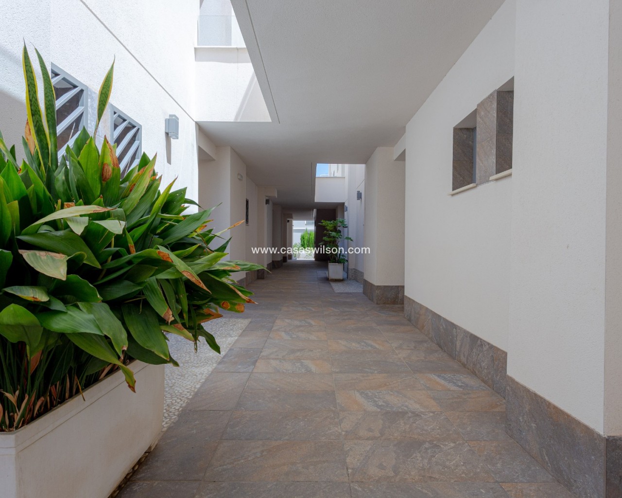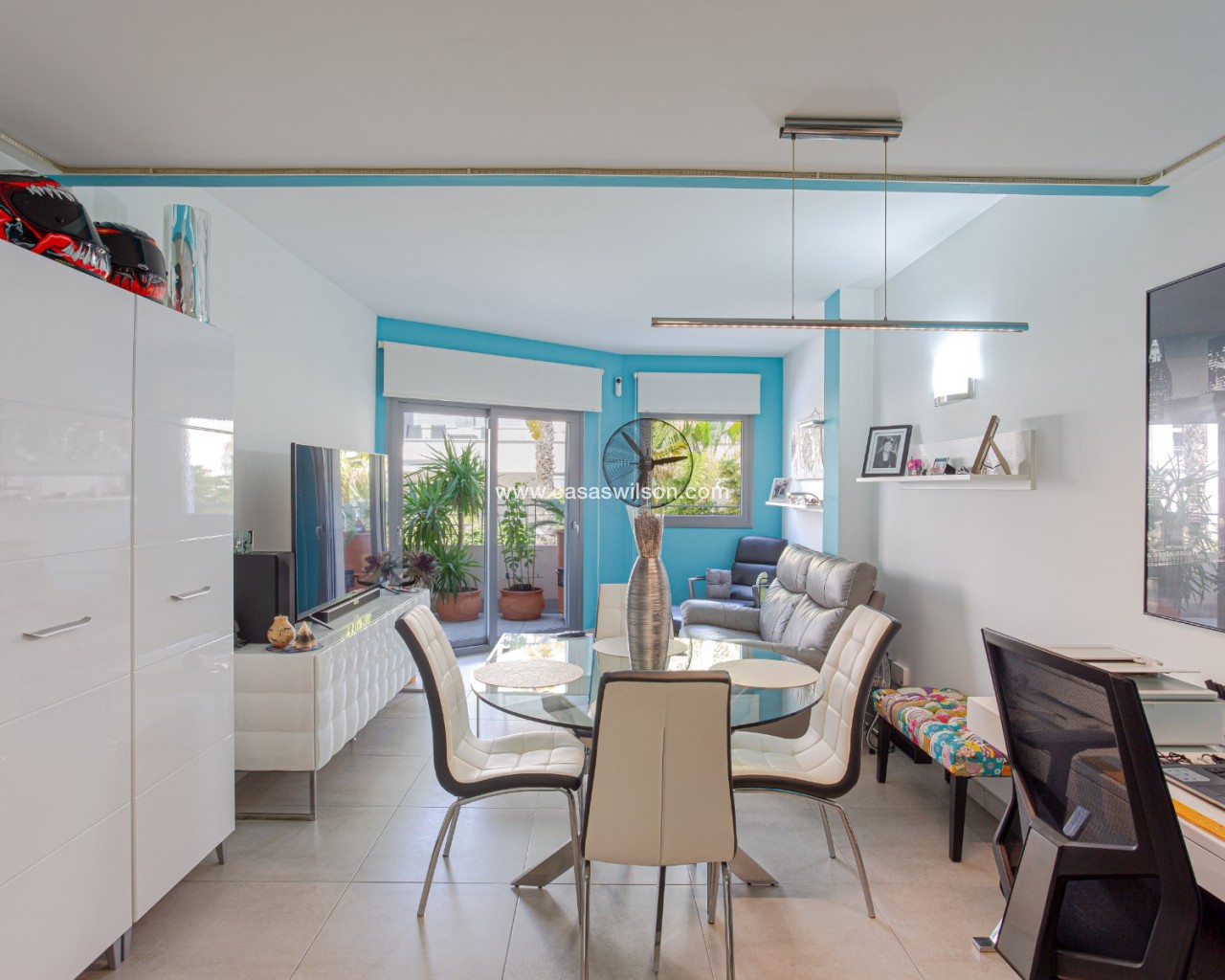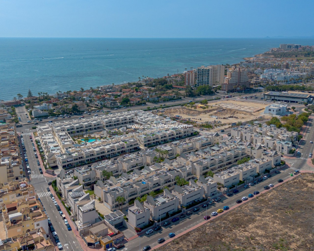 Situado en el complejo residencial Villa Amalia, entre La Veleta y Mar Azul, este apartamento en planta baja combina un diseño moderno y la proximidad al mar.La propiedad ofrece 2 dormitorios y 2 baños, uno de ellos en suite, con una superficie construida de 70 m², un luminoso salón de 20 m² y una terraza jardín orientada al suroeste de 20 m², ideal para disfrutar del sol la mayor parte del día.Construido en 2017, el apartamento incluye:Cocina abierta totalmente equipada con electrodomésticos (horno, lavavajillas, campana extractora, frigorífico, lavadora y secadora).Totalmente equipado: aire acondicionado centralizado, suelo radiante en el baño, persianas eléctricas, ventanas de doble acristalamiento y puerta de seguridad.Amueblado y listo para entrar a vivir.La residencia ofrece excelentes servicios: tres piscinas compartidas, una de ellas climatizada todo el año, gimnasio, ascensor y fibra óptica. También incluye aparcamiento privado.Su ubicación es ideal, a tan solo unos minutos andando del mar, cerca de todos los servicios y con excelentes conexiones con el centro de Torrevieja y las playas de la Costa Blanca.