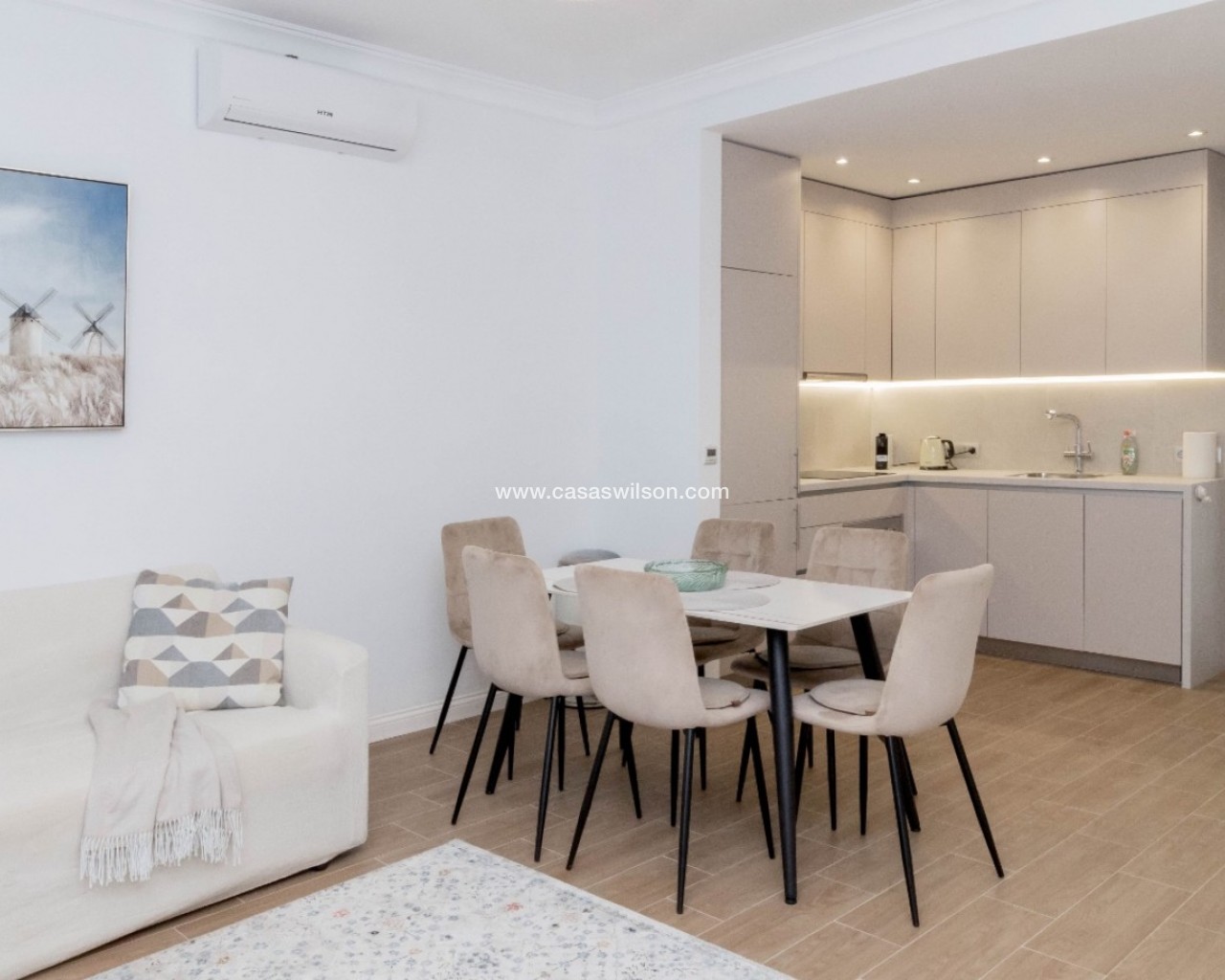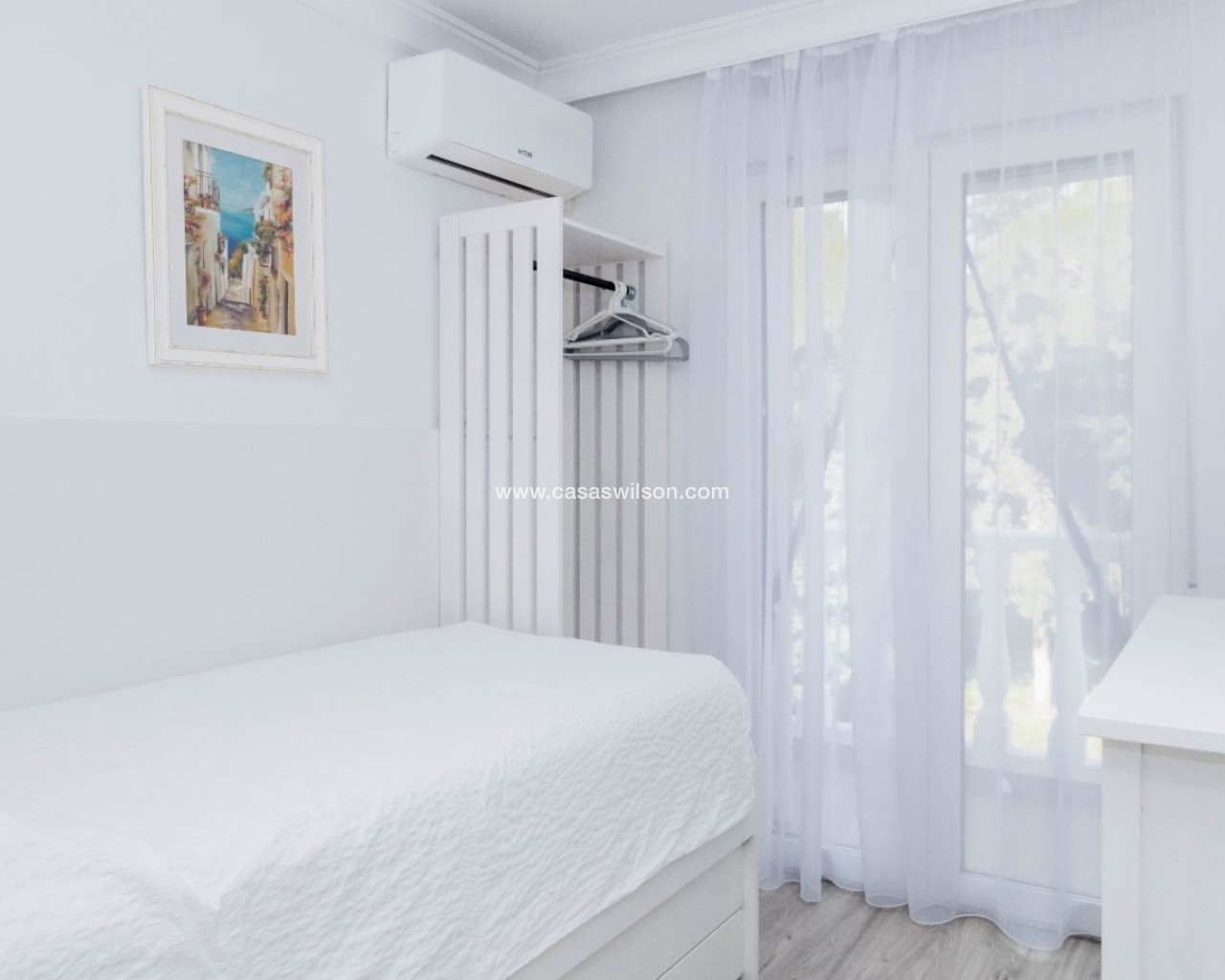 Bienvenido a este adosado completamente reformado ubicado en el corazón de La Zenia, situado directamente en un tranquilo parque verde.La vivienda se encuentra a solo 350 metros de la playa de La Zenia y a 950 metros del famoso centro comercial La Zenia Boulevard. Esta vivienda de estilo español ha sido renovada completamente con altos estándares de calidad y gusto. En el interior encontrará un amplio salón y una cocina nueva totalmente equipada con sistema de filtrado de agua potable.La vivienda dispone de tres dormitorios con vistas al parque y tres baños, incluyendo uno ubicado en el patio junto a la zona de lavandería. Todas las ventanas cuentan con tecnología SOLAR para mejorar el confort térmico. La propiedad dispone de sistema de alarma, puerta de seguridad, aire acondicionado, internet y Smart TV.Suelos vinílicos de alta calidad con calefacción por suelo radiante en planta baja y baños.Instalación eléctrica y fontanería completamente nuevas. El exterior ofrece un acogedor patio con zona de barbacoa, terraza y espacios para disfrutar.Incluye plaza de garaje cubierta y trastero. Se vende completamente amueblado, ofreciendo una oportunidad única para disfrutar de la vida costera con comodidades modernas.Ubicación top que combina infraestructura central, cercanía a playas y tranquilidad. Características principalesAdosado · 2 plantasSuperficie construida: aprox. 80 m²Parcela: 50 m²3 dormitorios · 3 bañosTerraza y balcónTotalmente reformadoArmarios empotradosTrasteroAire acondicionadoPlaza de garaje cubierta incluidaSe vende amueblado