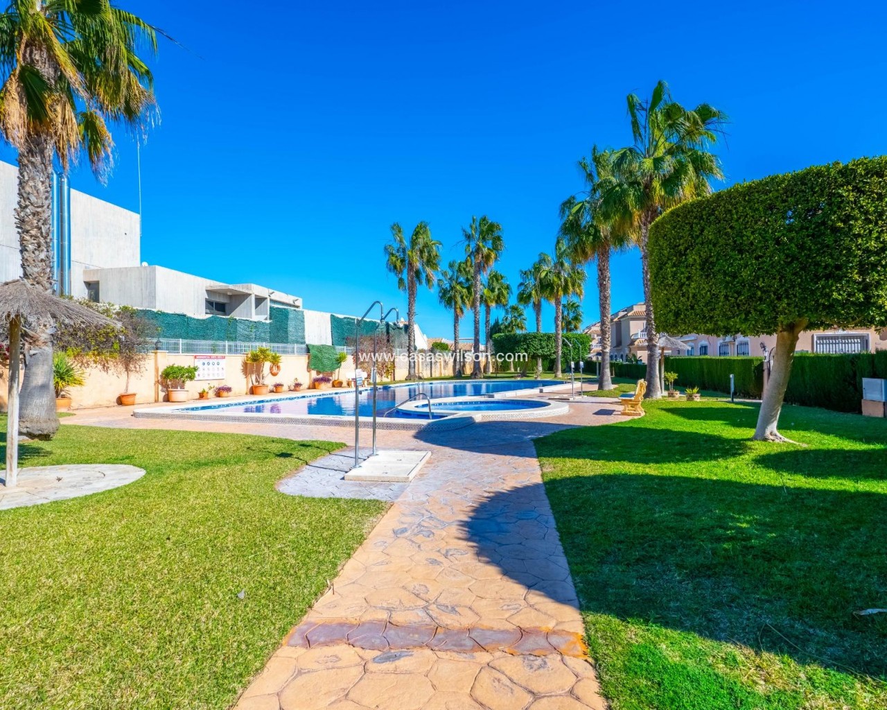 Os invitamos a visitar esta encantadora Casa dúplex en el Residencial Vista Azul, en Orihuela Costa, una de las zonas más demandadas de la Costa Blanca. Ubicada en un entorno residencial muy valorado, permite disfrutar del clima mediterráneo con tranquilidad y un estilo de vida activo y saludable. La vivienda ofrece una distribución cómoda en dos plantas más solárium. Cuenta con un amplio y luminoso salón amueblado con chimenea, cocina moderna de concepto abierto totalmente equipada, 2 dormitorios y 2 baños completos. Dispone además de una luminosa terraza con zona de descanso y un jardín cuidado con espacio de descanso y aparcamiento dentro de la parcela. Incluye trastero privado. Una cosa por destacar de esta villa son sus placas solares. Se encuentra en Residencial Vista Azul y dispone de piscina comunitaria y zonas ajardinadas. Se encuentra a aproximadamente 1km del mar y a 1700m del Centro Comercial La Zenia Boulevard, con todos los servicios esenciales cercanos: supermercados, restaurantes, tiendas y farmacias. Una ubicación ideal por su tranquilidad, buenas playas y excelente clima, perfecta tanto como residencia habitual como inversión.