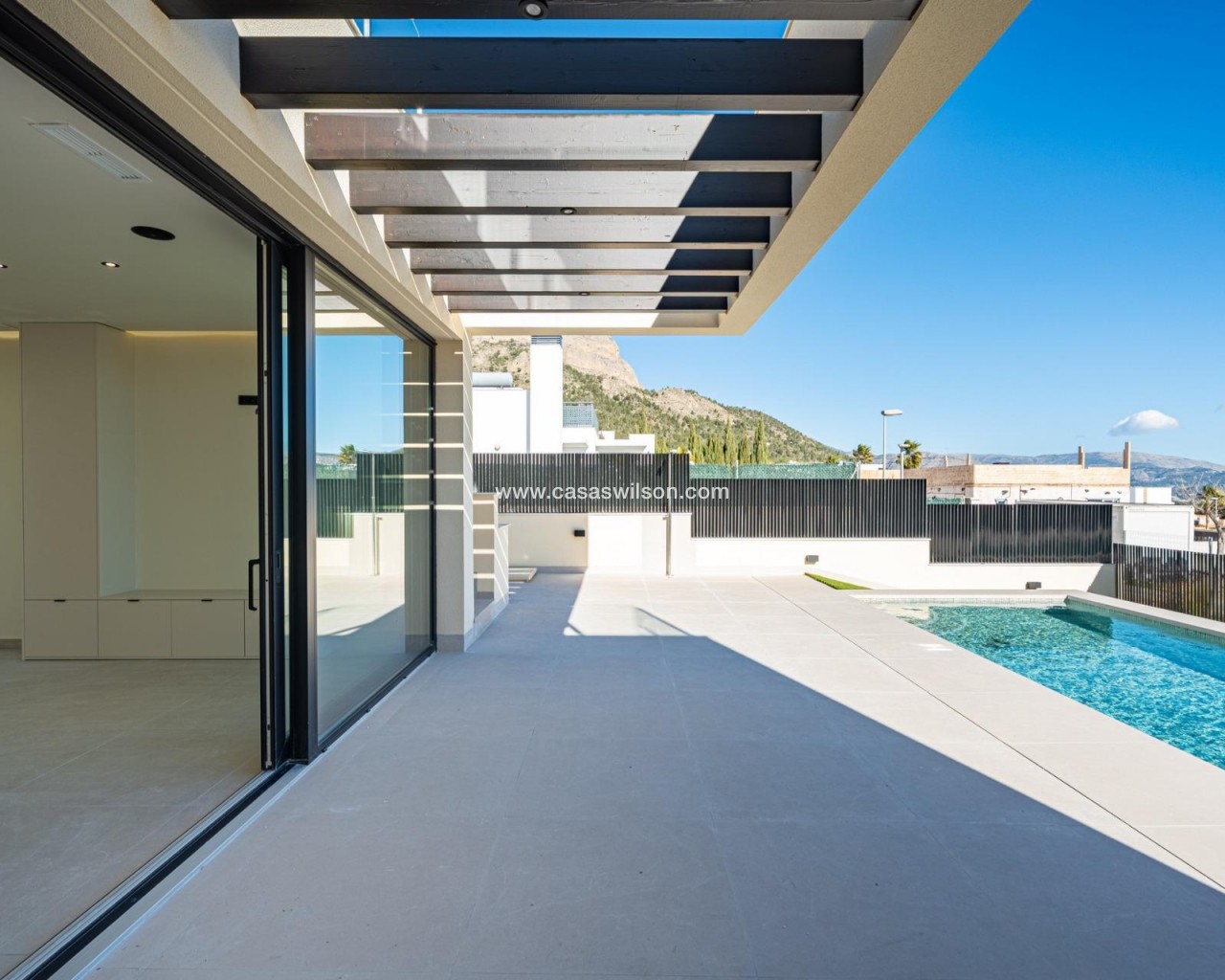 Villa nueva llave en mano con vistas al mar en La Alberca Polop Villa moderna de lujo en un entorno natural de montaña Esta villa contemporánea llave en mano se encuentra en La Alberca, una tranquila zona residencial de Polop, rodeada de bosques y montañas. Situada en un entorno elevado, la propiedad disfruta de vistas panorámicas al mar Mediterráneo, las montañas y el centro histórico de Polop. La villa ofrece privacidad, tranquilidad y excelentes conexiones con la costa y las localidades cercanas. Polop es un encantador pueblo de la comarca de la Marina Baixa, en la Costa Blanca, conocido por su carácter tradicional y su entorno natural. La propiedad está cerca de todos los servicios de La Nucía, incluyendo tiendas, restaurantes, centros deportivos y colegios, mientras que las playas y las animadas localidades costeras se encuentran a poca distancia en coche. Amplia distribución entre la planta principal, el sótano y el solárium La villa se distribuye en una planta principal, un sótano y un solárium en la azotea, lo que ofrece un amplio espacio habitable y flexibilidad. En la planta principal, un acogedor vestíbulo de entrada con armario empotrado conduce a dos dormitorios en suite, incluida una suite principal con puertas ventanas elevables que dan a un balcón Juliette y a una terraza. La sala de estar y el comedor de planta abierta conectan a la perfección con una terraza cubierta con pérgola y una piscina privada de agua salada. El sótano cuenta con dos dormitorios adicionales con baño, grandes ventanas, una sala de juegos o cine flexible con conexiones de agua y electricidad para una zona de bar, un lavadero totalmente equipado con electrodomésticos Haier y dos cuartos técnicos. El solárium de la azotea ofrece un amplio espacio al aire libre con vistas panorámicas al mar y está preparado para la futura instalación de paneles solares. Una cocina al aire libre, múltiples armarios y un jardín de estilo mediterráneo con riego automático completan el exterior. Características de alta gama y eficiencia energética Esta villa destaca por sus acabados de primera calidad y sus instalaciones avanzadas, entre las que se incluyen: Isla de cocina central con electrodomésticos BOSCH integrados Encimeras de piedra natural en interiores y exteriores Preinstalación de calefacción por suelo radiante Sistema de aire acondicionado aerotérmico Mitsubishi Clasificación de eficiencia energética Clase A Preinstalación para sistema domótico Piscina de agua salada con calefacción opcional Aparcamiento privado para dos vehículos Las grandes ventanas con cristales de protección solar maximizan la luz natural y garantizan el confort y la seguridad. Excelente ubicación y distancias Centro de Polop a 2 km La Nucia a 4 km Benidorm a 12 km Altea a 10 km Playas a 10 km Villaitana Golf a 14 km Aeropuerto de Alicante a 65 km Asegúrese la casa de sus sueños en Polop Esta excepcional villa llave en mano combina privacidad, diseño y vistas panorámicas en una de las zonas más atractivas del interior de la Costa Blanca. Póngase en contacto con nosotros hoy mismo para concertar una visita privada y hacer de esta lujosa villa en La Alberca Polop su nuevo hogar.