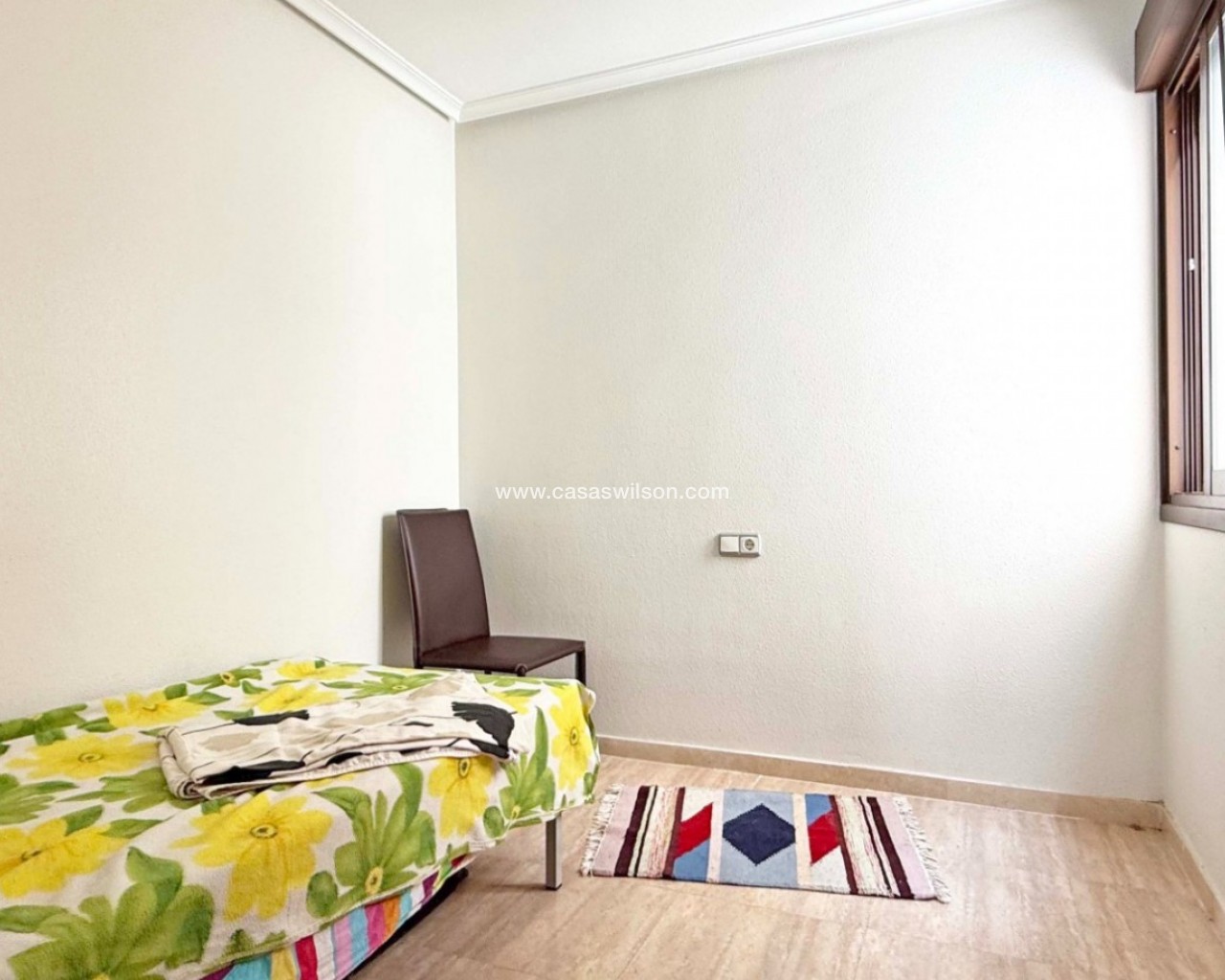Le presentamos este luminoso apartamento en cuarta planta situado en el corazón de Torrevieja, a un paso del paseo marítimo, tiendas y todos los servicios. La vivienda cuenta con 3 dormitorios, 2 baños y un balcón orientado al este con vistas a la piscina comunitaria, ideal para disfrutar del sol de la mañana. El salón-comedor es amplio, con aire acondicionado y se vende amueblado, listo para entrar a vivir. Ubicado en un edificio bien cuidado con ascensor y una gran piscina comunitaria, esta propiedad es perfecta como residencia habitual, casa de vacaciones o inversión de alquiler.