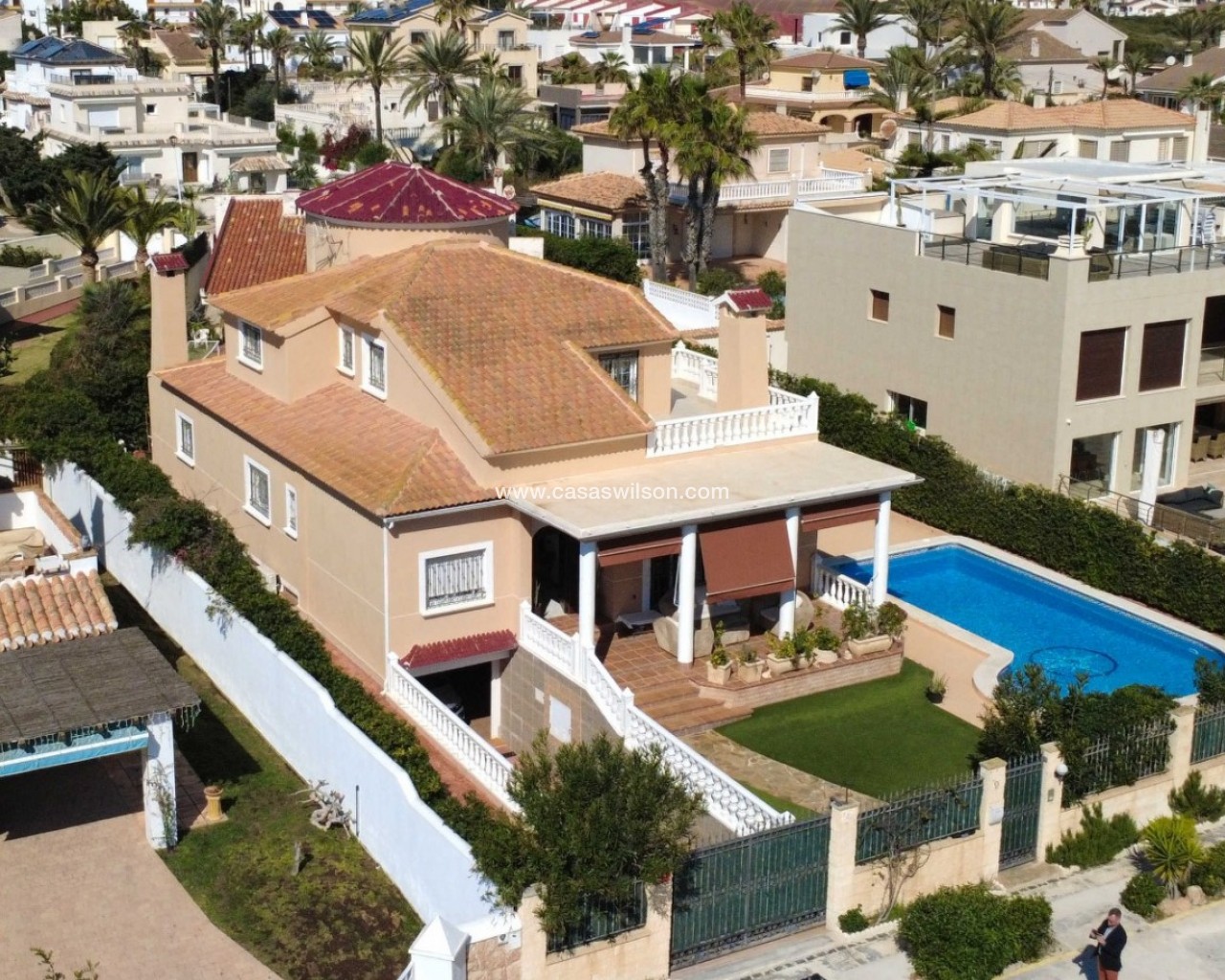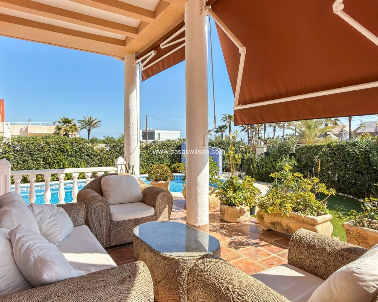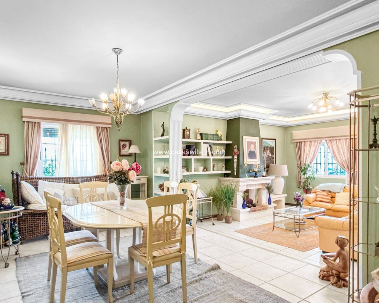 Ubicada en la prestigiosa urbanización Molino Blanco, esta espectacular villa de lujo ofrece espacio, privacidad y un estilo de vida mediterráneo elevado sobre una amplia parcela de 800 m². Con una superficie construida de 440 m², la vivienda se distribuye en dos plantas principales más un semisótano completamente acondicionado como vivienda independiente, ideal para invitados o familiares. La propiedad dispone de seis amplios dormitorios dobles y cinco baños completos, perfecta para familias numerosas o quienes disfrutan recibiendo visitas. Cada planta cuenta con luminosos salones-comedor, creando distintos espacios para relajarse y socializar. En el corazón de la vivienda encontramos una gran cocina independiente con acceso directo al jardín, ideal tanto para el día a día como para reuniones sociales. El exterior es uno de los grandes atractivos de la propiedad. Una impresionante piscina privada rodeada de un cuidado jardín ofrece un entorno tranquilo y exclusivo para disfrutar del sol mediterráneo. Además, cuenta con un acogedor porche y pérgola con barbacoa, perfecta para momentos inolvidables. La vivienda está equipada con calefacción central, aire acondicionado y sistema de alarma completo. Ubicada en un complejo residencial exclusivo, la comunidad dispone de mantenimiento continuo, incluyendo jardinería profesional durante todo el año.