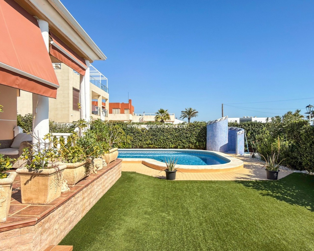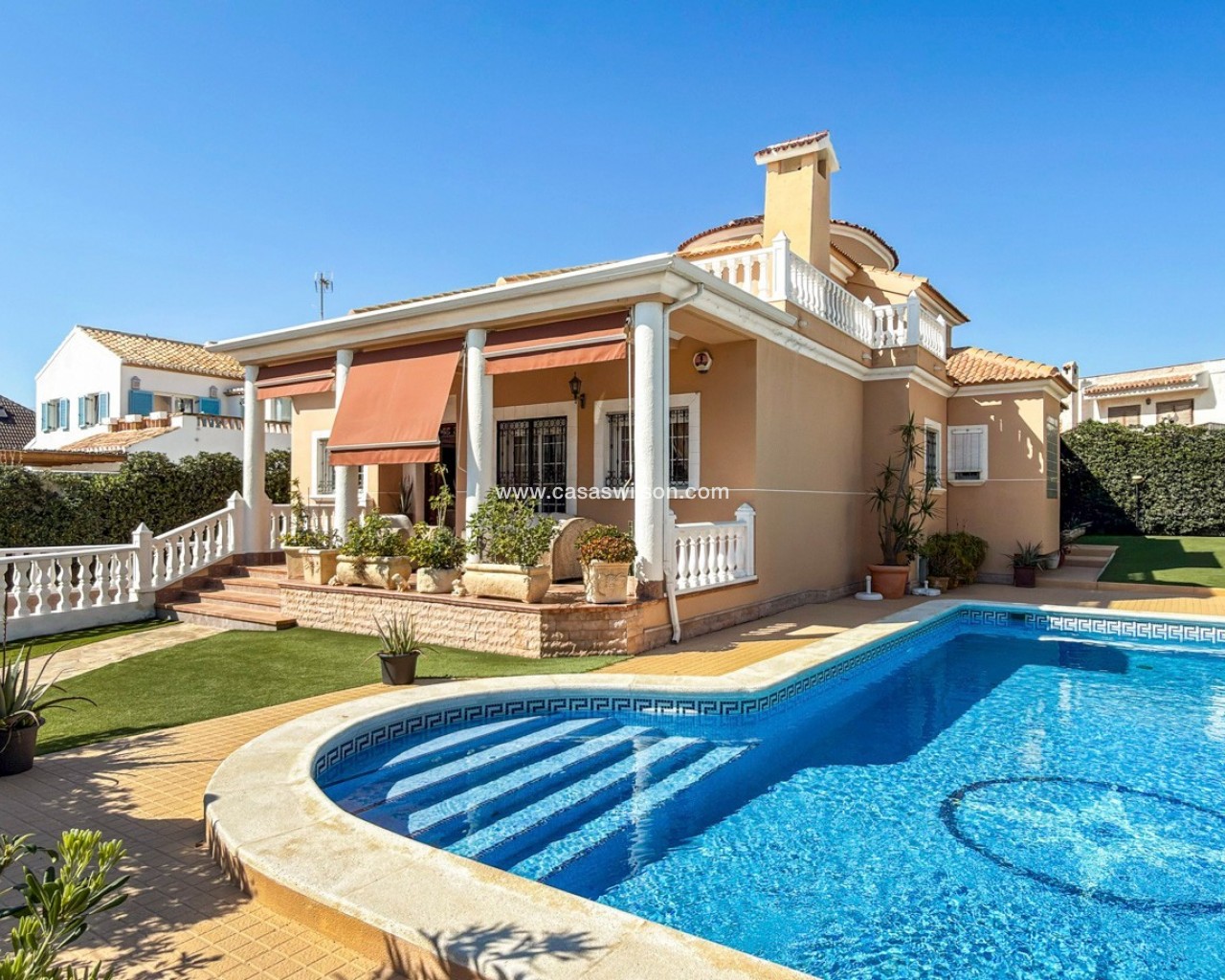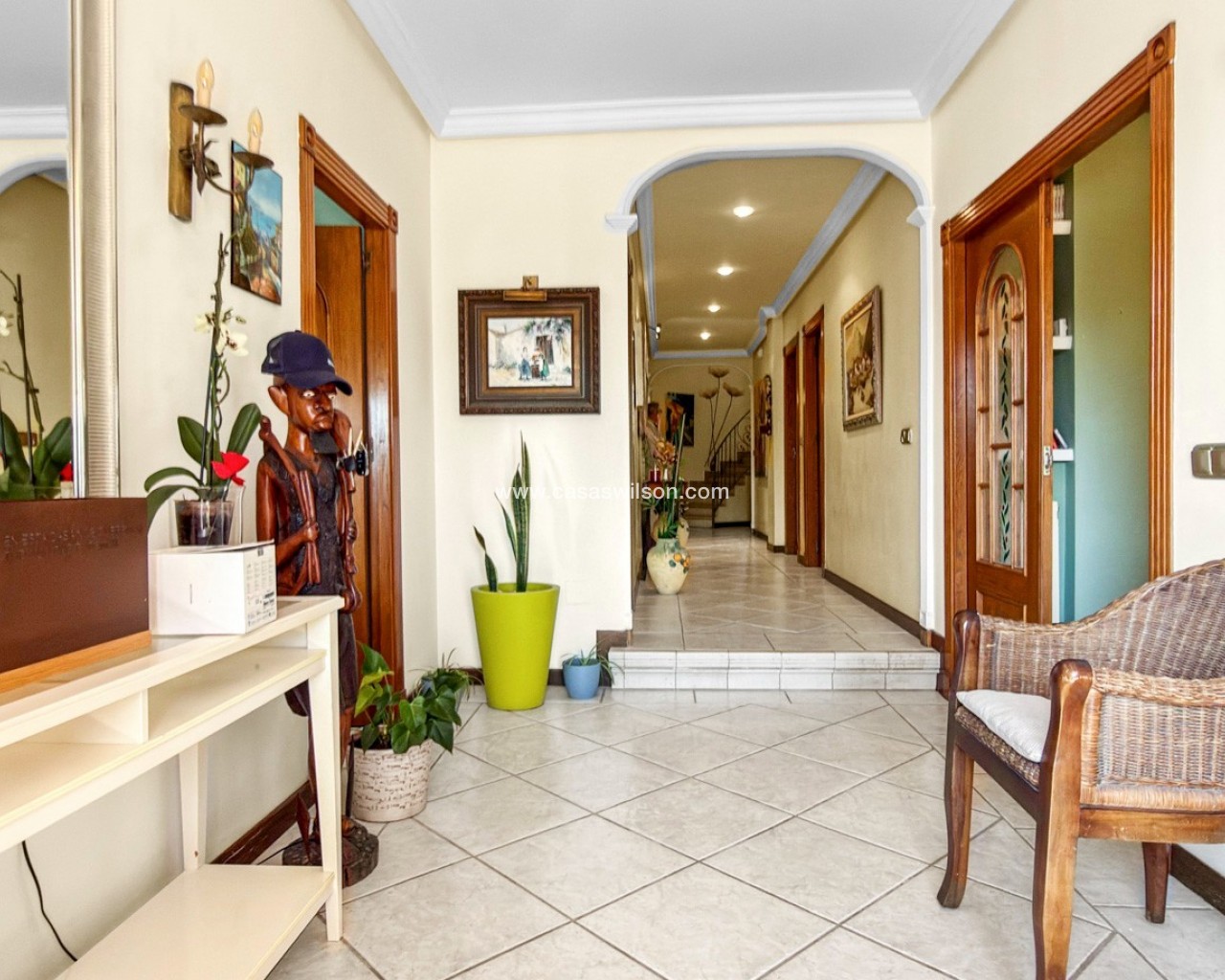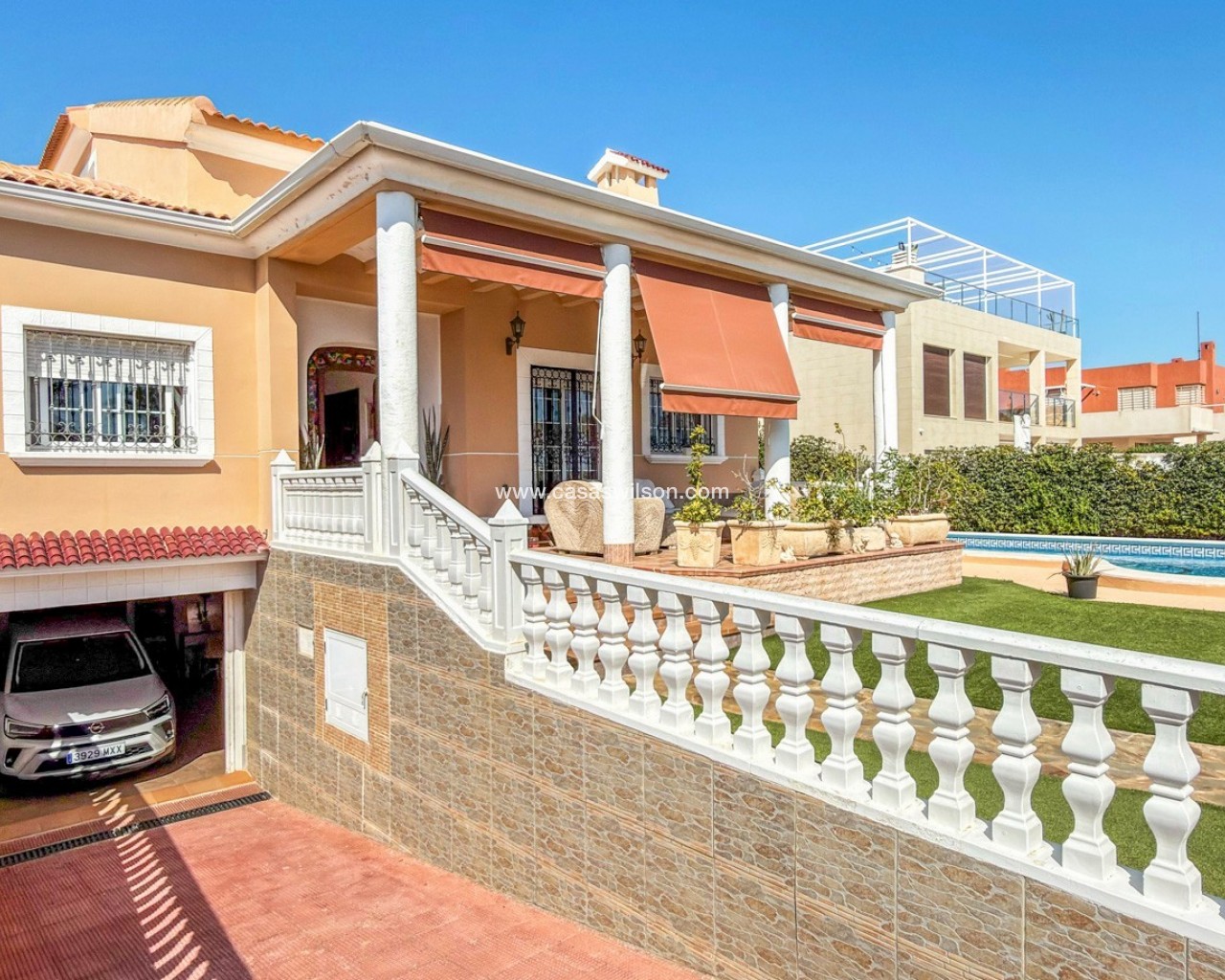 Ubicada en la prestigiosa urbanización Molino Blanco, esta espectacular villa de lujo ofrece espacio, privacidad y un estilo de vida mediterráneo elevado sobre una amplia parcela de 800 m². Con una superficie construida de 440 m², la vivienda se distribuye en dos plantas principales más un semisótano completamente acondicionado como vivienda independiente, ideal para invitados o familiares. La propiedad dispone de seis amplios dormitorios dobles y cinco baños completos, perfecta para familias numerosas o quienes disfrutan recibiendo visitas. Cada planta cuenta con luminosos salones-comedor, creando distintos espacios para relajarse y socializar. En el corazón de la vivienda encontramos una gran cocina independiente con acceso directo al jardín, ideal tanto para el día a día como para reuniones sociales. El exterior es uno de los grandes atractivos de la propiedad. Una impresionante piscina privada rodeada de un cuidado jardín ofrece un entorno tranquilo y exclusivo para disfrutar del sol mediterráneo. Además, cuenta con un acogedor porche y pérgola con barbacoa, perfecta para momentos inolvidables. La vivienda está equipada con calefacción central, aire acondicionado y sistema de alarma completo. Ubicada en un complejo residencial exclusivo, la comunidad dispone de mantenimiento continuo, incluyendo jardinería profesional durante todo el año.