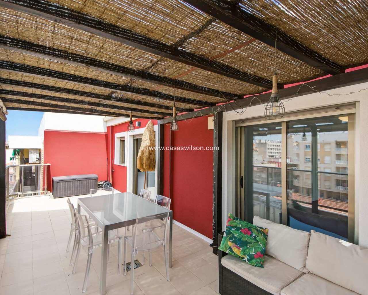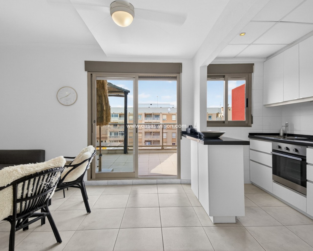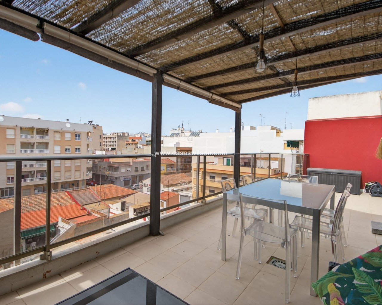 Nos complace presentar este exclusivo ático en el corazón de Guardamar del Segura. Este luminoso y elegante apartamento, con un diseño escandinavo, ofrece dos amplios dormitorios, dos baños modernos, un lavadero independiente y un gran trastero. El salón-comedor diáfano crea un ambiente acogedor y se integra a la perfección con una generosa terraza privada donde podrá disfrutar del sol de la tarde y del atardecer. Los residentes también tienen acceso a una terraza compartida en la azotea. Con una ubicación ideal a pocos pasos de la playa, la propiedad está rodeada de una excelente selección de restaurantes, tiendas locales y servicios cotidianos. Esta es la vivienda perfecta para quienes buscan un ático contemporáneo y bien mantenido en una ubicación privilegiada, con un fantástico sol durante todo el año. Contáctanos hoy para concertar una visita. ¡Bienvenidos a Guardamar del Segura!