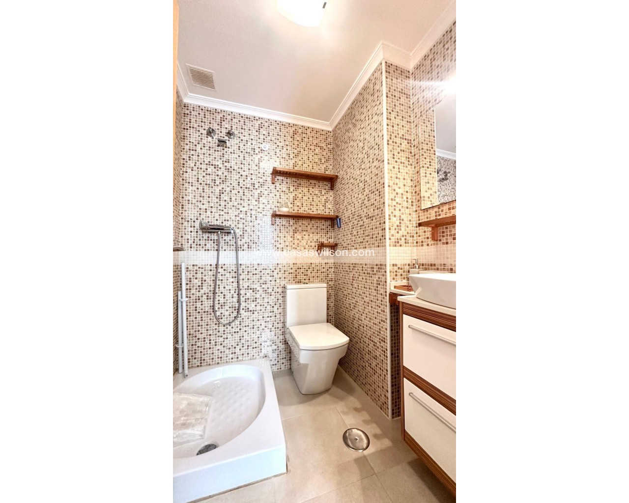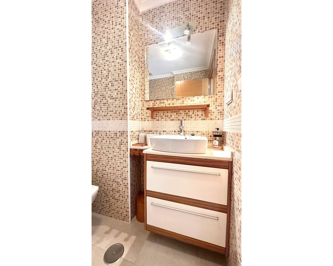 Ático con Solárium, Garaje y Terraza – A 800 metros de la playa en Torrevieja Te presentamos este acogedor y completo ático en Torrevieja, ubicado a tan solo 800 metros del mar, ideal tanto como vivienda habitual como para escapadas vacacionales. Su orientación este y sus espacios exteriores lo convierten en una propiedad muy luminosa y funcional. Distribución cómoda y funcional La vivienda cuenta con 60 m² construidos, distribuidos de forma eficiente, más una terraza de 12 m² orientada al este, perfecta para disfrutar del sol de la mañana y del clima mediterráneo. Además, se incluye un amplio solárium privado, ideal como zona chill-out, para barbacoas o simplemente para relajarse al aire libre. El ático se compone de: 2 habitaciones dobles, una de ellas con baño en suite y armarios empotrados, lo que añade funcionalidad y espacio de almacenaje. 2 baños completos, uno con bañera y otro en suite, ambos en perfecto estado. Cocina independiente, totalmente equipada con electrodomésticos, ideal para cocinar cómodamente y sin interferir en el resto del espacio. Salón-comedor acogedor y bien aprovechado, con acceso directo a la terraza. Terraza amplia con pérgola, perfecta para crear un espacio exterior cómodo y sombreado. Extras incluidos que marcan la diferencia Este ático incluye una plaza de garaje, lo que proporciona comodidad y seguridad para el vehículo, y un solárium privado, una de las características más buscadas por quienes valoran el espacio exterior y la privacidad. Ubicación estratégica Situado en una zona tranquila de Torrevieja, con todos los servicios esenciales a su alrededor: supermercados, transporte público, centros educativos, restaurantes y zonas verdes. Y lo mejor: a tan solo 800 metros de la playa, accesible fácilmente a pie. Una propiedad ideal para quienes buscan espacio exterior, comodidad y cercanía al mar, con todos los extras incluidos: garaje, solárium, terraza y dos baños. ¿Quieres más información o agendar una visita? Estamos a tu disposición.