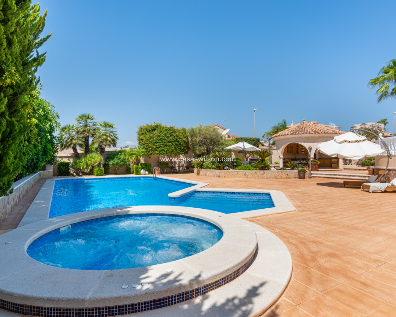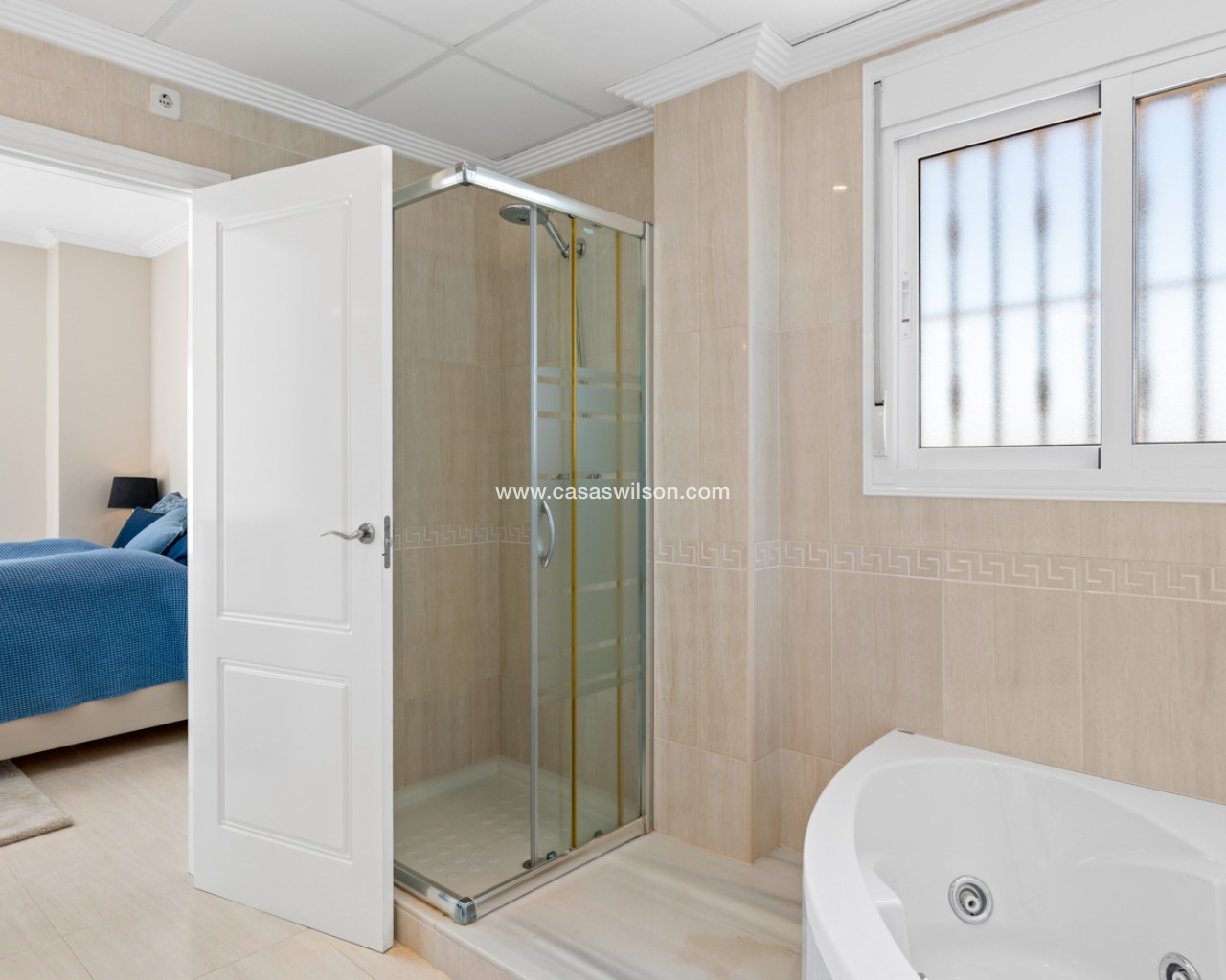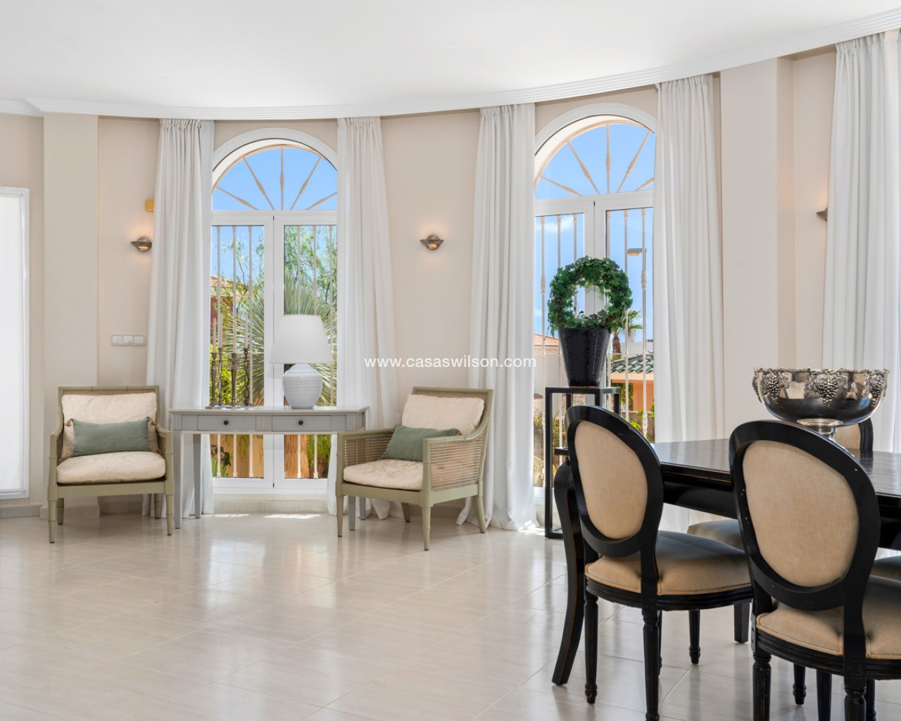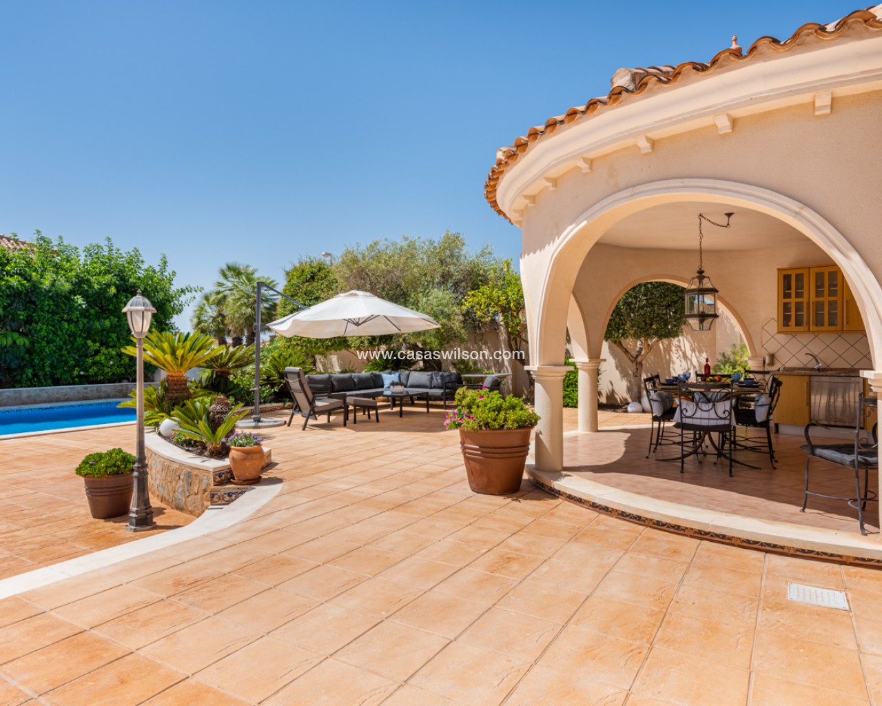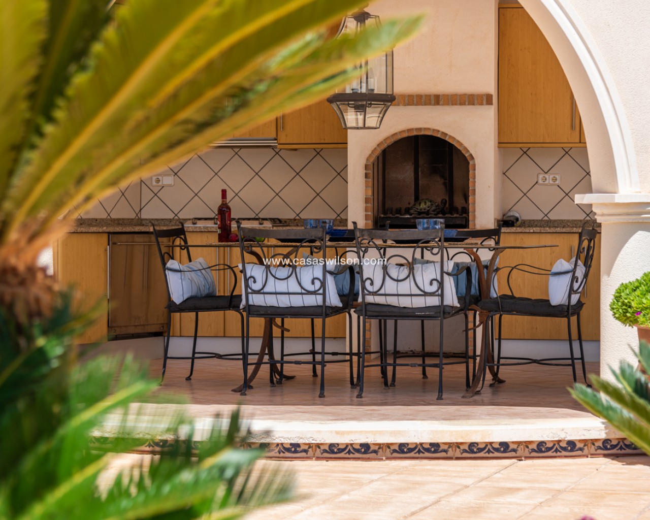 Villa de style méditerranéen avec 4 chambres et 5salles de bains, réparties sur deux niveaux. Au rez-de-chaussée, vous trouverez une cuisine, un salon avec une spacieuse salle à manger ouverte et un hall. Il a un accès direct à une grande terrasse et des jardins depuis la cuisine ou la porte d'entrée. Vous trouverez également une buanderie et deux chambres à coucher, une avec une salle de bain attenante et l'autre avec une salle de bain séparée. Au premier étage, vous trouverez deux chambres en suite, toutes deux avec placards et un balcon. Des deux balcons, vous pouvez accéder à un grand solarium avec des vues spectaculaires. La Villa dispose d'extras tels que le chauffage au sol dans toutes les salles de bains, un système anti-calcaire et une cheminée. Espace extérieur La villa est située sur un terrain de 1000 m2 avec une intimité totale. Dans le magnifique jardin, vous trouverez une immense piscine avec jacuzzi chauffé intégré à côté d'un grand jardin vertical pour garantir une intimité totale. À l'extérieur, vous trouverez également une salle de bain avec douche et une cuisine extérieure entièrement équipée. Il y a un porche pour garer deux voitures sur le terrain accessible par un portail électrique. Alentours La villa est située dans le quartier exclusif de Ciudad Quesada, sur un point culminant qui offre des vues impressionnantes. Vous trouverez des bars, des restaurants et des épiceries très proches. Vous trouverez également le célèbre parcours de golf La Marquesa et les belles plages de Guardamar à seulement quelques minutes en voiture.