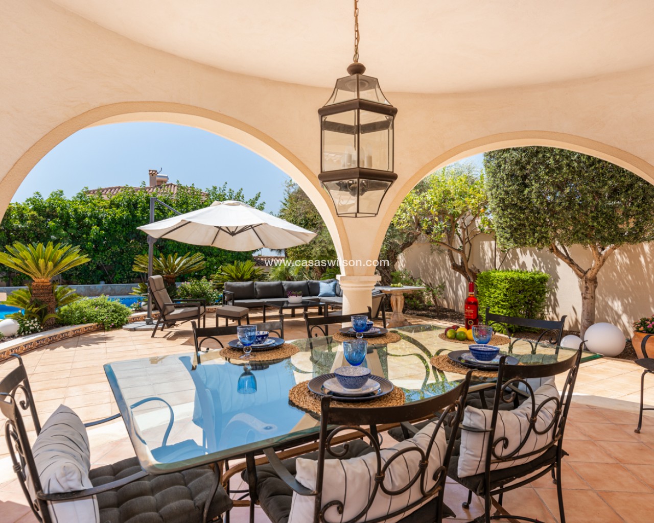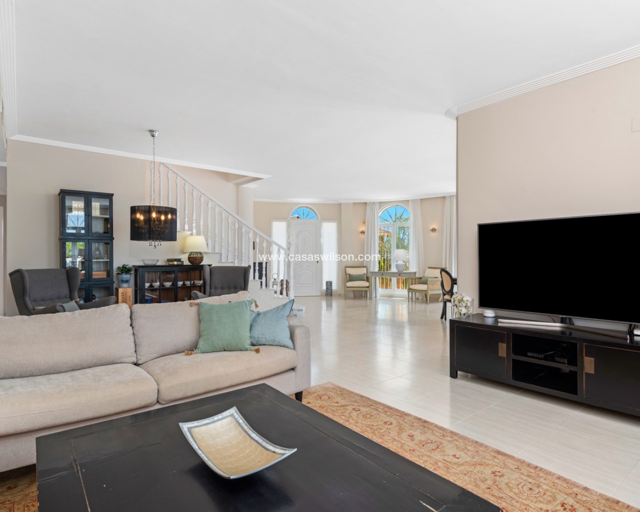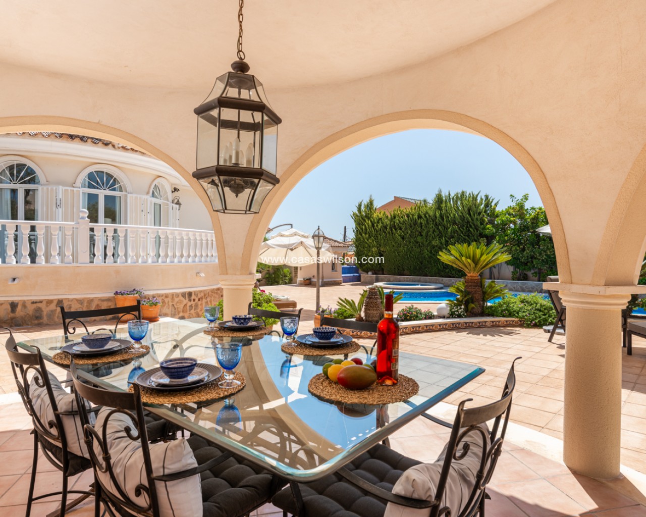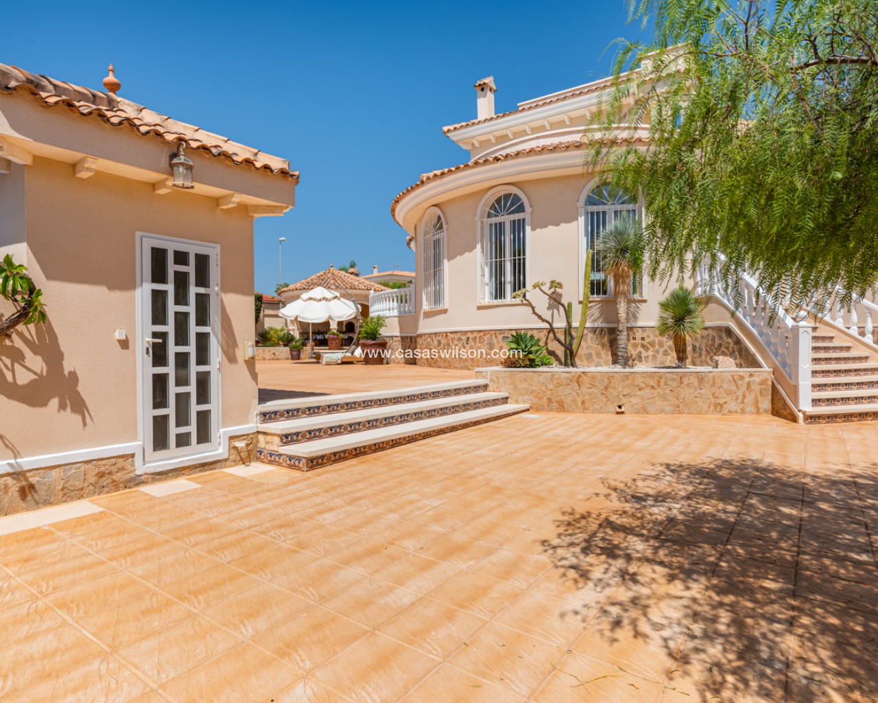 Villa de style méditerranéen avec 4 chambres et 5salles de bains, réparties sur deux niveaux. Au rez-de-chaussée, vous trouverez une cuisine, un salon avec une spacieuse salle à manger ouverte et un hall. Il a un accès direct à une grande terrasse et des jardins depuis la cuisine ou la porte d'entrée. Vous trouverez également une buanderie et deux chambres à coucher, une avec une salle de bain attenante et l'autre avec une salle de bain séparée. Au premier étage, vous trouverez deux chambres en suite, toutes deux avec placards et un balcon. Des deux balcons, vous pouvez accéder à un grand solarium avec des vues spectaculaires. La Villa dispose d'extras tels que le chauffage au sol dans toutes les salles de bains, un système anti-calcaire et une cheminée. Espace extérieur La villa est située sur un terrain de 1000 m2 avec une intimité totale. Dans le magnifique jardin, vous trouverez une immense piscine avec jacuzzi chauffé intégré à côté d'un grand jardin vertical pour garantir une intimité totale. À l'extérieur, vous trouverez également une salle de bain avec douche et une cuisine extérieure entièrement équipée. Il y a un porche pour garer deux voitures sur le terrain accessible par un portail électrique. Alentours La villa est située dans le quartier exclusif de Ciudad Quesada, sur un point culminant qui offre des vues impressionnantes. Vous trouverez des bars, des restaurants et des épiceries très proches. Vous trouverez également le célèbre parcours de golf La Marquesa et les belles plages de Guardamar à seulement quelques minutes en voiture.