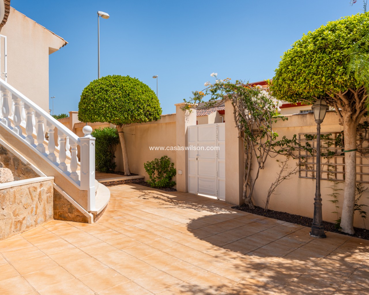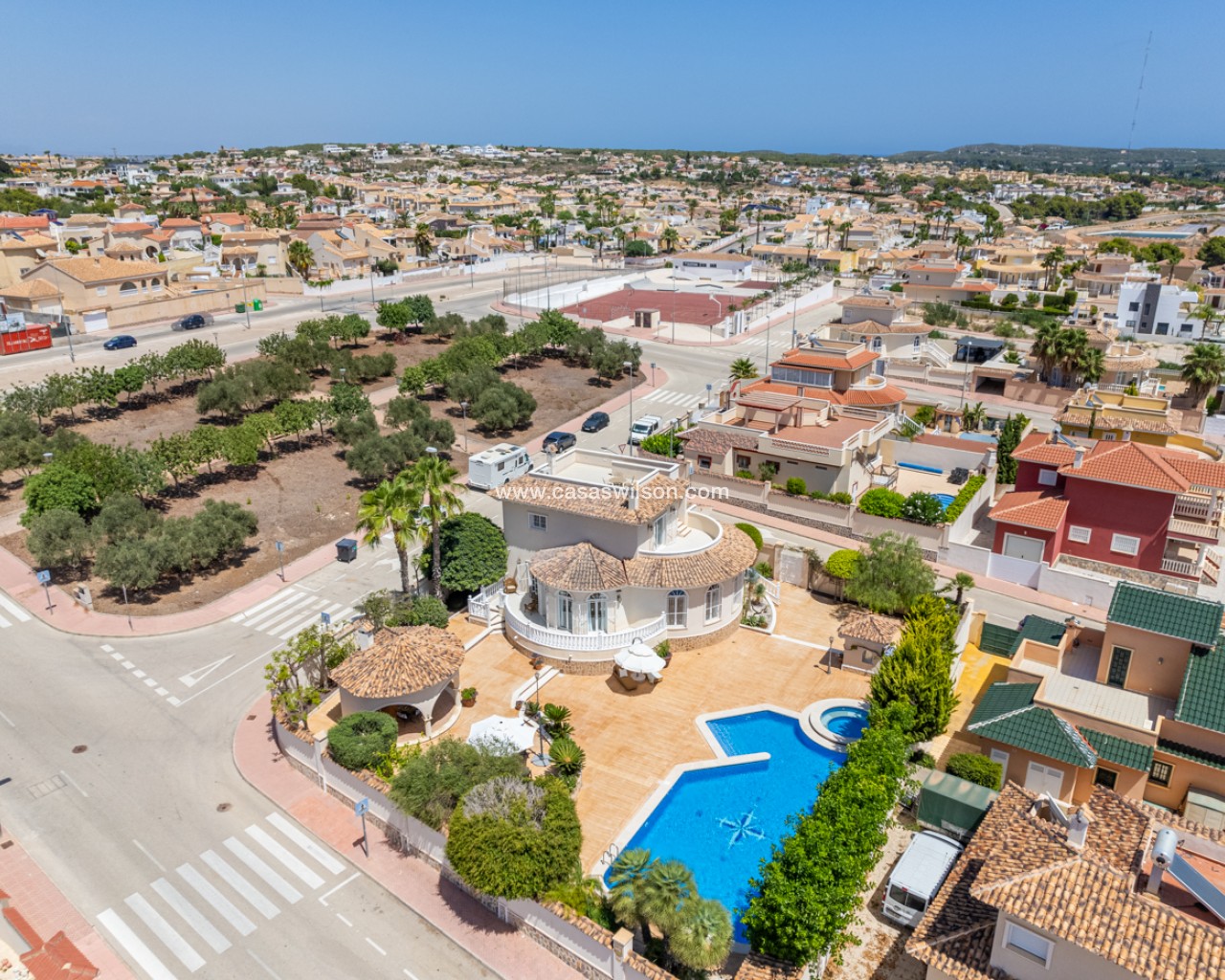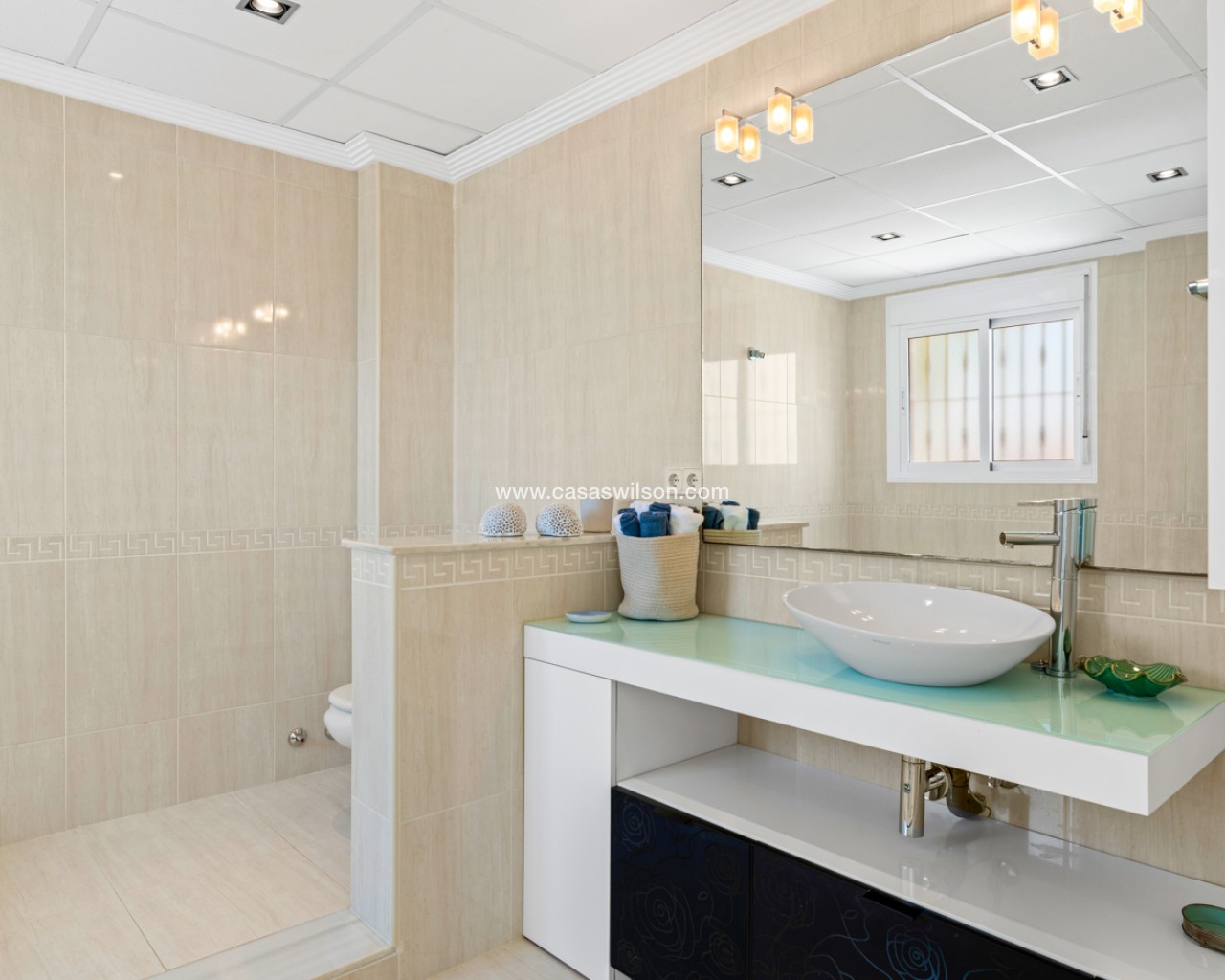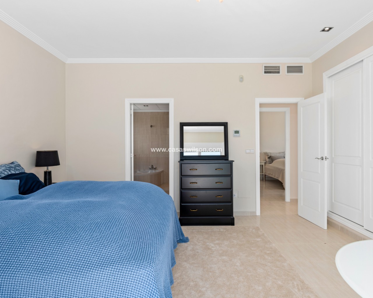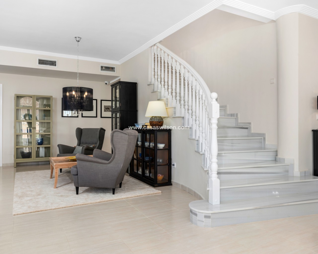 Villa de style méditerranéen avec 4 chambres et 5salles de bains, réparties sur deux niveaux. Au rez-de-chaussée, vous trouverez une cuisine, un salon avec une spacieuse salle à manger ouverte et un hall. Il a un accès direct à une grande terrasse et des jardins depuis la cuisine ou la porte d'entrée. Vous trouverez également une buanderie et deux chambres à coucher, une avec une salle de bain attenante et l'autre avec une salle de bain séparée. Au premier étage, vous trouverez deux chambres en suite, toutes deux avec placards et un balcon. Des deux balcons, vous pouvez accéder à un grand solarium avec des vues spectaculaires. La Villa dispose d'extras tels que le chauffage au sol dans toutes les salles de bains, un système anti-calcaire et une cheminée. Espace extérieur La villa est située sur un terrain de 1000 m2 avec une intimité totale. Dans le magnifique jardin, vous trouverez une immense piscine avec jacuzzi chauffé intégré à côté d'un grand jardin vertical pour garantir une intimité totale. À l'extérieur, vous trouverez également une salle de bain avec douche et une cuisine extérieure entièrement équipée. Il y a un porche pour garer deux voitures sur le terrain accessible par un portail électrique. Alentours La villa est située dans le quartier exclusif de Ciudad Quesada, sur un point culminant qui offre des vues impressionnantes. Vous trouverez des bars, des restaurants et des épiceries très proches. Vous trouverez également le célèbre parcours de golf La Marquesa et les belles plages de Guardamar à seulement quelques minutes en voiture.
