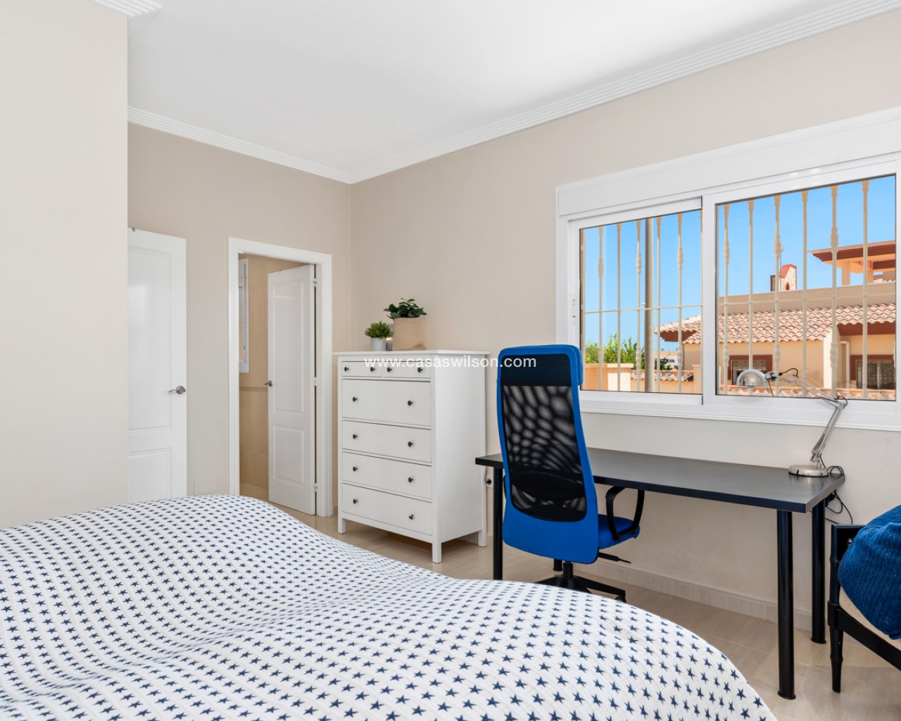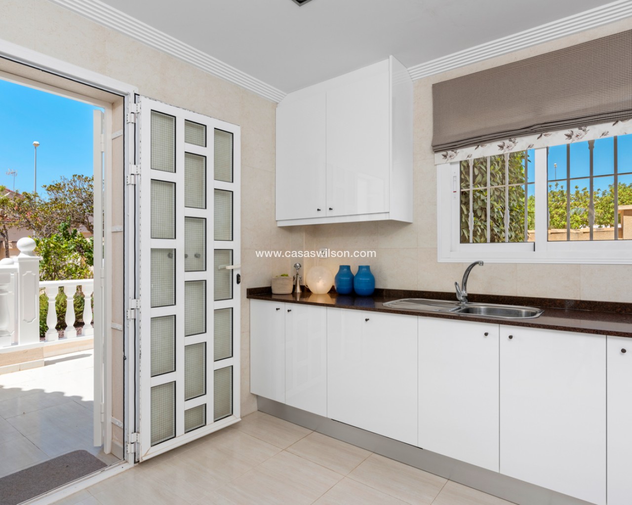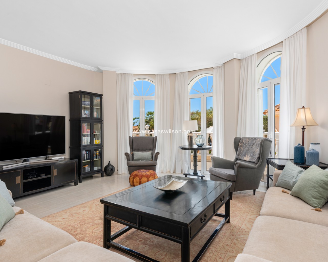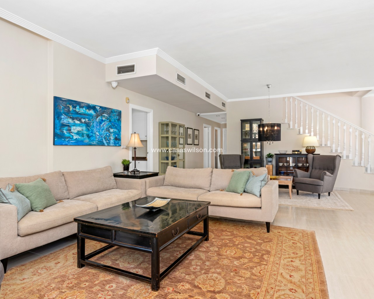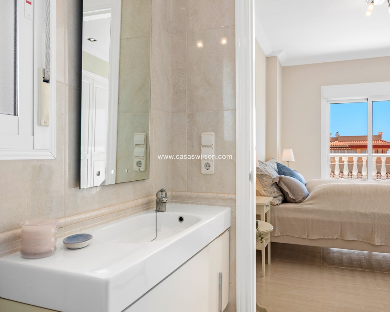 Villa de style méditerranéen avec 4 chambres et 5salles de bains, réparties sur deux niveaux. Au rez-de-chaussée, vous trouverez une cuisine, un salon avec une spacieuse salle à manger ouverte et un hall. Il a un accès direct à une grande terrasse et des jardins depuis la cuisine ou la porte d'entrée. Vous trouverez également une buanderie et deux chambres à coucher, une avec une salle de bain attenante et l'autre avec une salle de bain séparée. Au premier étage, vous trouverez deux chambres en suite, toutes deux avec placards et un balcon. Des deux balcons, vous pouvez accéder à un grand solarium avec des vues spectaculaires. La Villa dispose d'extras tels que le chauffage au sol dans toutes les salles de bains, un système anti-calcaire et une cheminée. Espace extérieur La villa est située sur un terrain de 1000 m2 avec une intimité totale. Dans le magnifique jardin, vous trouverez une immense piscine avec jacuzzi chauffé intégré à côté d'un grand jardin vertical pour garantir une intimité totale. À l'extérieur, vous trouverez également une salle de bain avec douche et une cuisine extérieure entièrement équipée. Il y a un porche pour garer deux voitures sur le terrain accessible par un portail électrique. Alentours La villa est située dans le quartier exclusif de Ciudad Quesada, sur un point culminant qui offre des vues impressionnantes. Vous trouverez des bars, des restaurants et des épiceries très proches. Vous trouverez également le célèbre parcours de golf La Marquesa et les belles plages de Guardamar à seulement quelques minutes en voiture.