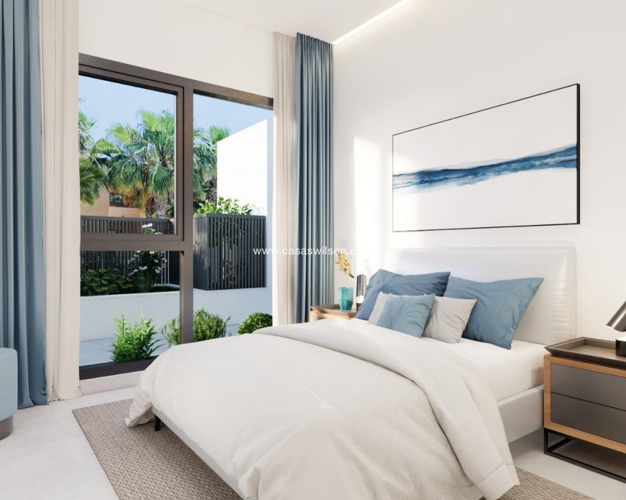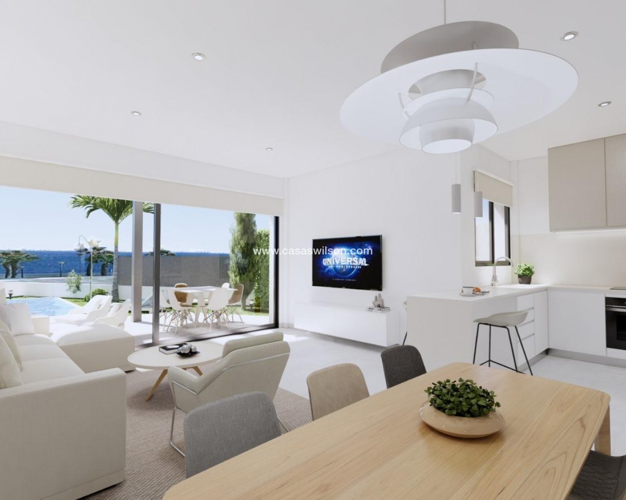 Villas de luxe en construction neuve au bord de l'eau à Los Alcázares Découvrez le summum de la vie méditerranéenne avec ce projet résidentiel exclusif, comprenant neuf villas contemporaines situées directement sur le front de mer dans la belle ville côtière de Los Alcázares, en Murcie. Situées dans le quartier recherché de Nueva Ribera, ces villas sont conçues pour le luxe, l'intimité et la commodité, avec un accès proche aux terrains de golf, aux centres commerciaux et aux centres de transport. Chaque villa offre des finitions haut de gamme, une vue imprenable sur la mer et une piscine privée, ce qui en fait le choix idéal pour ceux qui recherchent une retraite côtière moderne. Situation privilégiée à Los Alcázares Niché à Los Alcázares, une charmante ville de la Costa Cálida espagnole, ce projet résidentiel jouit d'une situation enviable avec un accès direct à la promenade du front de mer. Ce quartier paisible allie la tranquillité de la vie en bord de mer à un accès facile aux commodités. Le centre-ville animé de Los Alcázares se trouve à seulement 2 km, tandis que l'aéroport international de Murcie n'est qu'à 35 km, ce qui facilite les déplacements. Le célèbre Roda Golf Club se trouve à 4 km, offrant des options de loisirs à proximité de la maison, et l'autoroute AP-7 permet d'accéder rapidement aux villes et attractions voisines. Villas exclusives dotées d'équipements haut de gamme Le projet comprend neuf villas au total : huit jumelées et une indépendante, chacune occupant des parcelles de plus de 300 mètres carrés. Ces propriétés spacieuses ont été conçues dans un souci d'élégance et de confort : Une piscine privée et un solarium : Chaque villa dispose d'une piscine privée d'eau salée et d'un solarium sur le toit équipé d'un jacuzzi, d'un éclairage LED ambiant et d'une pré-installation pour une cuisine extérieure - idéal pour se divertir tout en profitant de la vue sur la Mar Menor. Cuisine moderne et entièrement équipée : La cuisine comprend des appareils intégrés de Bosch, notamment un four, un micro-ondes, une table de cuisson à induction et une hotte aspirante. Le design épuré comprend une péninsule et des plans de travail en Silestone ou en porcelaine. Climatisation sophistiquée : Profitez d'un confort tout au long de l'année grâce à un système de climatisation par conduits à chaque étage, utilisant des unités performantes de Mitsubishi ou Daikin. Salles de bains élégantes : les salles de bains haut de gamme comprennent des meubles-lavabos suspendus, des receveurs de douche en résine et des écrans de douche intégrés. Conception économe en énergie : Chaque villa est dotée d'une isolation avancée, de fenêtres acoustiques à double vitrage Guardian Sun et d'un système de chauffage de l'eau Aerothermal pour une efficacité énergétique optimale. Caractéristiques de la maison intelligente : Les volets électriques, l'éclairage extérieur LED et la pré-installation d'une station de recharge pour véhicule électrique ajoutent à la commodité moderne. Communauté privée et sécurisée Situées au sein d'une communauté privée et clôturée, avec une sécurité 24h/24, ces villas offrent un accès direct à la promenade de la plage depuis chaque jardin, garantissant à la fois intimité et connectivité. Découvrez la vie côtière à Los Alcázares - programmez une visite dès aujourd'hui ! Profitez du luxe de la vie côtière à Los Alcázares. Avec la proximité du Roda Golf et des centres commerciaux à moins de 5 km, ces villas offrent un style de vie inégalé. Contactez-nous dès aujourd'hui pour planifier une visite et obtenir la propriété de vos rêves au bord de l'eau.