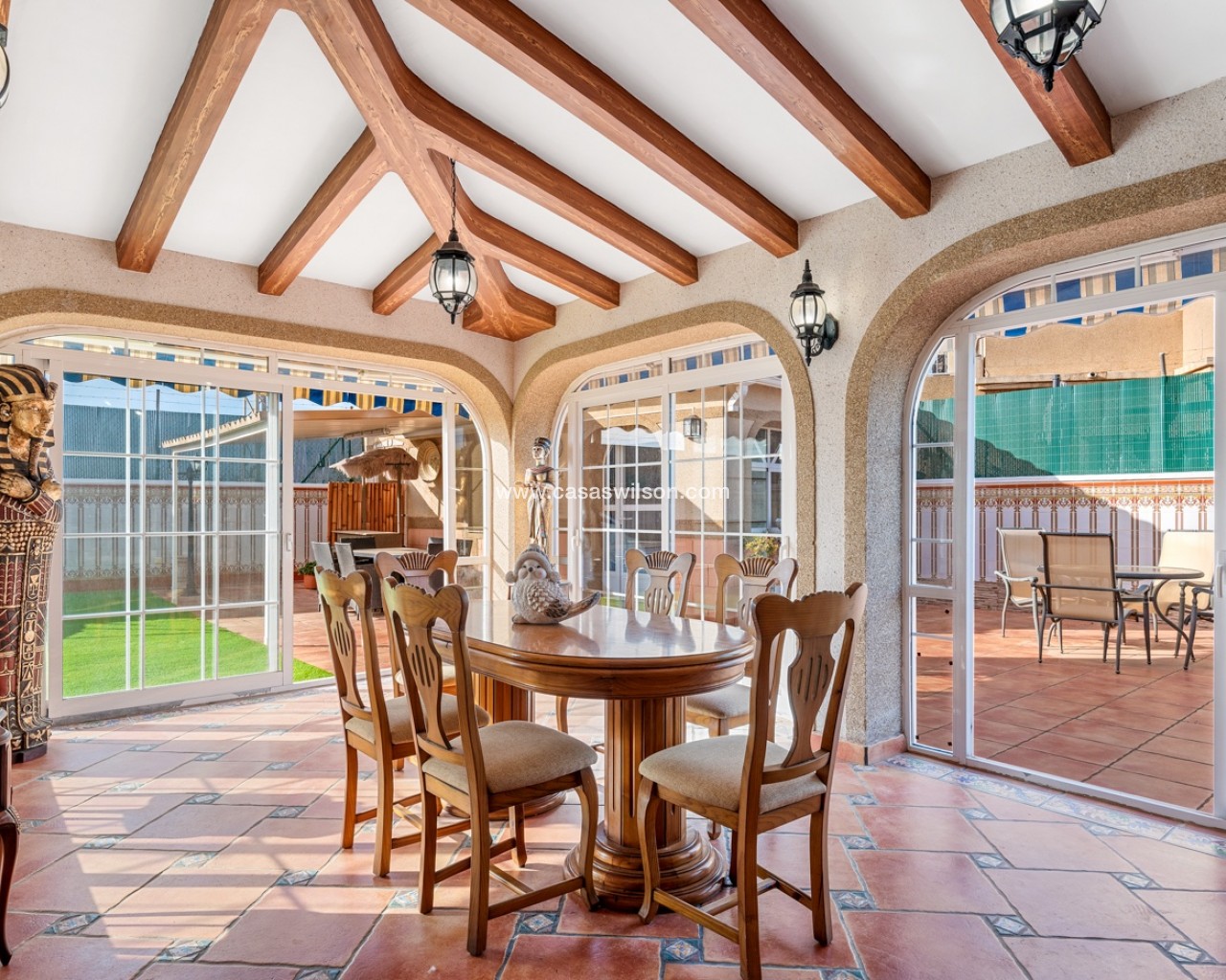 Découvrez cette villa spectaculaire située dans le quartier prestigieux et paisible d'El Chaparral, à quelques mètres du nouveau parc La Siesta. Une propriété unique qui allie élégance, fonctionnalité et environnement naturel, idéale pour ceux qui recherchent la qualité de vie dans un cadre privilégié. Avec un terrain de 800 m², cette maison se distingue par son impressionnant espace extérieur avec une piscine privée, un jardin avec des orangers et des citronniers, une cuisine extérieure avec cheminée et plaque vitrocéramique, une salle de bain extérieure et deux grands garages avec un débarras. A l'intérieur, vous profiterez de quatre chambres, dont une suite avec dressing et salle de bain privative, une chambre avec accès à une charmante mezzanine, et des placards intégrés dans chaque pièce. La maison dispose également d'un home cinéma insonorisé, d'un bar, d'une cave à vin, de deux salles de bain complètes, d'un bureau séparé et d'une climatisation complète (radiateurs, climatisation et ventilateurs de plafond). Une maison conçue pour le confort, l'intimité et le plaisir. Equipé d'un interphone sur les deux étages et distribué pour maximiser chaque espace. Emplacement idéal, à proximité des parcs, des zones de loisirs et de tous les services essentiels. Une opportunité unique de vivre avec style et tranquillité. Contactez-nous pour plus d'informations et pour planifier votre visite.