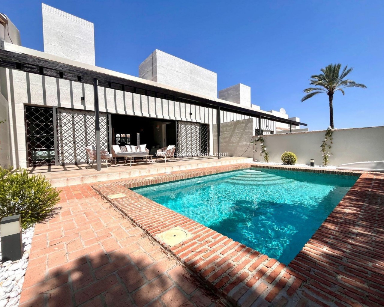 Elégantes maisons de ville de plain-pied avec piscine privée à Peraleja Golf Resort - Costa Cálida Maisons de ville de style méditerranéen dans une communauté de golf fermée Découvrez 11 maisons de ville exclusives de plain-pied situées dans le prestigieux Peraleja Golf Resort, dans la région de Murcie, dans le sud de l'Espagne. Ces maisons méditerranéennes modernes sont situées sur des parcelles spacieuses d'environ 260 m², chacune disposant d'une piscine privée, d'un jardin paysager et d'un parking sur place. Conçues avec des plafonds inclinés et des matériaux naturels comme le bois et la pierre, ces maisons s'intègrent parfaitement au paysage environnant tout en offrant des intérieurs élégants et intemporels. Vivre confortablement avec des finitions haut de gamme Chaque maison comprend : 2 chambres et 2 salles de bains Cuisine ouverte entièrement équipée Salon-salle à manger lumineux avec cheminée à bois Climatisation centralisée et chauffage par radiateurs à gaz Porte d'entrée renforcée et portail d'accès pour véhicules motorisés Piscine privée (3,5x5,5 m) avec douche extérieure Points d'eau et d'éclairage extérieurs Jardin entièrement paysagé prêt à être utilisé Ces propriétés ont été soigneusement conçues par un architecte de renom, combinant des lignes élégantes avec des textures naturelles, créant un environnement unique et harmonieux au sein d'une communauté fermée et sécurisée. La vie à Peraleja Golf Resort - Nature et sécurité Les maisons sont situées à l'intérieur de Peraleja Golf Resort, qui dispose d'un portail de sécurité ouvert 24 heures sur 24, d'un piano-bar et d'un clubhouse avec un restaurant gastronomique. Le complexe est entouré de zones naturelles protégées où des circuits de marche, de jogging et de cyclisme sont aménagés pour les résidents. Le terrain de golf de 18 trous, conçu à l'origine par le légendaire Severiano Ballesteros, est actuellement en cours de rénovation et sa réouverture est prévue pour la fin de l'année 2025. Certains logements et le club social bénéficient d'une vue lointaine sur la mer. Situation pratique à proximité des plages et des villes Ce complexe paisible offre un excellent accès aux principaux sites : Villes de Sucina et Avileses - 3-5 km Plages de Mar Menor - 20 km (20 min en voiture) Ville de Murcie - 25 km (20 min en voiture) Aéroport de Murcie (RMU) - 25 km (15 min en voiture) Aéroport d'Alicante (ALC) - 80 km (45 min en voiture) Centre commercial La Zenia Boulevard - 35 km Profitez du charme de la Costa Cálida Situé près de la ville espagnole traditionnelle de Sucina, les résidents peuvent profiter des boutiques locales, des restaurants et du charme authentique, tout en étant proche de la côte et de la vie urbaine animée. Cette région est devenue de plus en plus populaire auprès des acheteurs internationaux pour sa qualité de vie, ses bonnes infrastructures, son climat magnifique tout au long de l'année et l'accès aux sites naturels et à la mer. Contactez-nous dès aujourd'hui pour réserver votre villa de rêve à Peraleja Golf et commencer à profiter de la vie sur la Costa Cálida !