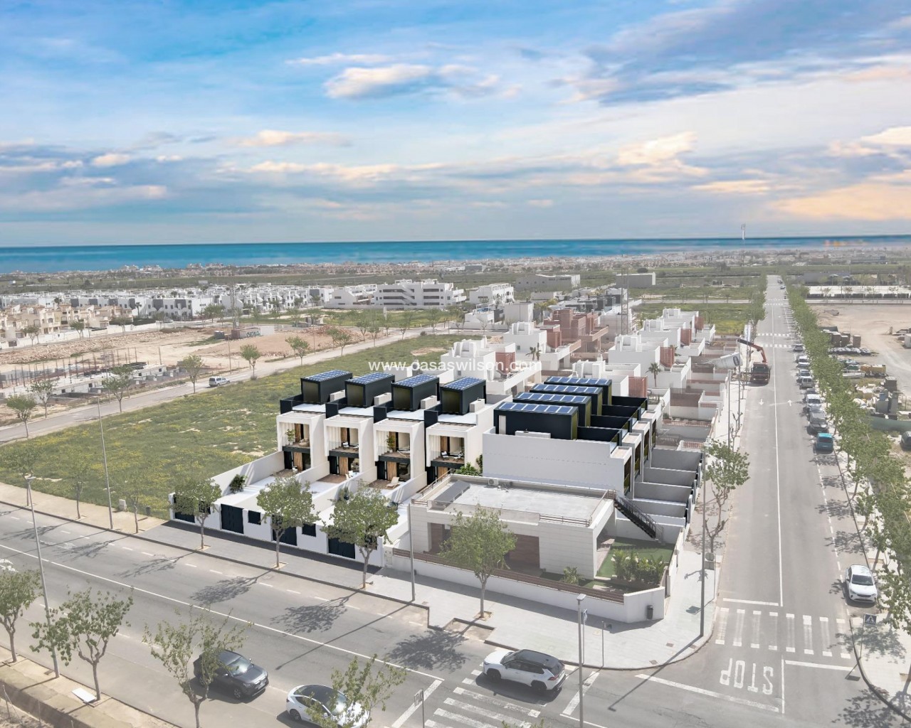 Maisons mitoyennes durables neuves à Pilar de la Horadada, Costa Blanca Maisons modernes avec technologie et efficacité énergétique Découvrez cette promotion exclusive de maisons neuves situées à Pilar de la Horadada, l'une des zones les plus attrayantes de la Costa Blanca Sud. Ce projet de maisons mitoyennes allie design contemporain, durabilité et technologie pour offrir un style de vie confortable, efficace et connecté. Le lotissement se compose de 8 villas mitoyennes de 3 chambres et 3 salles de bains, toutes avec piscine privée, solarium avec cuisine d'été et parking sur le terrain. De plus, l'une des maisons est livrée entièrement meublée et prête à emménager, avec 2 chambres et 2 salles de bains. Espaces intérieurs élégants et fonctionnels Chaque maison a été conçue avec le souci du détail : Cuisine entièrement équipée avec des appareils électroménagers Siemens ou similaires Salles de bains avec lavabos sur plan, robinetterie mitigeur et parois en verre de sécurité Pré-installation de la climatisation par conduits Système d'aérothermie pour l'eau chaude sanitaire Éclairage LED intérieur et extérieur, y compris bandes décoratives dans la cuisine, le salon et les salles de bains Les logements sont également équipés d'un système domotique pour le contrôle des volets, de l'éclairage extérieur, de la climatisation et de la piscine, ainsi que d'une installation photovoltaïque avec 6 panneaux solaires pour l'autoconsommation. Extérieurs privés et solarium avec cuisine d'été Profitez d'un vaste espace extérieur avec : Piscine privée avec douche et spots LED Jardin avec spots intégrés Solarium avec cuisine extérieure en aluminium, plan de travail et évier Tout est pensé pour que vous puissiez profiter du climat méditerranéen tout au long de l'année. Pilar de la Horadada : qualité de vie à quelques minutes de la mer Cette commune offre une excellente infrastructure, une vie locale animée et des plages Pavillon Bleu à seulement 2 km. Elle dispose également de pistes cyclables, de sentiers de randonnée et de nombreuses possibilités sportives. Distances clés : Plage de Torre de la Horadada : 2 km Camp de golf Lo Romero : 5 km Port de plaisance Torre de la Horadada : 3 km Centre commercial Zenia Boulevard : 15 km Aéroport de Murcie (Corvera) : 40 km Aéroport d'Alicante : 55 km Demandez des informations et planifiez votre visite C'est l'occasion d'acquérir une maison moderne et économe en énergie, proche de la mer, dans l'une des zones les plus prisées de la Costa Blanca. Contactez-nous dès aujourd'hui pour obtenir plus d'informations ou pour planifier une visite personnalisée.