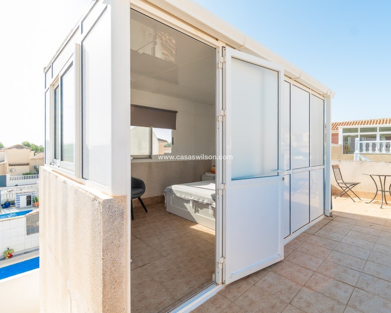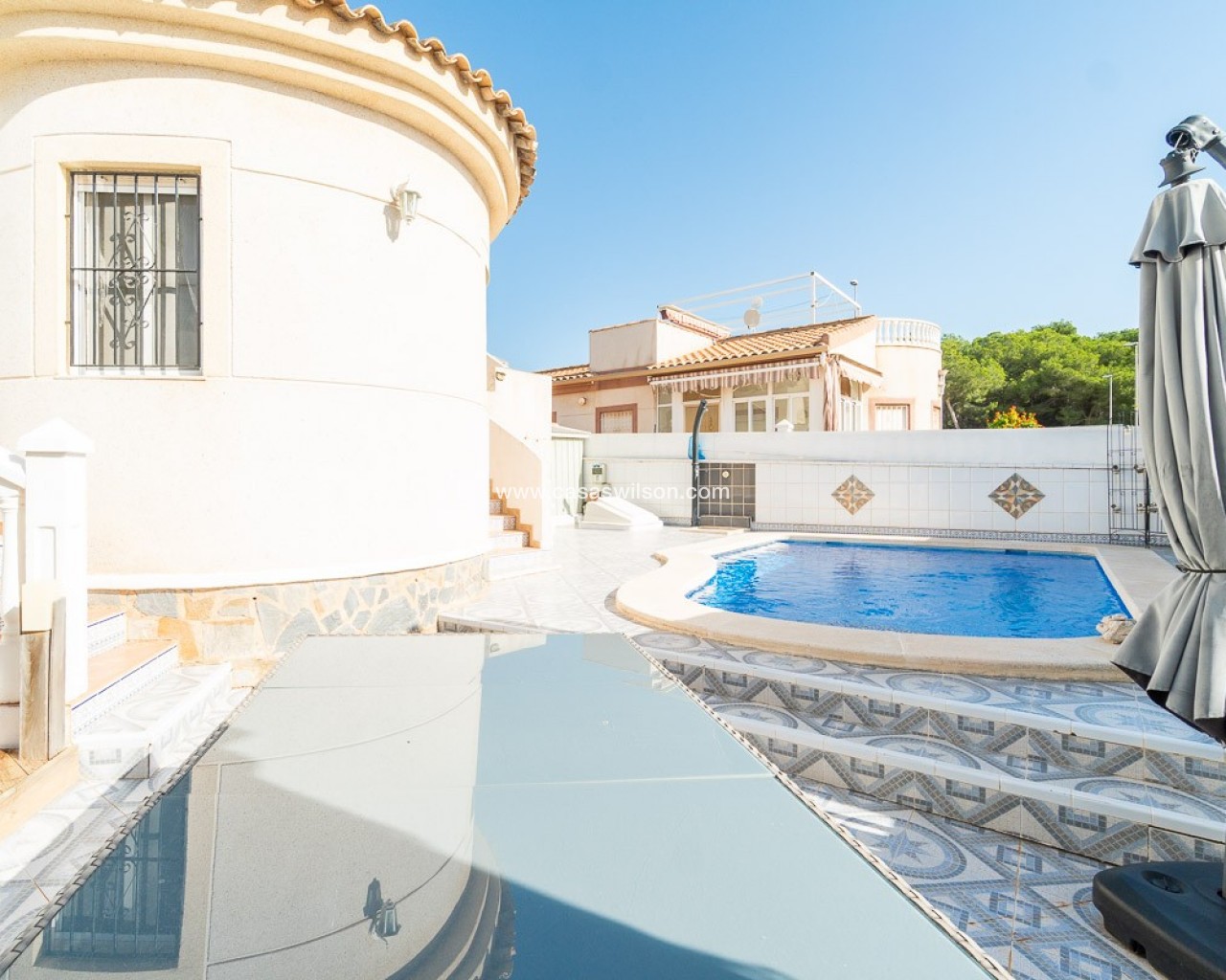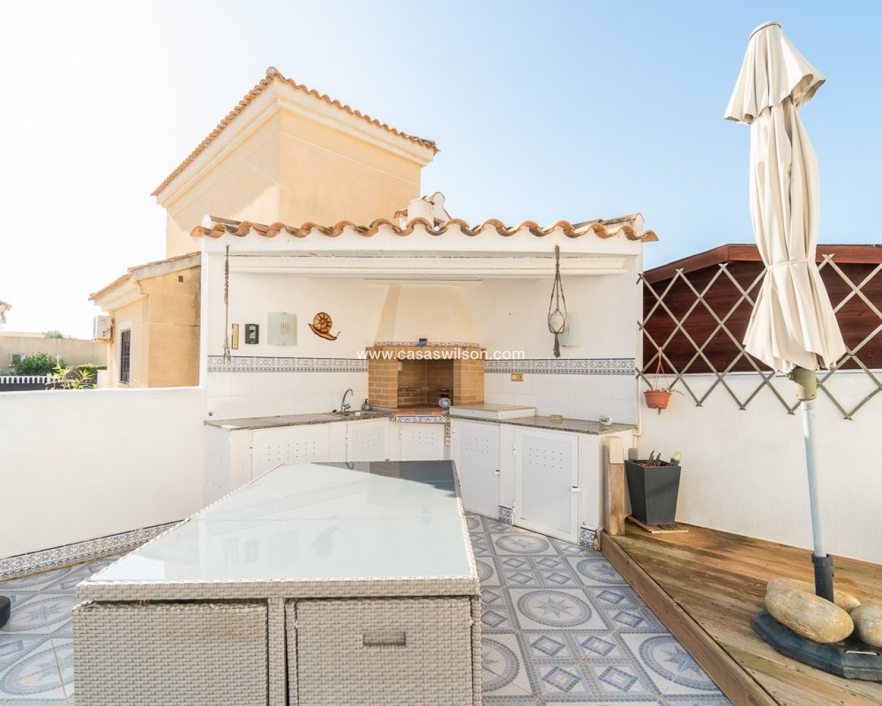OPPORTUNITE A SAISIR ! A Pinar de Campoverde - dans un quartier calme, proche des commerces et services - dans un cadre verdoyant, à 20 minutes des plages. - à 10 minutes de la petite ville de Pilar de la Horada, connue pour son charme et son folklore typiquement espagnols - à 3km du splendide golf du Romero DESCRIPTION - Véranda pour de profiter de la luminosité hiver comme été - Living - Cuisine équipée - 3 chambres - 1 salle de bain - Sur le solarium, une 4ème chambre a été aménagée - Cuisine extérieure - Buanderie - Espace pour garer son véhicule en site propre - Terrain de 250m2 joliment fleuri - Piscine récemment rénovée - WC supplémentaire à l'extérieur
