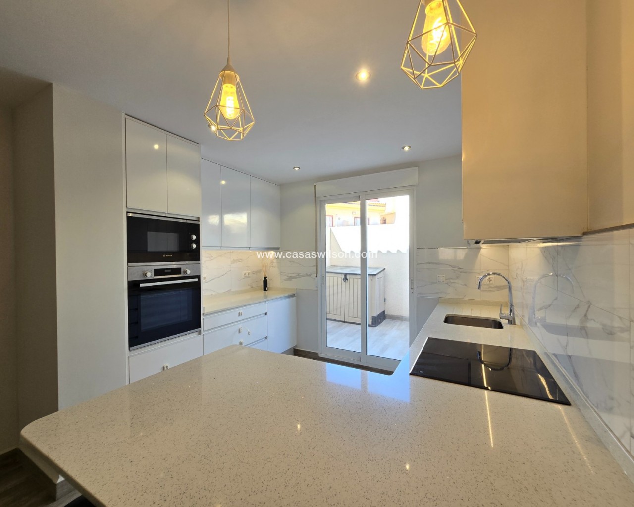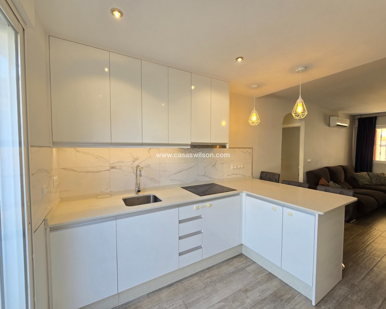 Découvrez ce magnifique appartement de plain-pied rénové au cœur de La Zenia, à seulement 1 km de la plage et à 200 mètres du célèbre centre commercial La Zenia Boulevard. Profitez d'un confort, d'un ensoleillement et d'une commodité ultimes dans cette propriété attrayante, idéale comme résidence principale, maison de vacances ou investissement. Cet appartement offre un agencement ouvert et aéré avec un look moderne. La cuisine ouverte s'intègre parfaitement à l'espace de vie, créant une atmosphère chaleureuse et spacieuse. La terrasse orientée sud-est est parfaite pour profiter du soleil espagnol toute l'année. Situé dans un quartier calme mais central de La Zenia, avec toutes les commodités à distance de marche : supermarchés, restaurants, bars, magasins et, bien sûr, la plage. Grâce à son emplacement exceptionnel, c'est une opportunité unique pour ceux qui recherchent le soleil, la mer et la commodité sur la Costa Blanca. Prêt à emménager ? Contactez-nous dès aujourd'hui pour une visite ! Suma : 101 euros/an Frais de communauté : 370 euros/an