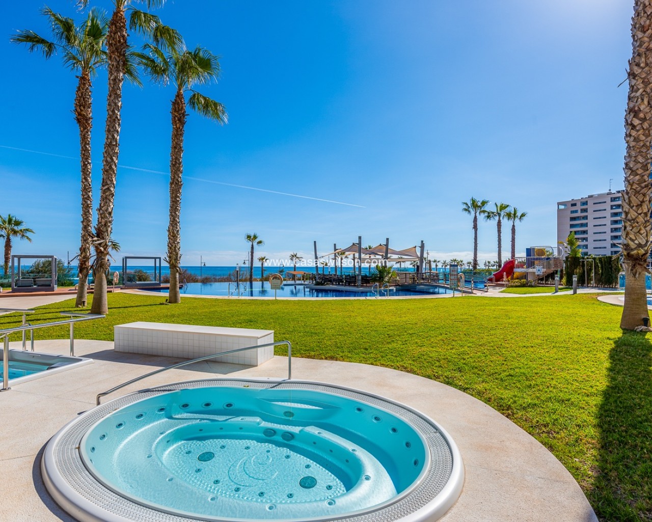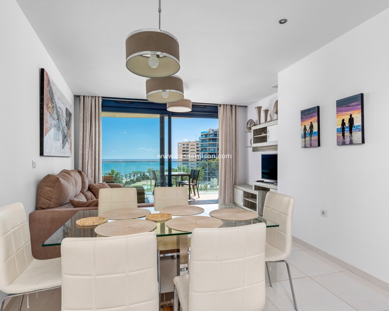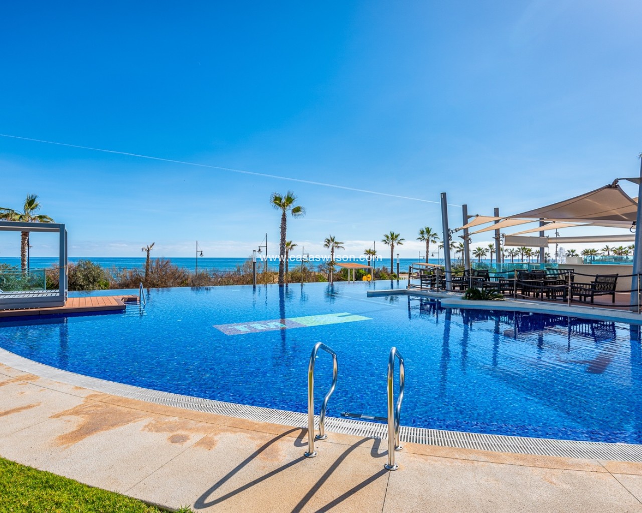 Bienvenue dans cet appartement exclusif de deux chambres et deux salles de bain situé dans le prestigieux complexe résidentiel Sea Senses, en toute première ligne de côte, offrant une vue imprenable sur la Costa Blanca. Construit dans un style moderne et avec une qualité exceptionnelle, ce logement allie luxe, confort et un style de vie unique en bord de mer. Dès l’entrée, vous serez accueilli par un salon-salle à manger lumineux et spacieux en espace ouvert, où de larges baies vitrées coulissantes s’ouvrent sur une grande terrasse avec vue panoramique sur la mer — l’endroit idéal pour savourer le café du matin, dîner en plein air ou admirer des couchers de soleil méditerranéens inoubliables. La cuisine est entièrement équipée avec des appareils modernes et s’intègre parfaitement à l’espace de vie, assurant praticité au quotidien comme lors de réceptions. Les deux chambres sont généreusement dimensionnées, dont une suite parentale avec sa propre salle de bain et un accès direct à la terrasse, offrant confort et intimité à la famille ou aux invités. Vivre à Sea Senses, c’est profiter chaque jour d’une véritable expérience de style resort. Les résidents ont accès à de multiples piscines — y compris des piscines à débordement donnant sur la mer — ainsi qu’à des jacuzzis, saunas, salle de sport et espaces privés de détente. Pour les familles, des aires de jeux sécurisées sont prévues pour les enfants. Un parking souterrain sécurisé et un débarras privé ajoutent à la praticité et à la valeur de cette propriété exceptionnelle. Avec son emplacement imbattable en première ligne de plage, ses vues spectaculaires sur la mer et ses équipements de standing, cet appartement offre une occasion rare de posséder un véritable coin de paradis sur la Costa Blanca.