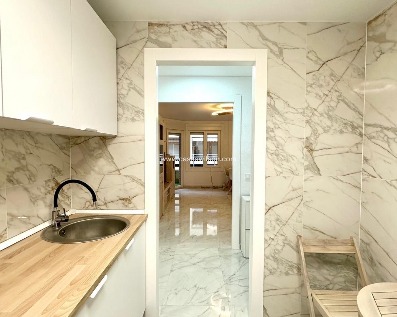 Appartement lumineux rénové à seulement 300 mètres de la plage Situé à seulement 300 mètres de la plage, ce magnifique appartement combine un excellent emplacement avec une distribution confortable et fonctionnelle, idéale aussi bien pour vivre toute l'année que pour profiter de séjours de vacances au bord de la mer. Le logement se trouve au deuxième étage sans ascenseur et a été rénové avec beaucoup de goût, offrant un style actuel et accueillant. Il dispose d'une surface parfaitement exploitée qui abrite trois chambres spacieuses et deux salles de bains complètes, dont une en suite, ce qui apporte plus d'intimité et de confort à la chambre principale. Le salon-salle à manger se distingue par sa luminosité grâce à sa terrasse orientée à l'est, qui permet de profiter du soleil du matin et d'une vue dégagée agréable, créant une atmosphère chaleureuse et confortable. Cet espace devient le cœur de la maison, idéal pour partager des moments en famille ou entre amis. La maison dispose également d'une cuisine indépendante, entièrement équipée et donnant accès à une galerie fonctionnelle, qui offre un espace supplémentaire pour le rangement ou la buanderie, apportant ainsi plus de confort au quotidien. L'une des particularités de cette propriété est qu'elle dispose également d'une deuxième terrasse orientée à l'ouest, parfaite pour profiter de la lumière de l'après-midi et des couchers de soleil, ce qui permet de bénéficier d'une lumière naturelle tout au long de la journée grâce à sa double orientation. En résumé, cet appartement représente une excellente opportunité d'acquérir un logement confortable, rénové et bénéficiant d'un emplacement privilégié, très proche de la mer et de tous les services à quelques pas : commerces, restaurants, supermarchés et transports publics. Une option idéale pour ceux qui recherchent un logement prêt à emménager dans l'un des quartiers les plus prisés de la côte.