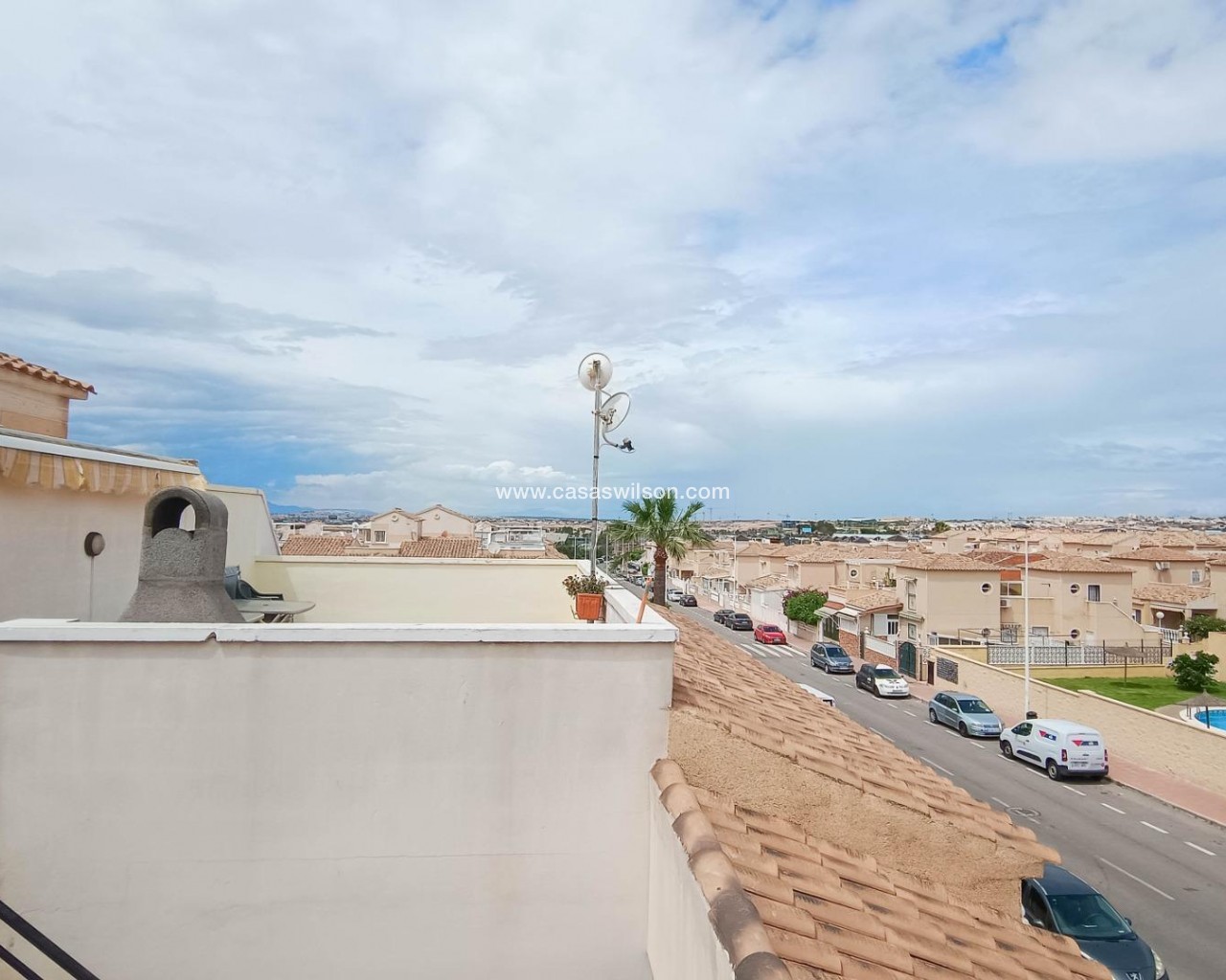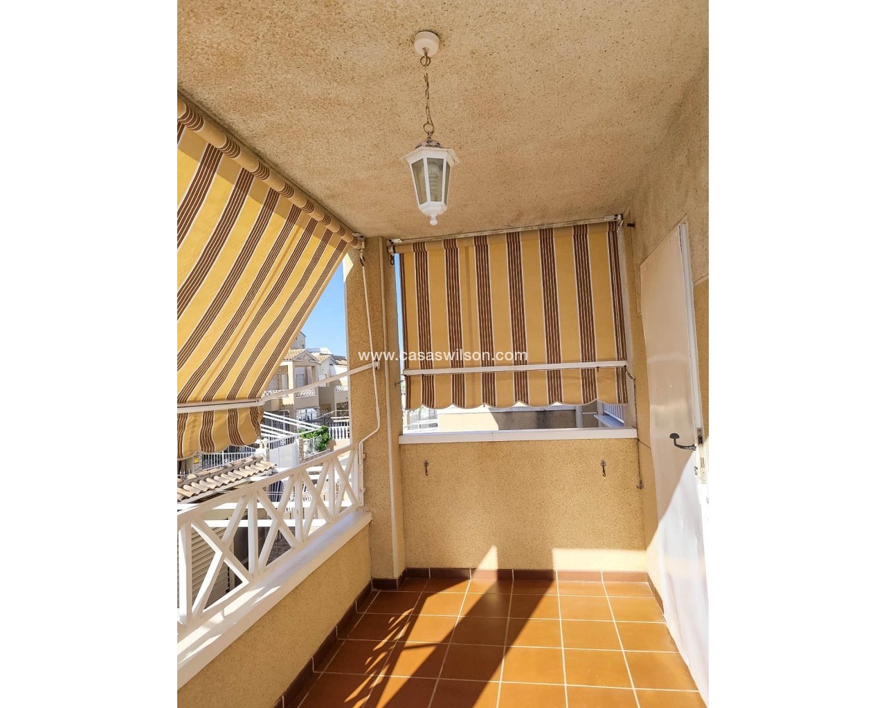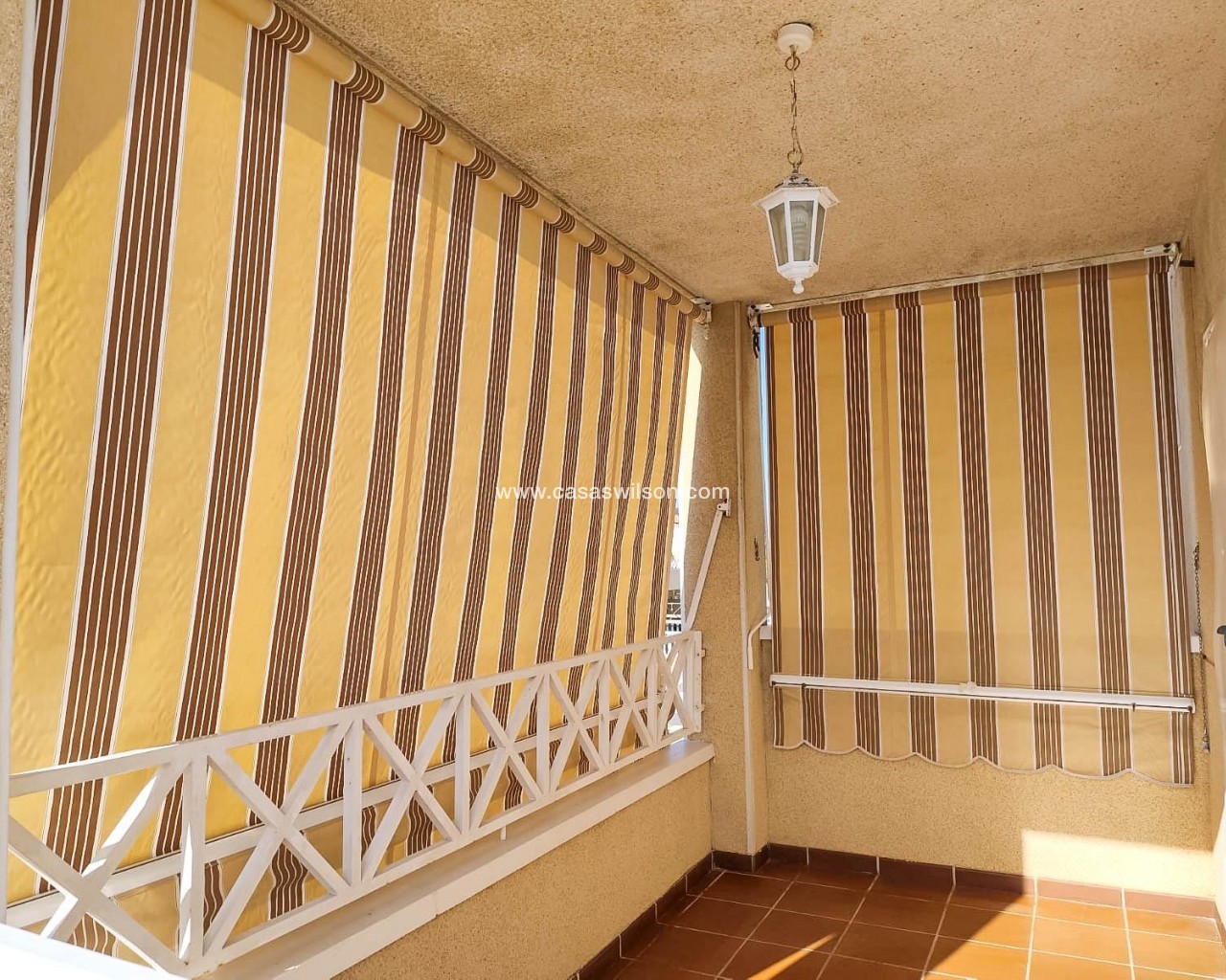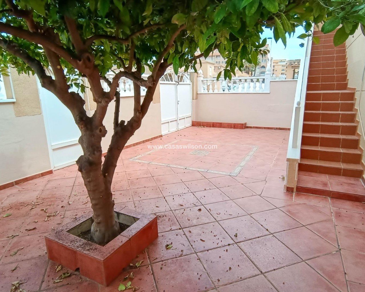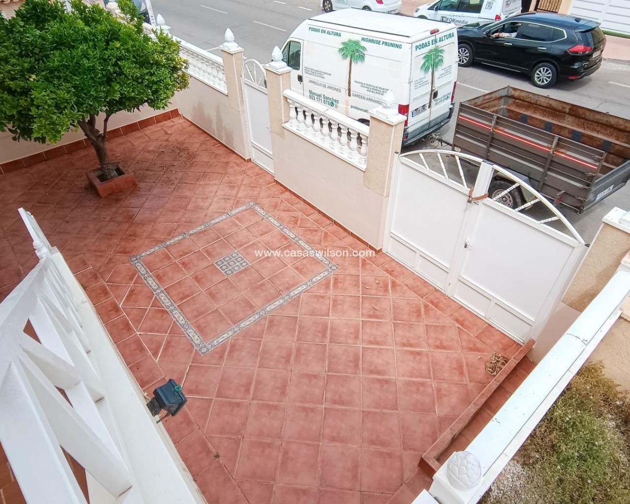 Bungalow penthouse lumineux et entièrement meublé de 2 chambres avec un spacieux solarium sur le toit de 26 m² et un terrain privé de 53 m², situé dans la communauté fermée "Europa" avec piscine et parc verdoyant Adresse : Calle Ramón Imbernón Verdú, Torrevieja — emplacement central idéal : en face du supermarché Consum, près de Carrefour, centre commercial Habaneras, magasins, cafés et toutes les infrastructures urbaines à distance de marche Caractéristiques de la propriété : - Surface habitable : 61 m² - Terrasse d'entrée : 10 m² avec auvents installés - Terrain privé à l'avant : 53 m² avec portail et parking - Solarium sur le toit : 26 m² - Garage indépendant avec portail électrique (en option) - 2 chambres lumineuses et confortables - Cuisine séparée entièrement équipée - Buanderie vitrée à côté de la cuisine - Fenêtres orientées au sud — ensoleillement maximal toute l'année - Entièrement meublé avec électroménagers - Climatisation pour le chauffage et la climatisation - Peinture fraîche, rideaux de qualité, lustres et barreaux de sécurité aux fenêtres La propriété est située dans un complexe résidentiel bien entretenu avec piscine, espaces verts et une atmosphère chaleureuse et sécurisée. Idéal pour une résidence à l'année, une maison de vacances ou un investissement locatif. Ne manquez pas l'opportunité d'acquérir une maison prête à emménager au centre de Torrevieja avec une excellente infrastructure et un confort ensoleillé !