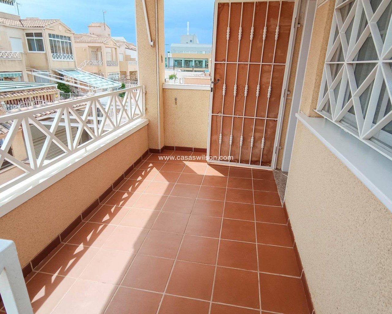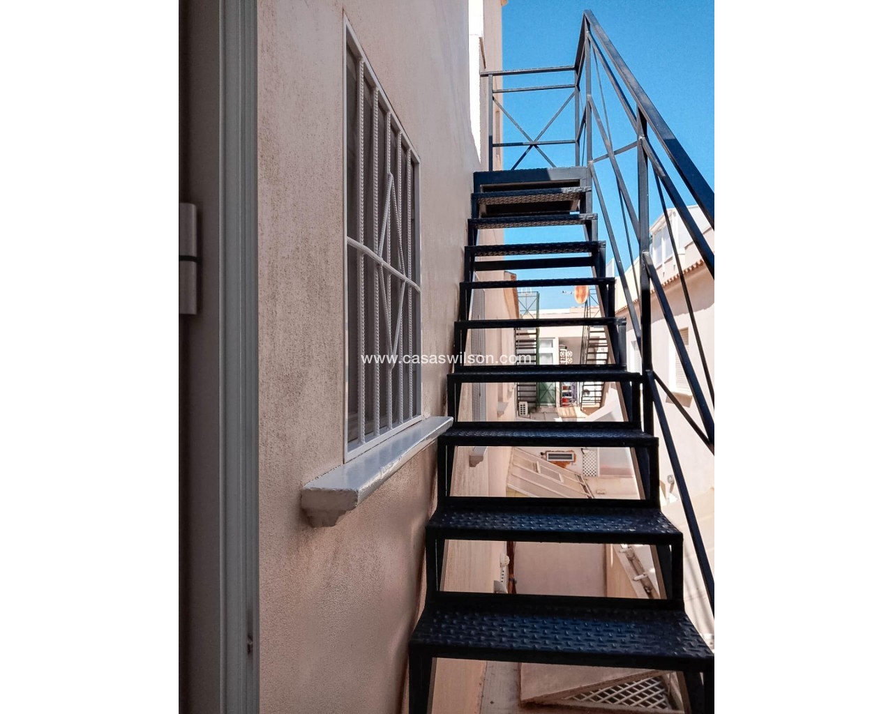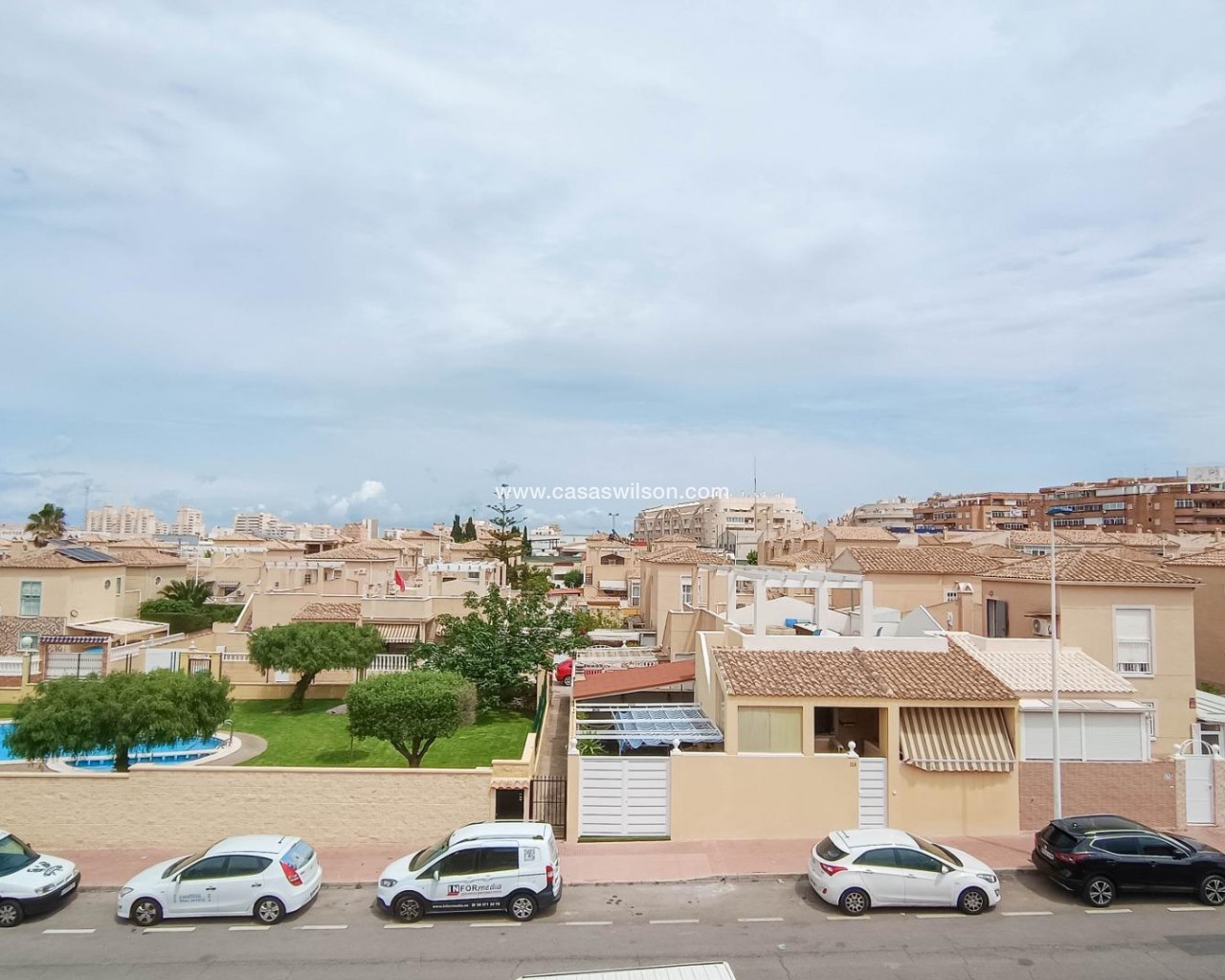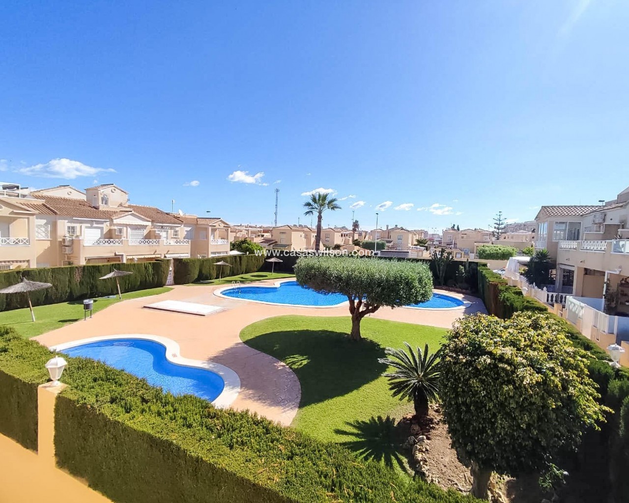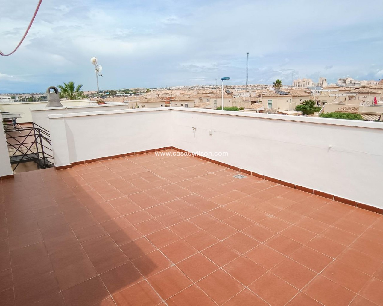 Bungalow penthouse lumineux et entièrement meublé de 2 chambres avec un spacieux solarium sur le toit de 26 m² et un terrain privé de 53 m², situé dans la communauté fermée "Europa" avec piscine et parc verdoyant Adresse : Calle Ramón Imbernón Verdú, Torrevieja — emplacement central idéal : en face du supermarché Consum, près de Carrefour, centre commercial Habaneras, magasins, cafés et toutes les infrastructures urbaines à distance de marche Caractéristiques de la propriété : - Surface habitable : 61 m² - Terrasse d'entrée : 10 m² avec auvents installés - Terrain privé à l'avant : 53 m² avec portail et parking - Solarium sur le toit : 26 m² - Garage indépendant avec portail électrique (en option) - 2 chambres lumineuses et confortables - Cuisine séparée entièrement équipée - Buanderie vitrée à côté de la cuisine - Fenêtres orientées au sud — ensoleillement maximal toute l'année - Entièrement meublé avec électroménagers - Climatisation pour le chauffage et la climatisation - Peinture fraîche, rideaux de qualité, lustres et barreaux de sécurité aux fenêtres La propriété est située dans un complexe résidentiel bien entretenu avec piscine, espaces verts et une atmosphère chaleureuse et sécurisée. Idéal pour une résidence à l'année, une maison de vacances ou un investissement locatif. Ne manquez pas l'opportunité d'acquérir une maison prête à emménager au centre de Torrevieja avec une excellente infrastructure et un confort ensoleillé !