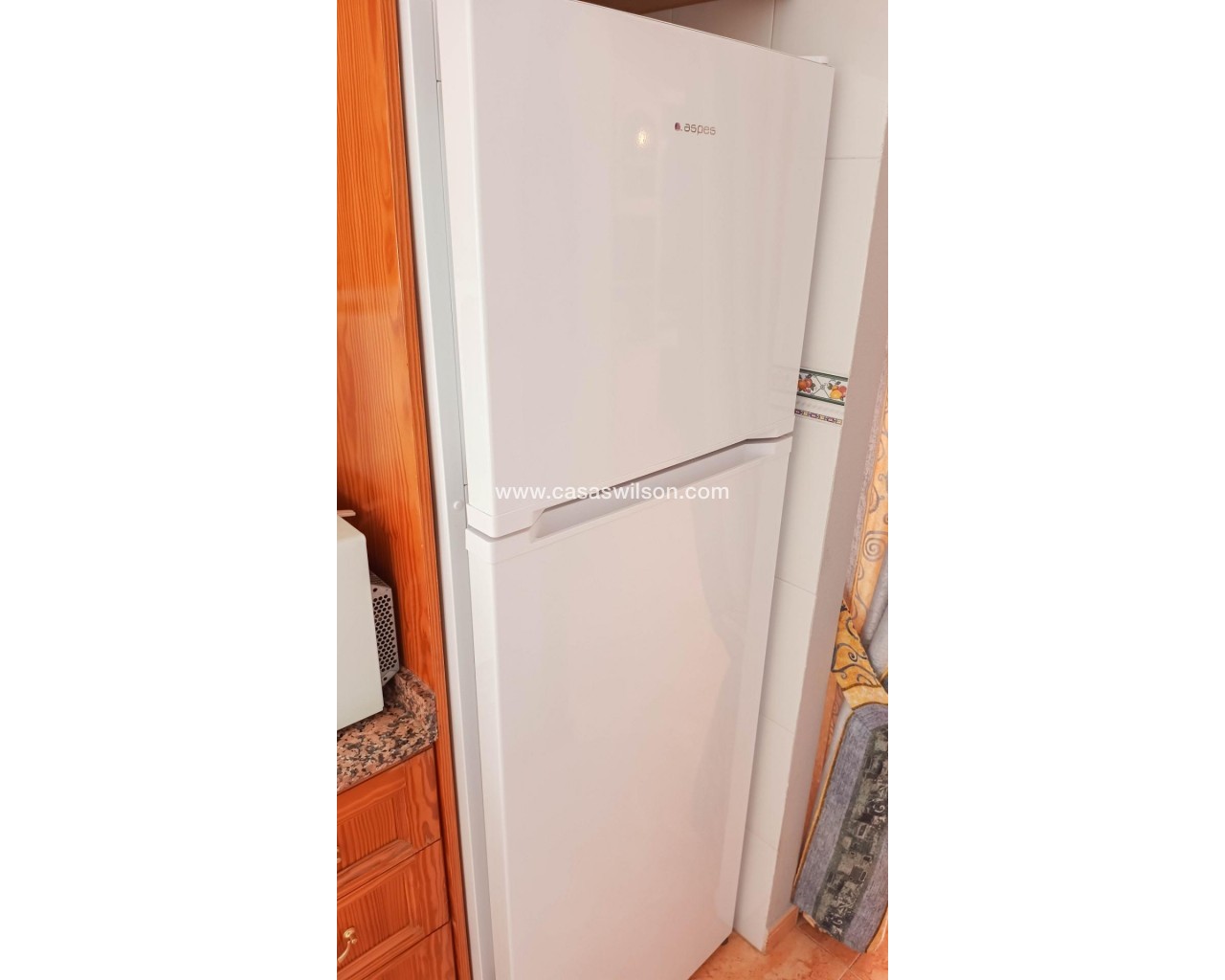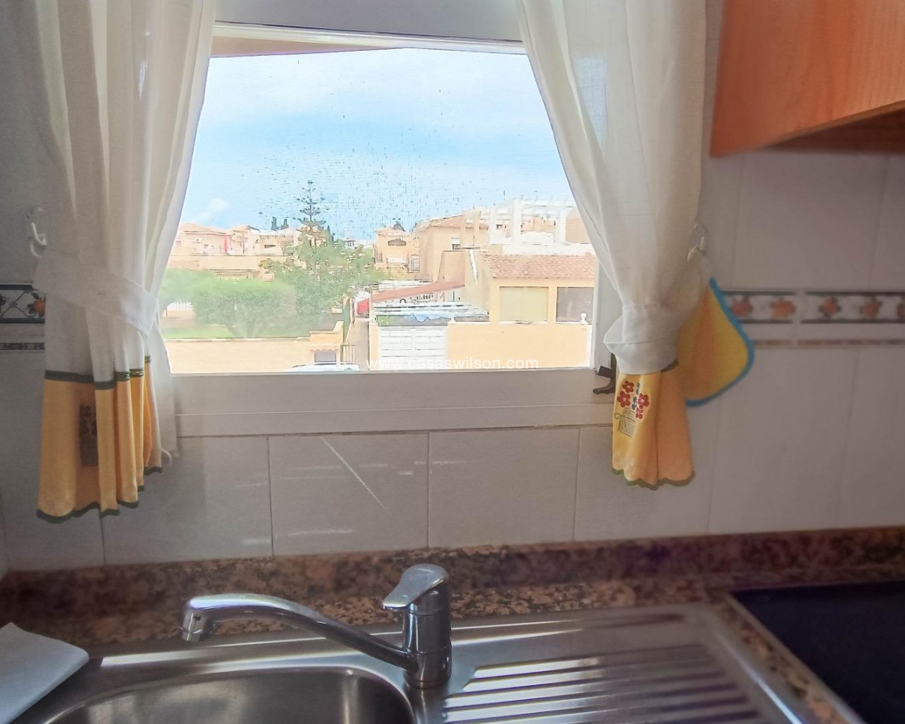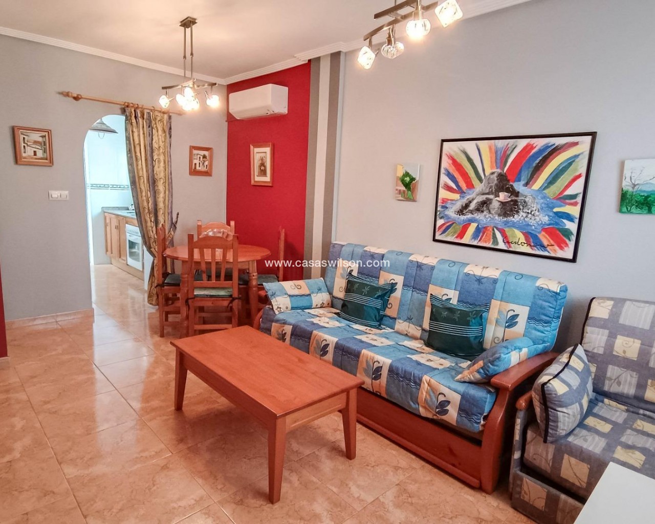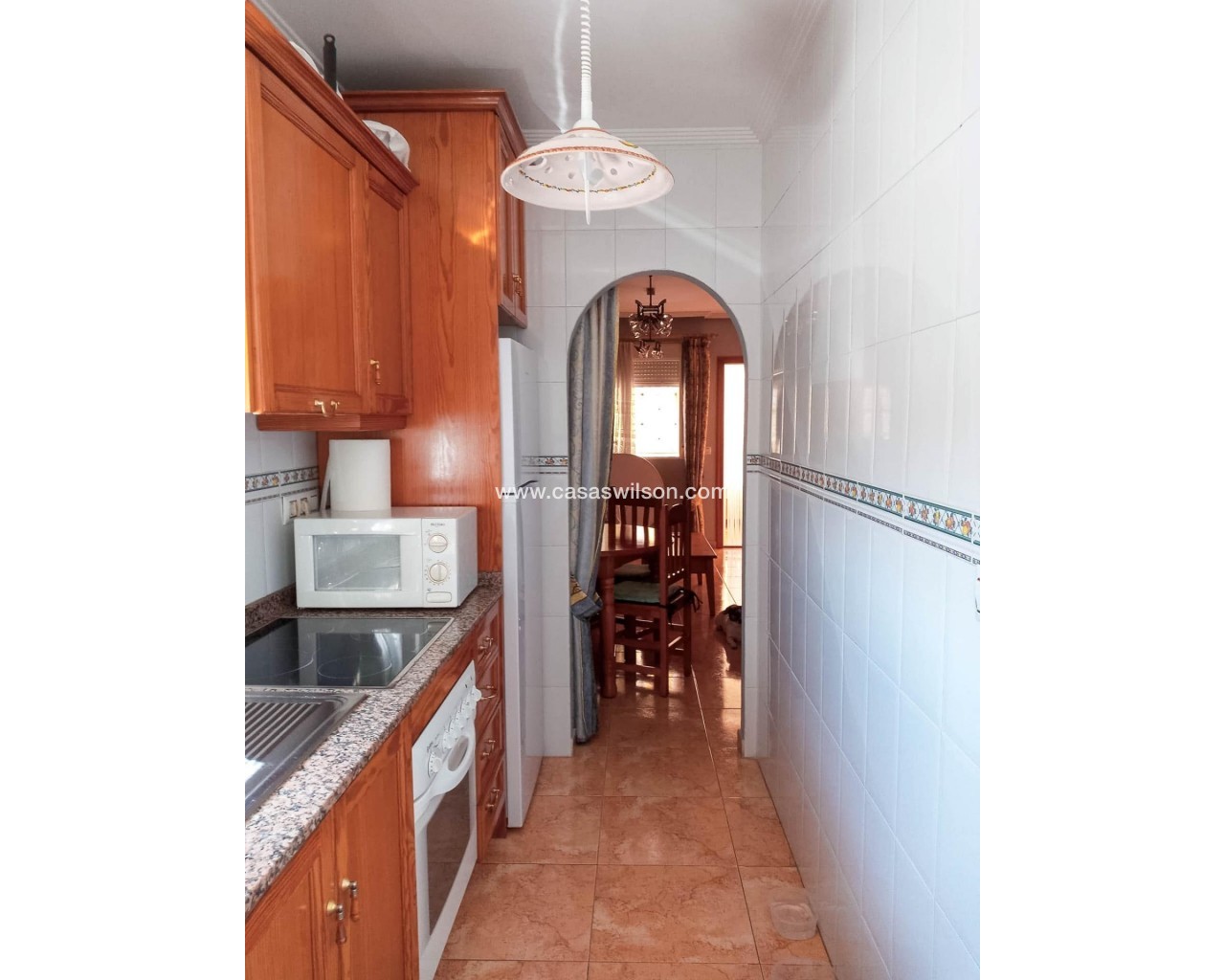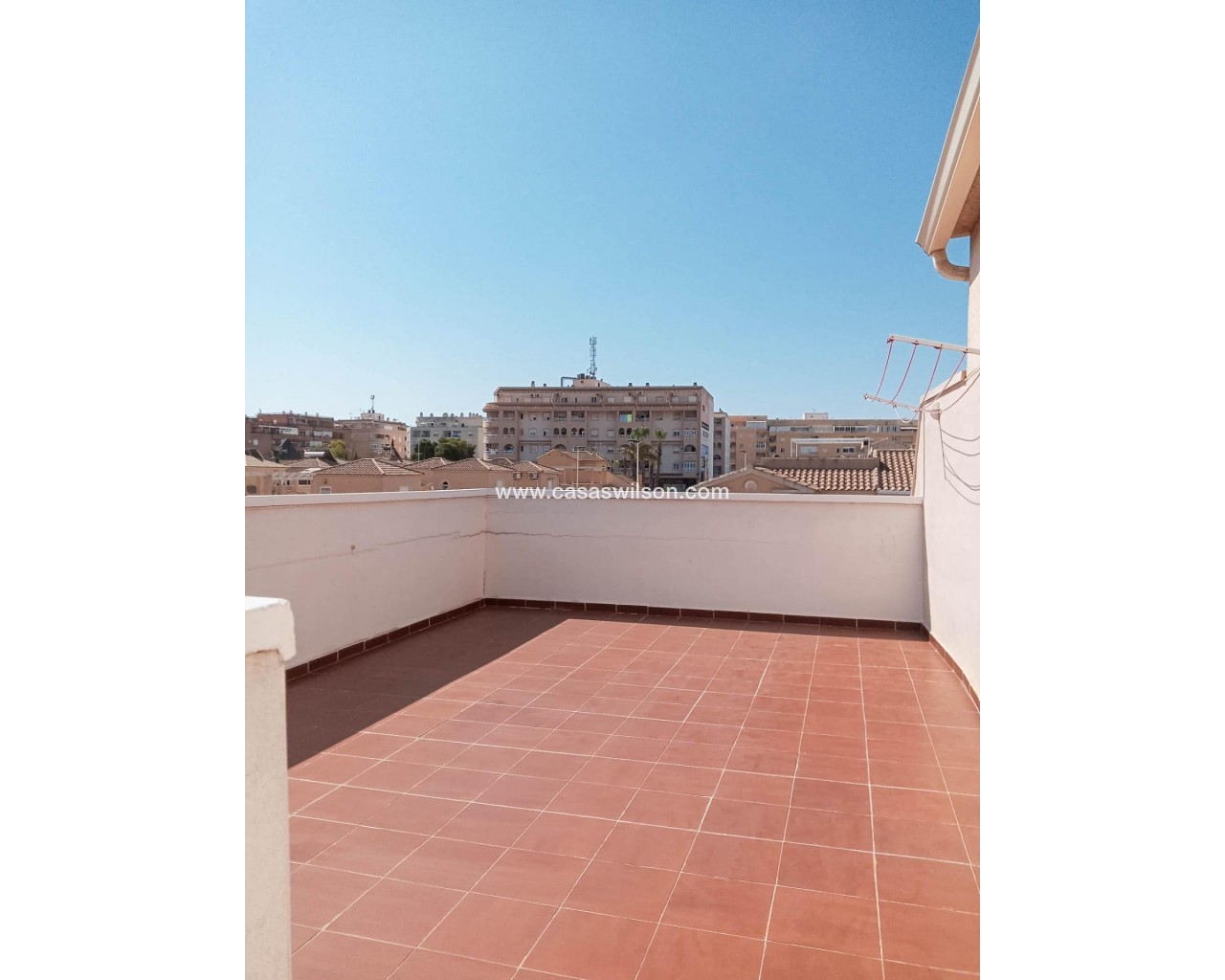 Bungalow penthouse lumineux et entièrement meublé de 2 chambres avec un spacieux solarium sur le toit de 26 m² et un terrain privé de 53 m², situé dans la communauté fermée "Europa" avec piscine et parc verdoyant Adresse : Calle Ramón Imbernón Verdú, Torrevieja — emplacement central idéal : en face du supermarché Consum, près de Carrefour, centre commercial Habaneras, magasins, cafés et toutes les infrastructures urbaines à distance de marche Caractéristiques de la propriété : - Surface habitable : 61 m² - Terrasse d'entrée : 10 m² avec auvents installés - Terrain privé à l'avant : 53 m² avec portail et parking - Solarium sur le toit : 26 m² - Garage indépendant avec portail électrique (en option) - 2 chambres lumineuses et confortables - Cuisine séparée entièrement équipée - Buanderie vitrée à côté de la cuisine - Fenêtres orientées au sud — ensoleillement maximal toute l'année - Entièrement meublé avec électroménagers - Climatisation pour le chauffage et la climatisation - Peinture fraîche, rideaux de qualité, lustres et barreaux de sécurité aux fenêtres La propriété est située dans un complexe résidentiel bien entretenu avec piscine, espaces verts et une atmosphère chaleureuse et sécurisée. Idéal pour une résidence à l'année, une maison de vacances ou un investissement locatif. Ne manquez pas l'opportunité d'acquérir une maison prête à emménager au centre de Torrevieja avec une excellente infrastructure et un confort ensoleillé !