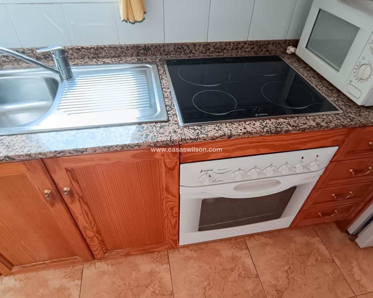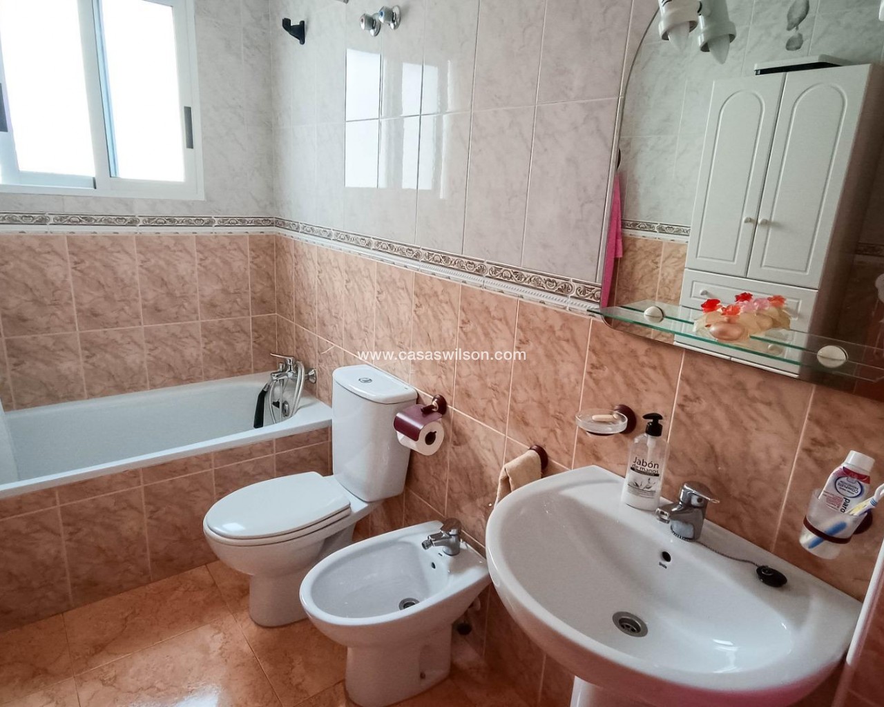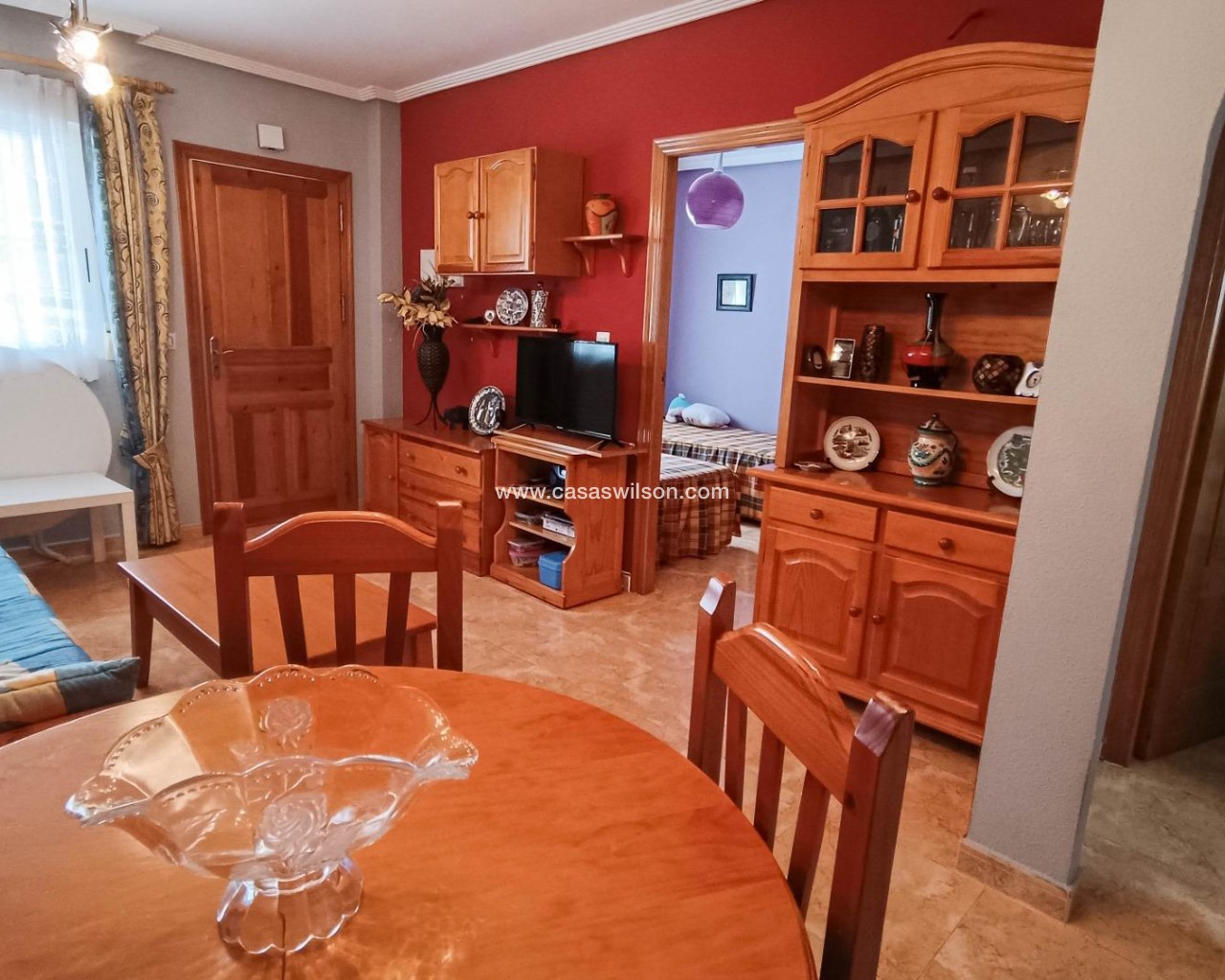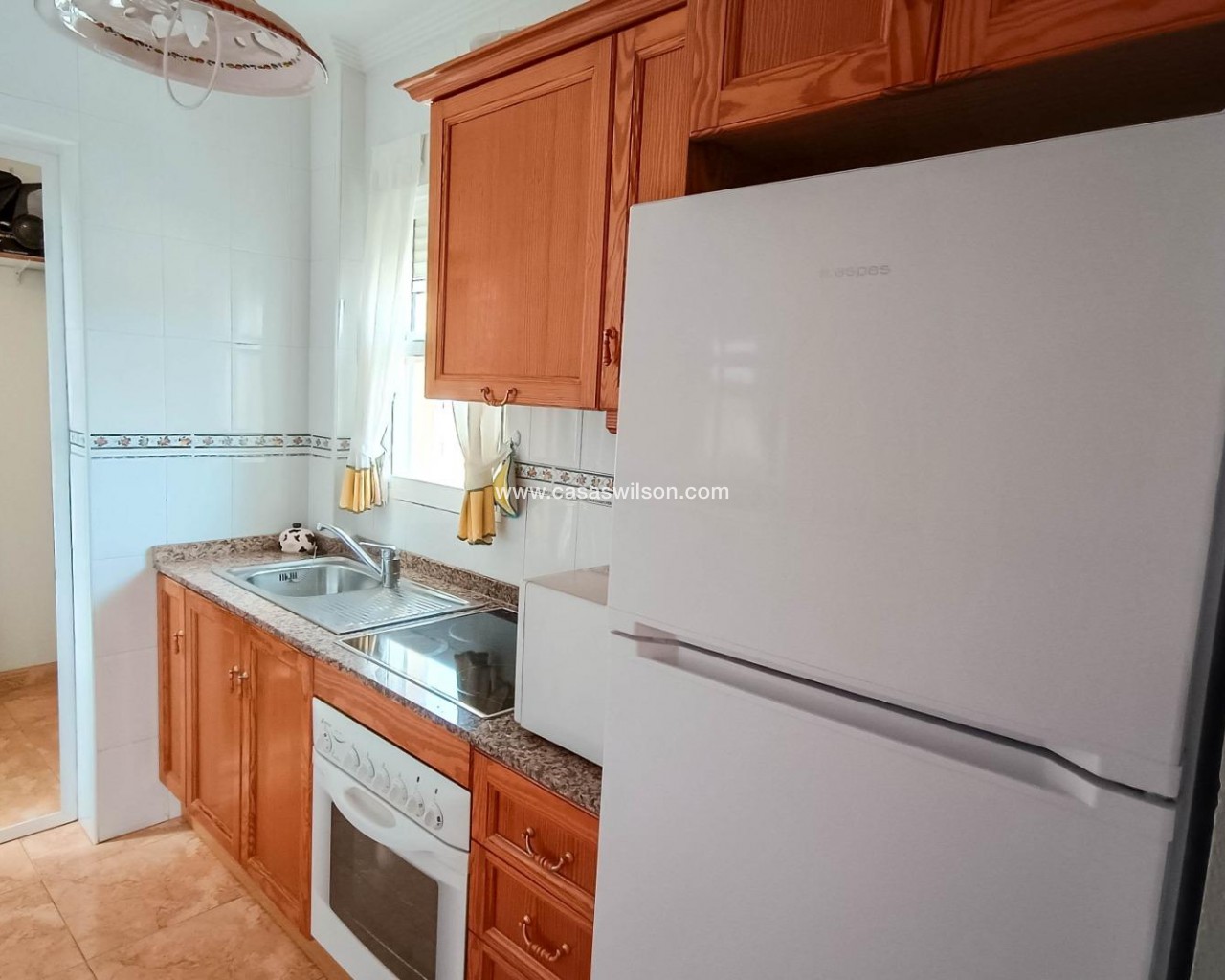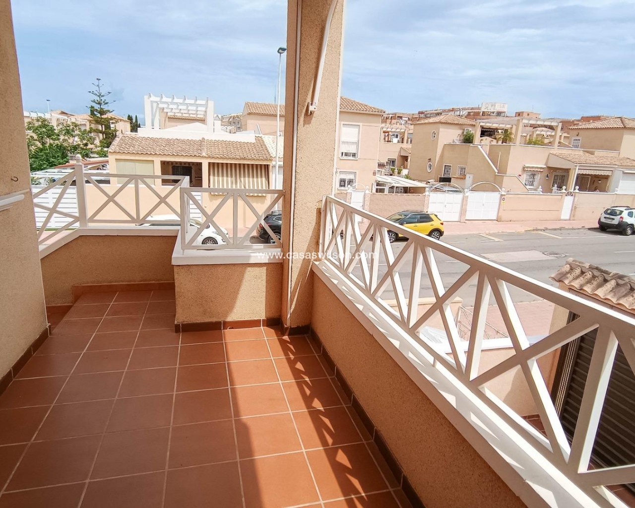 Bungalow penthouse lumineux et entièrement meublé de 2 chambres avec un spacieux solarium sur le toit de 26 m² et un terrain privé de 53 m², situé dans la communauté fermée "Europa" avec piscine et parc verdoyant Adresse : Calle Ramón Imbernón Verdú, Torrevieja — emplacement central idéal : en face du supermarché Consum, près de Carrefour, centre commercial Habaneras, magasins, cafés et toutes les infrastructures urbaines à distance de marche Caractéristiques de la propriété : - Surface habitable : 61 m² - Terrasse d'entrée : 10 m² avec auvents installés - Terrain privé à l'avant : 53 m² avec portail et parking - Solarium sur le toit : 26 m² - Garage indépendant avec portail électrique (en option) - 2 chambres lumineuses et confortables - Cuisine séparée entièrement équipée - Buanderie vitrée à côté de la cuisine - Fenêtres orientées au sud — ensoleillement maximal toute l'année - Entièrement meublé avec électroménagers - Climatisation pour le chauffage et la climatisation - Peinture fraîche, rideaux de qualité, lustres et barreaux de sécurité aux fenêtres La propriété est située dans un complexe résidentiel bien entretenu avec piscine, espaces verts et une atmosphère chaleureuse et sécurisée. Idéal pour une résidence à l'année, une maison de vacances ou un investissement locatif. Ne manquez pas l'opportunité d'acquérir une maison prête à emménager au centre de Torrevieja avec une excellente infrastructure et un confort ensoleillé !