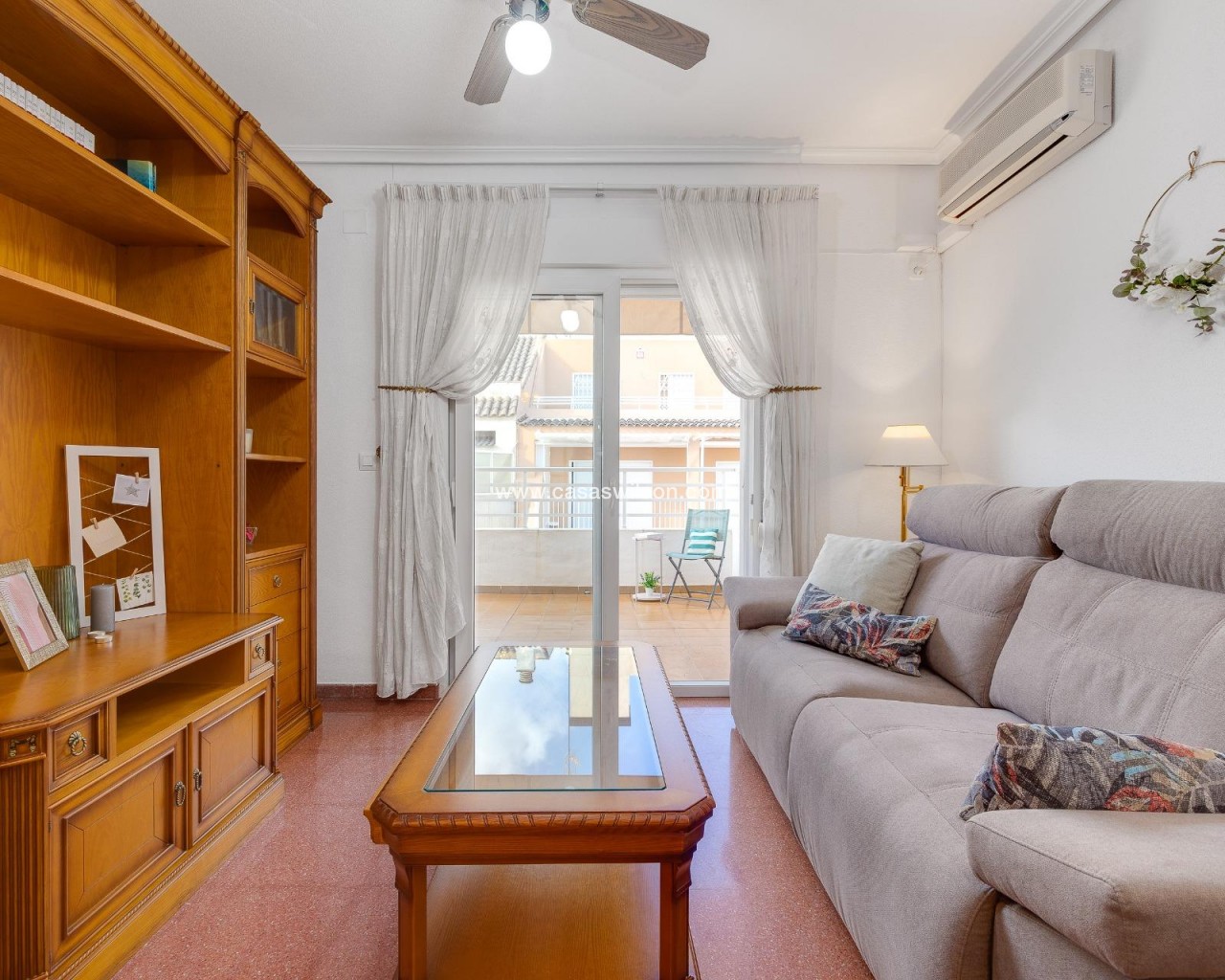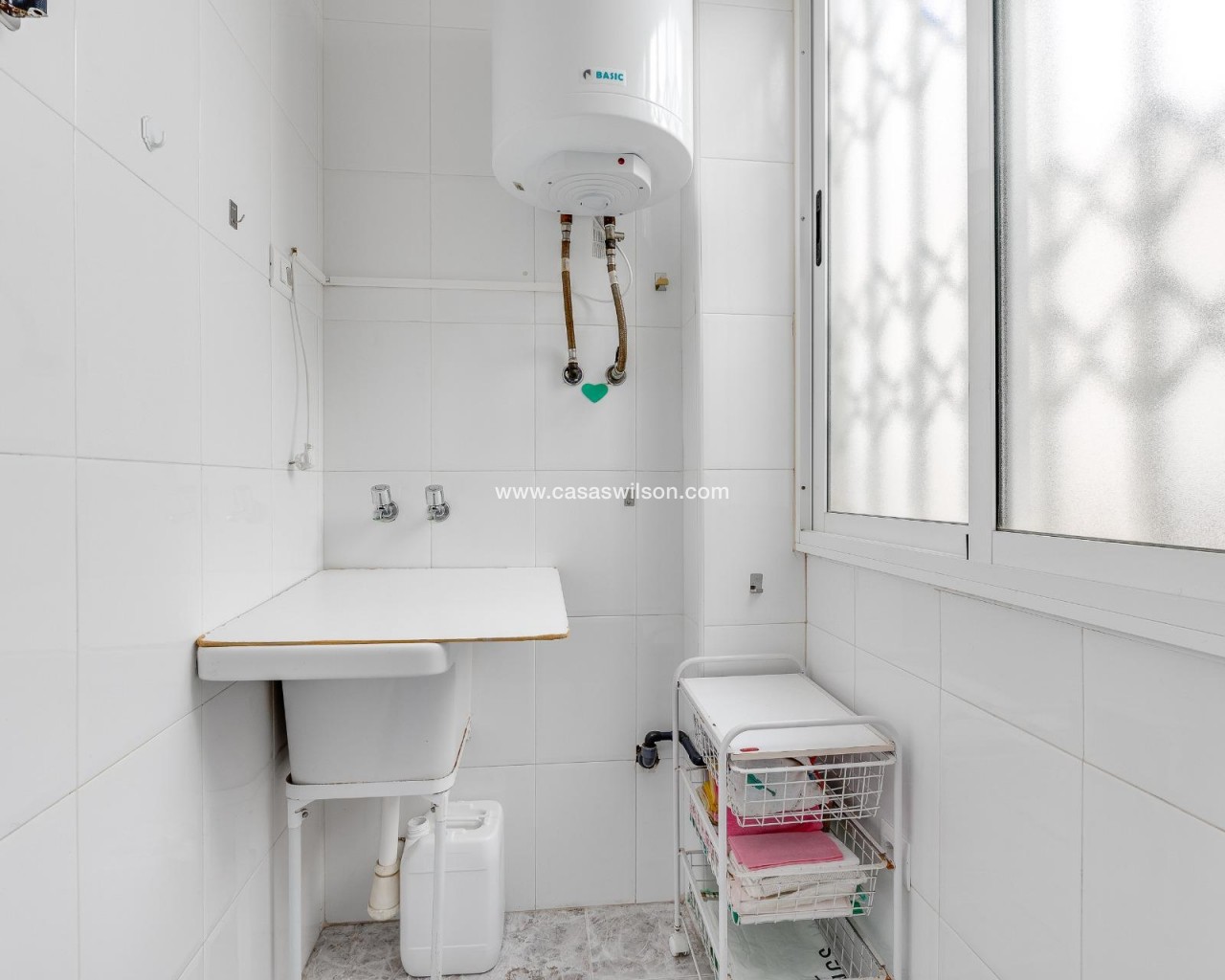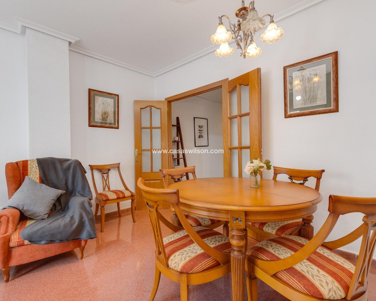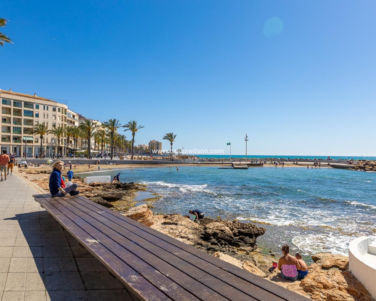 Nous vous présentons ce charmant appartement en attique situé en plein cœur de Torrevieja, à seulement 200 mètres de la plage et à 30 mètres de l'Ermita de Torrevieja, entouré de toutes les commodités nécessaires telles que supermarchés, arrêts de bus, promenades maritimes, restaurants, bars, plages, etc. Le logement, situé au quatrième étage avec ascenseur, offre une belle vue panoramique grâce à sa hauteur. Le bâtiment dispose également d'un accès pour les personnes à mobilité réduite et d'un ascenseur. L'appartement se compose de deux grandes chambres doubles, deux salles de bains complètes, une cuisine indépendante entièrement équipée avec accès à une petite galerie, et un salon-salle à manger confortable avec accès direct à une terrasse impressionnante, très ensoleillée tout au long de la journée grâce à son orientation, idéale pour se détendre et profiter de la vue. En outre, l'immeuble dispose d'un solarium commun où se trouve le débarras privé de l'appartement, offrant un espace de rangement supplémentaire. Ne manquez pas cette opportunité de vivre dans un emplacement privilégié près de la mer, avec toutes les commodités à portée de main. Idéal pour profiter du meilleur style de vie à Torrevieja !