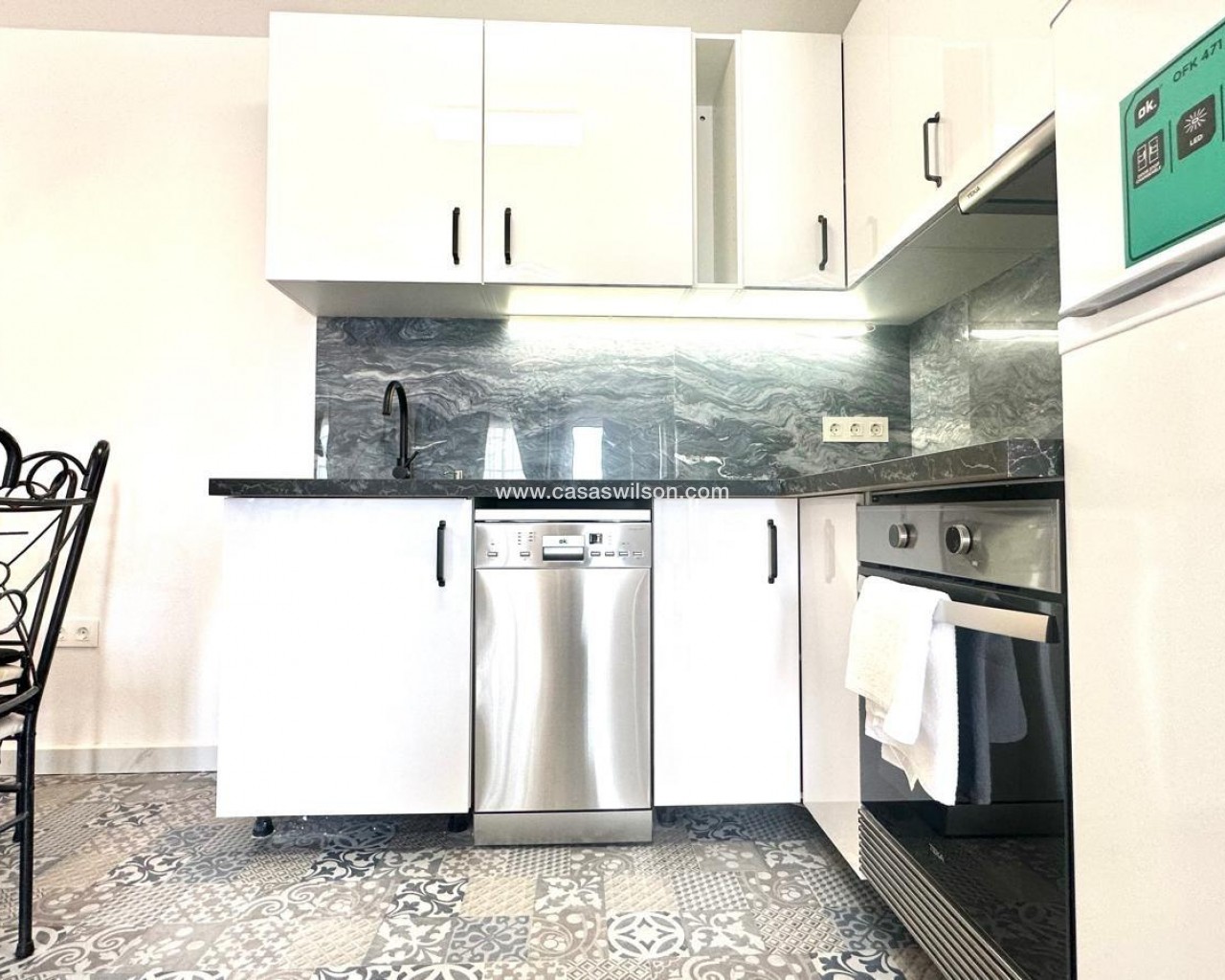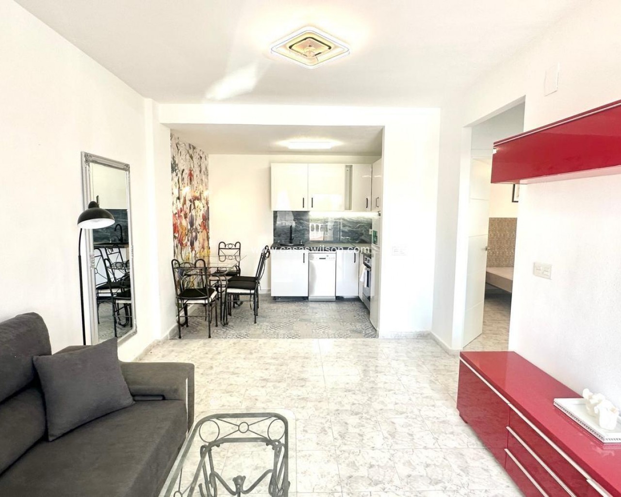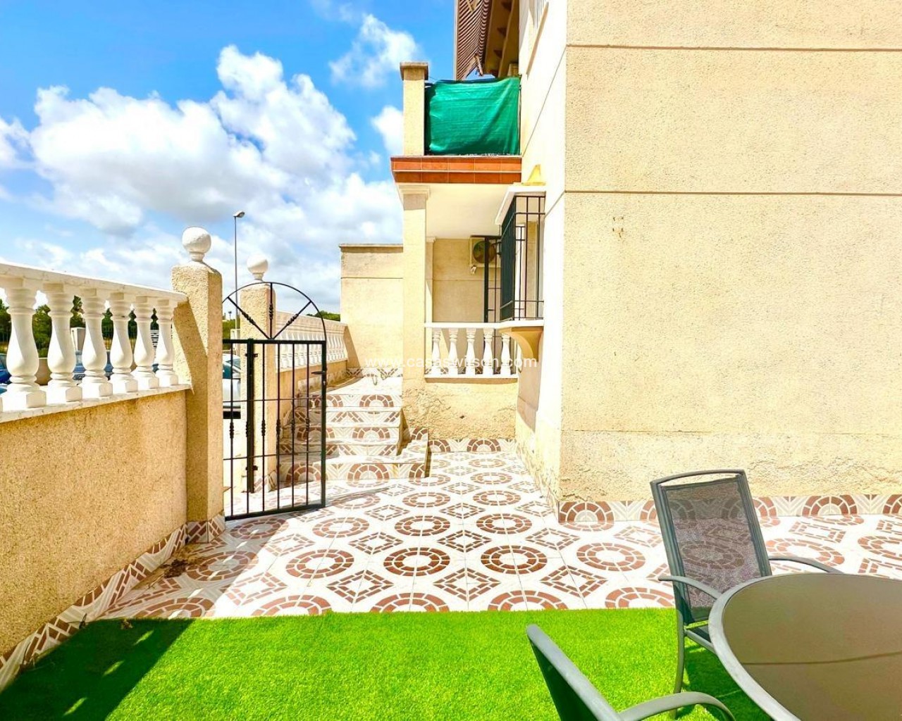 Superbe appartement rénové au rez-de-chaussée à Orihuela Costa – Jardin privé, piscine commune et emplacement idéal Situé dans l'un des quartiers résidentiels les plus prisés d'Orihuela Costa, ce superbe appartement au rez-de-chaussée se trouve dans une résidence fermée offrant sécurité, tranquillité et espaces communs spacieux. Récemment rénové, il est prêt à emménager et vous permettra de profiter d'un environnement familial avec toutes les commodités à proximité. Agencement fonctionnel et espaces extérieurs Ce bien dispose de deux chambres, toutes deux baignées de lumière naturelle, idéales pour une petite famille, un couple ou une résidence secondaire en bord de mer. La salle de bains a été entièrement rénovée avec des finitions modernes et fonctionnelles, conçues pour offrir un confort maximal. Le salon-salle à manger s'intègre parfaitement à la cuisine ouverte, formant un espace ouvert unique, spacieux et chaleureux, idéal pour la vie quotidienne ou les réceptions. Cet espace est conçu pour maximiser la lumière naturelle et la ventilation transversale. L'un des principaux atouts de cet appartement en rez-de-chaussée est son jardin privé avec véranda, idéal pour créer un espace détente, un coin repas extérieur ou une aire de jeux. La propriété dispose également d'un local de rangement très pratique pour ranger vélos, outils et autres objets d'usage occasionnel. Résidence fermée avec d'excellentes prestations Le complexe dispose d'une piscine commune entourée d'espaces verts bien entretenus, offrant un cadre idéal pour la détente et les rencontres. Une place de parking est également disponible juste devant la maison, ce qui facilite son accès quotidien. Situation et environnement Située dans un quartier bien desservi, cette maison se trouve à quelques pas des écoles, des lycées, des centres sportifs et des commerces, ce qui en fait une excellente option pour les familles et ceux qui souhaitent investir dans une propriété de vacances ou locative. Les plages et les centres de loisirs d'Orihuela Costa sont à seulement quelques minutes en voiture. Aperçu des caractéristiques : Rez-de-chaussée rénové 2 chambres 1 salle de bain complète rénovée Séjour-salle à manger avec cuisine ouverte Jardin privé et véranda Cave à vin incluse Parking devant la porte Piscine commune Résidence fermée avec de grands espaces verts À quelques pas des écoles, des universités et d'un centre sportif