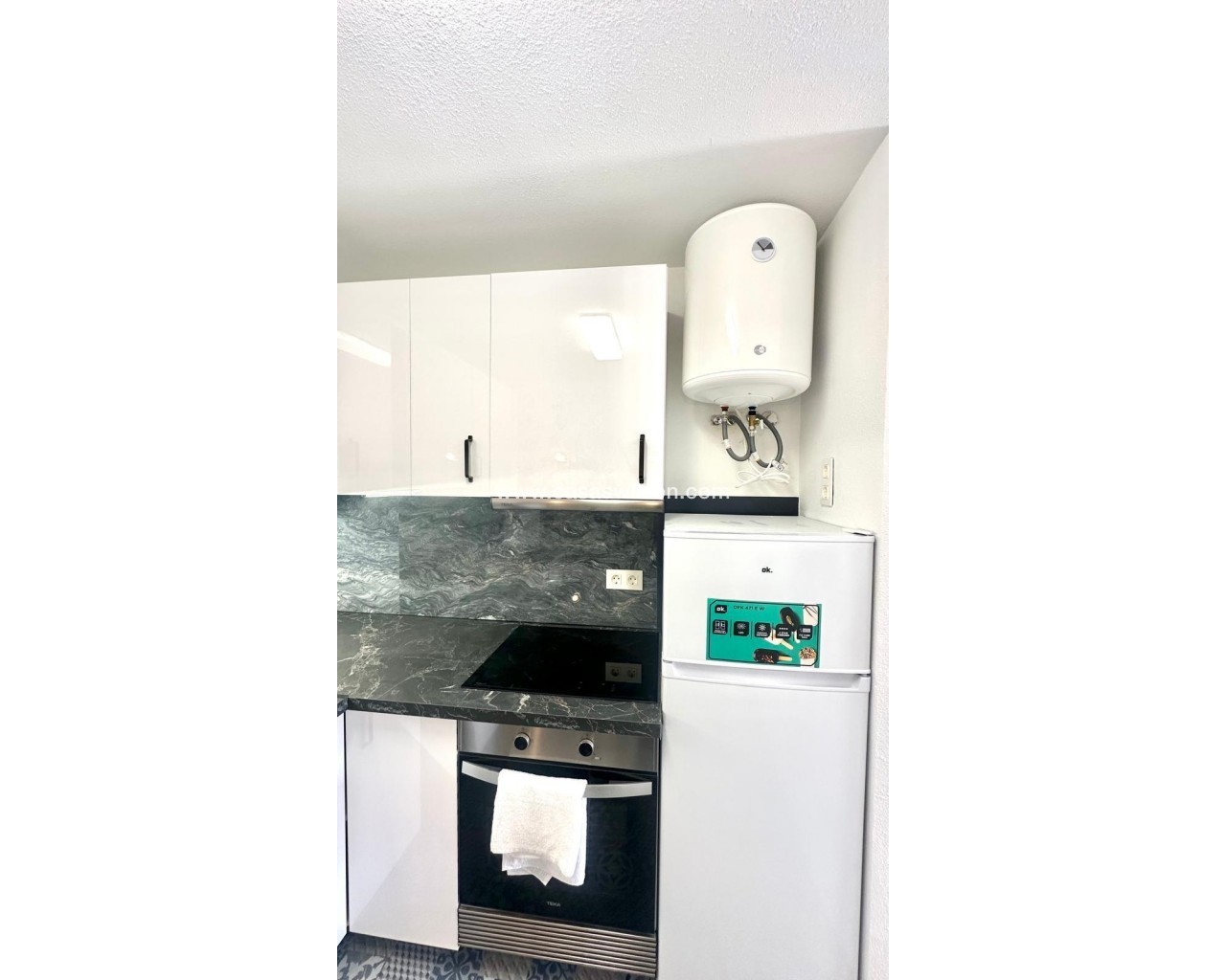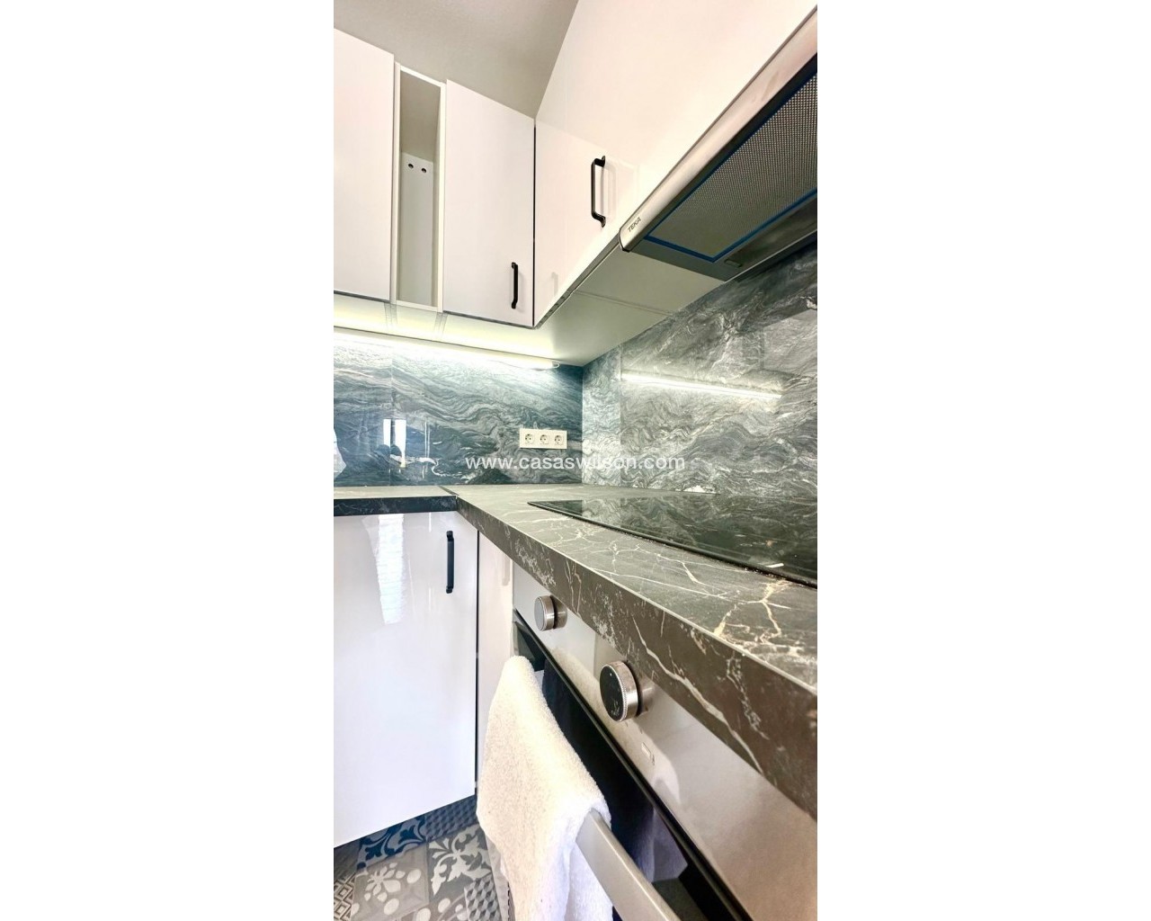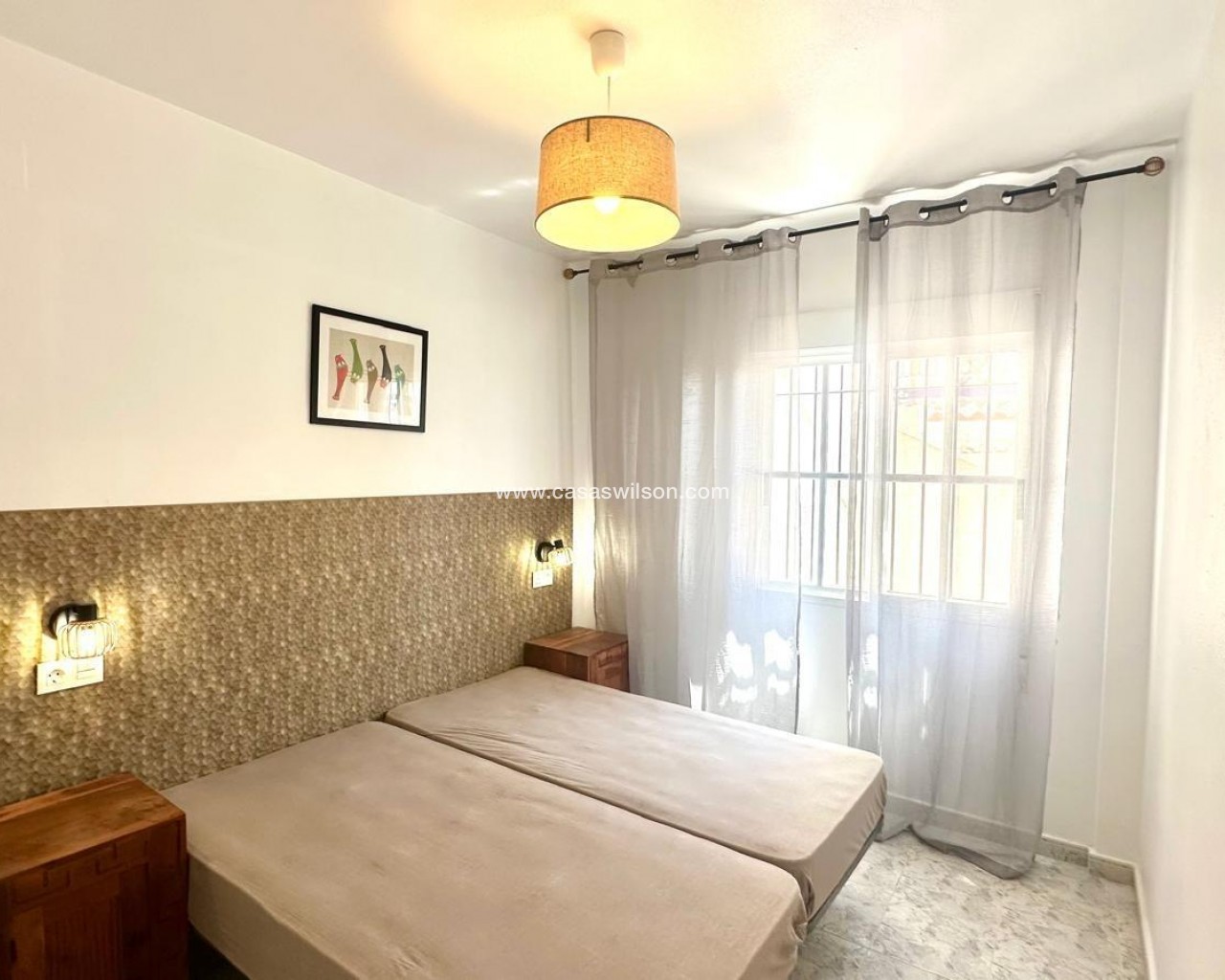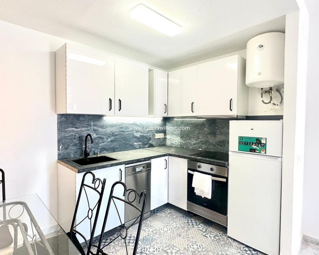 Superbe appartement rénové au rez-de-chaussée à Orihuela Costa – Jardin privé, piscine commune et emplacement idéal Situé dans l'un des quartiers résidentiels les plus prisés d'Orihuela Costa, ce superbe appartement au rez-de-chaussée se trouve dans une résidence fermée offrant sécurité, tranquillité et espaces communs spacieux. Récemment rénové, il est prêt à emménager et vous permettra de profiter d'un environnement familial avec toutes les commodités à proximité. Agencement fonctionnel et espaces extérieurs Ce bien dispose de deux chambres, toutes deux baignées de lumière naturelle, idéales pour une petite famille, un couple ou une résidence secondaire en bord de mer. La salle de bains a été entièrement rénovée avec des finitions modernes et fonctionnelles, conçues pour offrir un confort maximal. Le salon-salle à manger s'intègre parfaitement à la cuisine ouverte, formant un espace ouvert unique, spacieux et chaleureux, idéal pour la vie quotidienne ou les réceptions. Cet espace est conçu pour maximiser la lumière naturelle et la ventilation transversale. L'un des principaux atouts de cet appartement en rez-de-chaussée est son jardin privé avec véranda, idéal pour créer un espace détente, un coin repas extérieur ou une aire de jeux. La propriété dispose également d'un local de rangement très pratique pour ranger vélos, outils et autres objets d'usage occasionnel. Résidence fermée avec d'excellentes prestations Le complexe dispose d'une piscine commune entourée d'espaces verts bien entretenus, offrant un cadre idéal pour la détente et les rencontres. Une place de parking est également disponible juste devant la maison, ce qui facilite son accès quotidien. Situation et environnement Située dans un quartier bien desservi, cette maison se trouve à quelques pas des écoles, des lycées, des centres sportifs et des commerces, ce qui en fait une excellente option pour les familles et ceux qui souhaitent investir dans une propriété de vacances ou locative. Les plages et les centres de loisirs d'Orihuela Costa sont à seulement quelques minutes en voiture. Aperçu des caractéristiques : Rez-de-chaussée rénové 2 chambres 1 salle de bain complète rénovée Séjour-salle à manger avec cuisine ouverte Jardin privé et véranda Cave à vin incluse Parking devant la porte Piscine commune Résidence fermée avec de grands espaces verts À quelques pas des écoles, des universités et d'un centre sportif